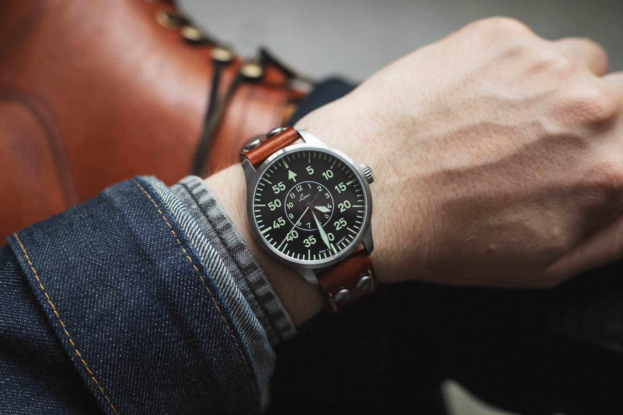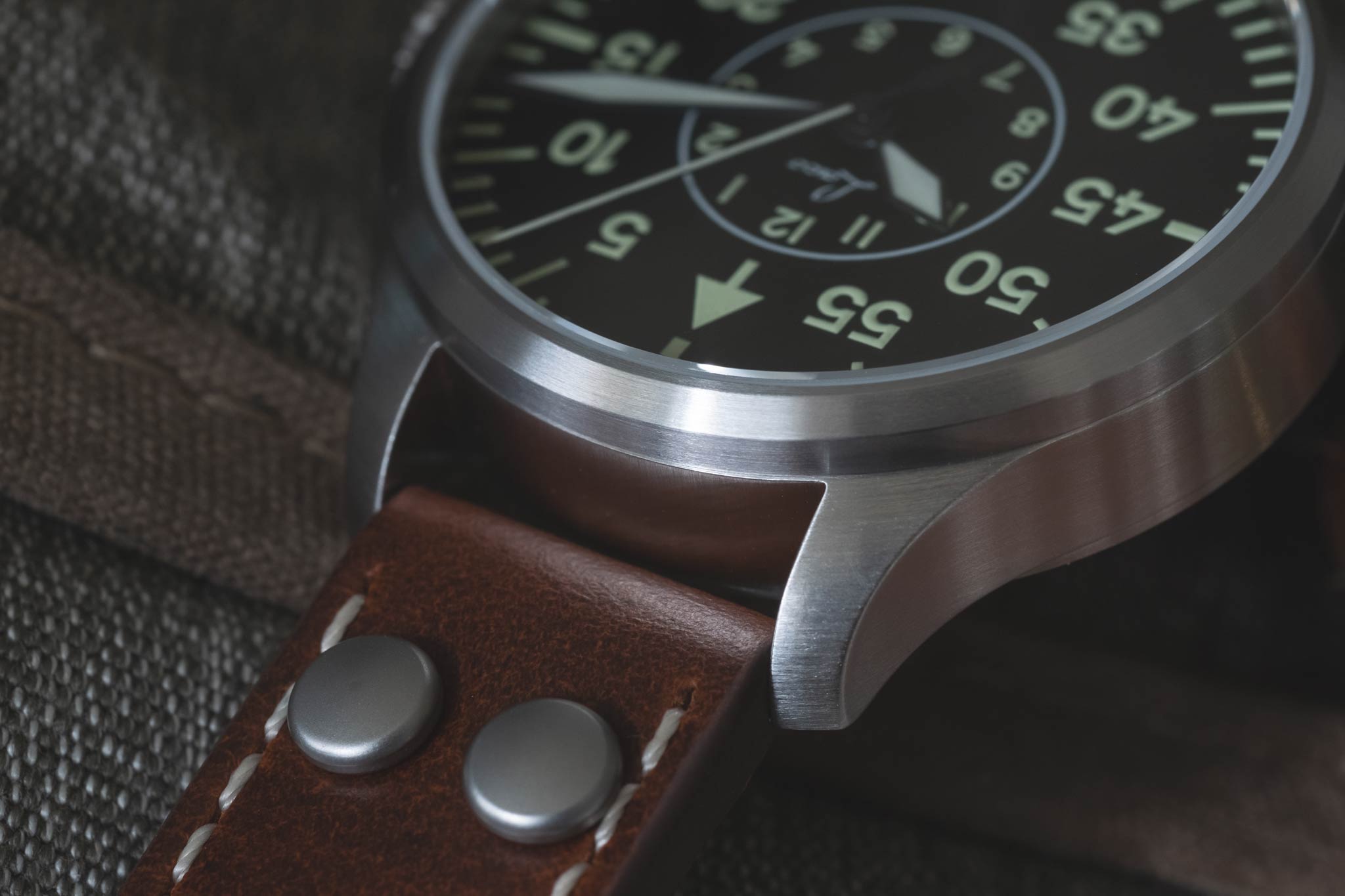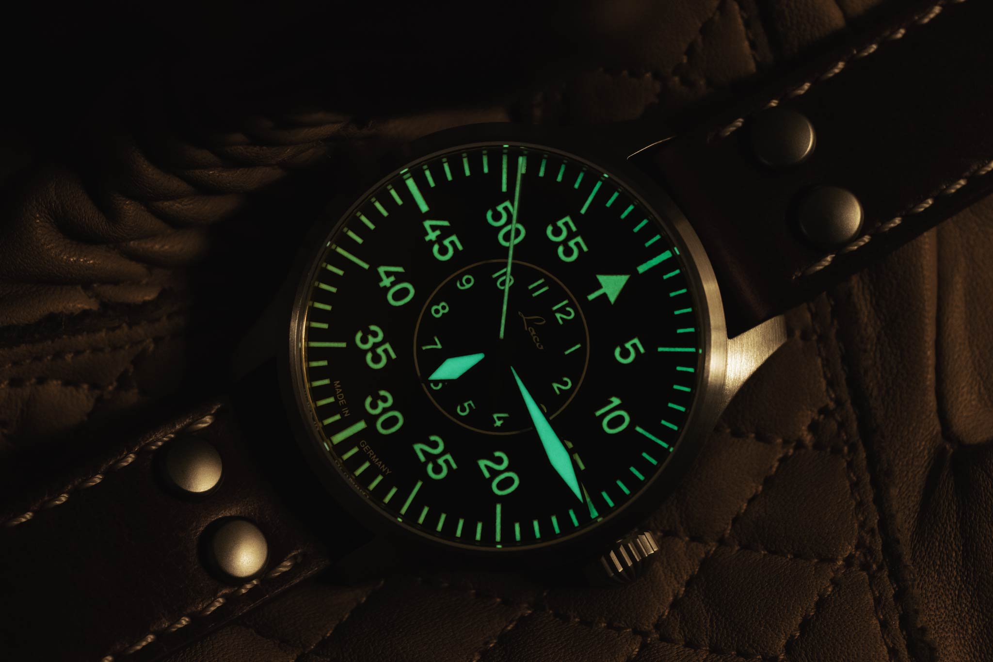 In the 1940's, only a handful of companies were selected to manufacture pilots watches for the German Airforce. Laco was one of these companies, and today they bring that heritage to their watches. You'll notice that their "original" series all feature "FL23883" engraved into the case, on the side opposite from the crown. This number indicates the watch was made to military specification for pilots.
