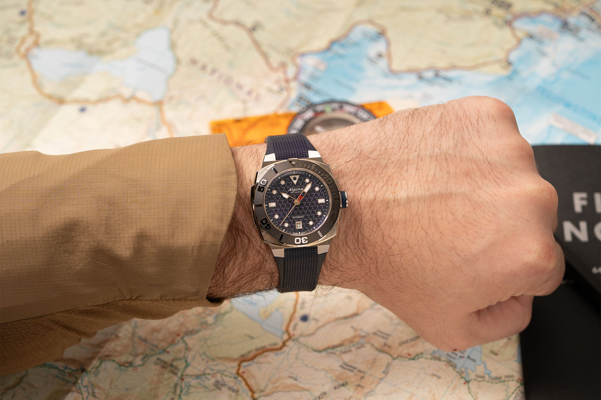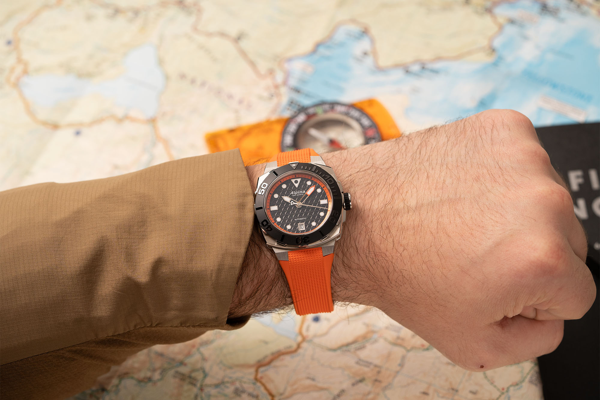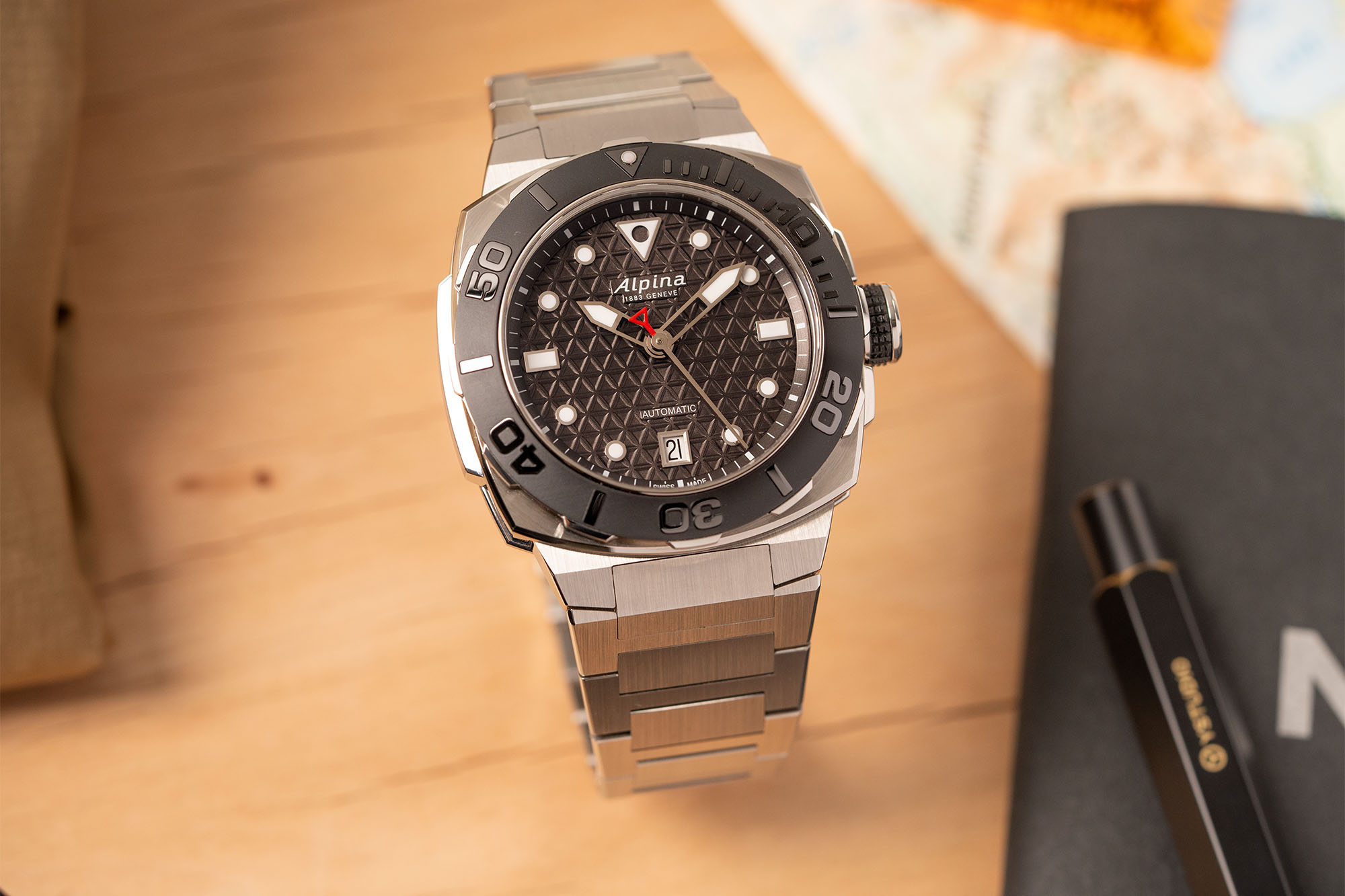 Powering the Seastrong Diver Extreme is the Swiss-made Alpina AL-525, a Sellita SW200-derived caliber. An automatic movement, it features 26 jewels, hacking, hand winding, date, a frequency of 28,800 beats per hour, and a power reserve of at least 38 hours.