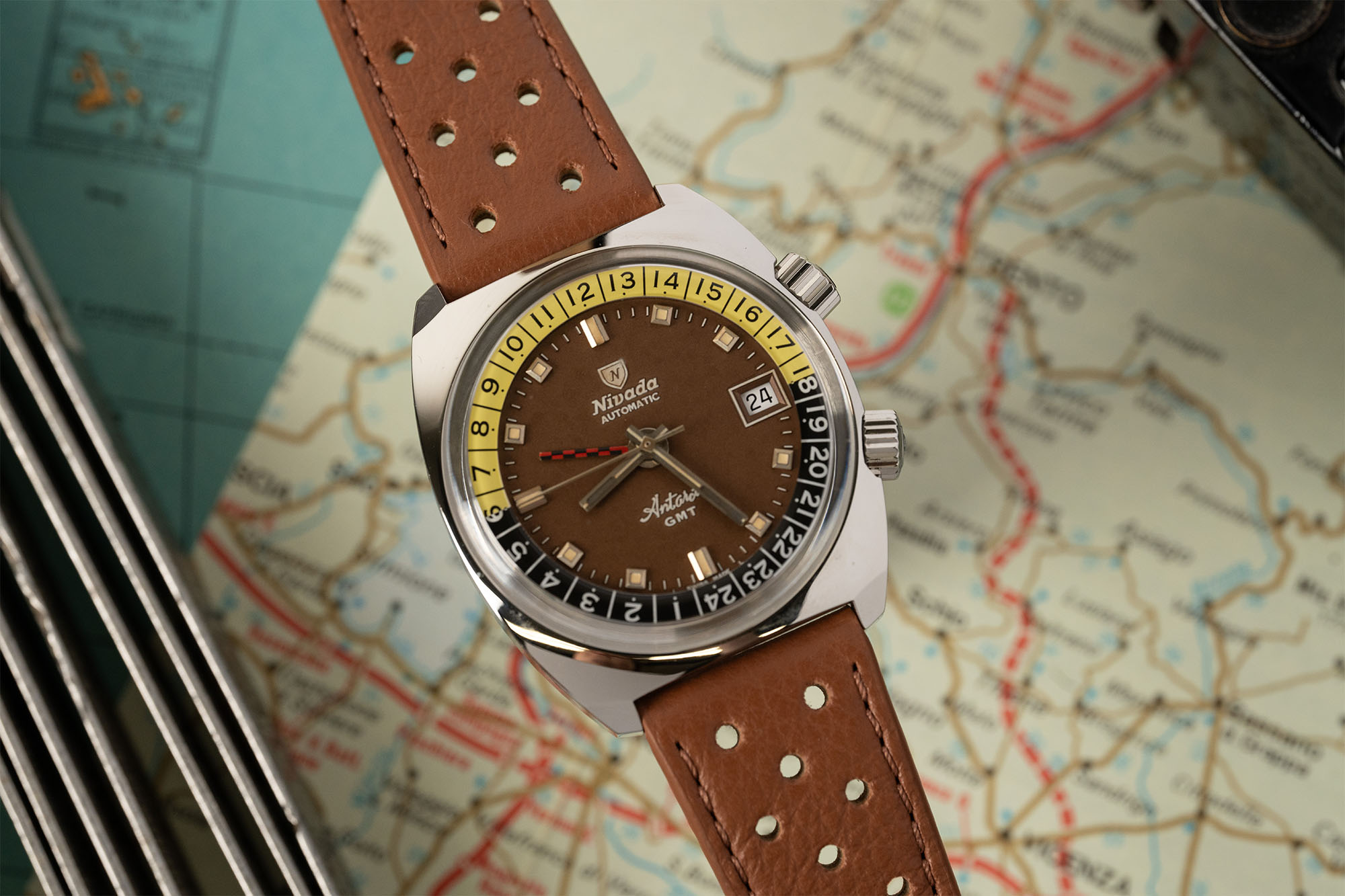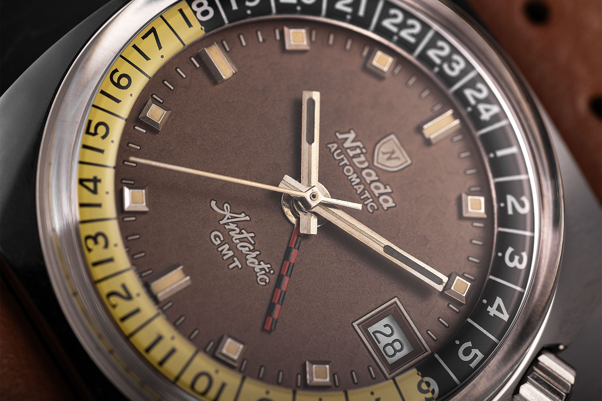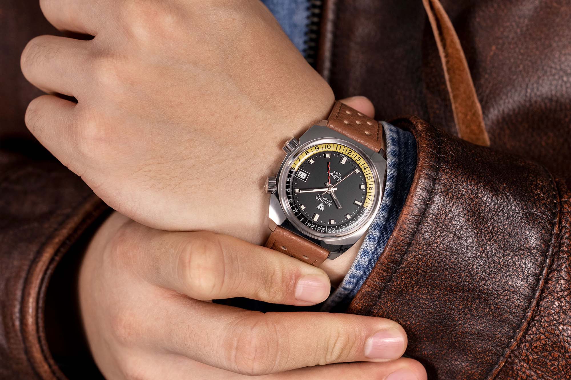 The revitalized Nivada Grenchen has made a splash through its startlingly accurate reissues of its famous Chronomaster, Chronoking, Depthmaster, and Antarctic collections. With their latest release, they’ve gone back to the Jet Age with the Antarctic GMT, a rare reference produced for just a few years in the early 1970s.