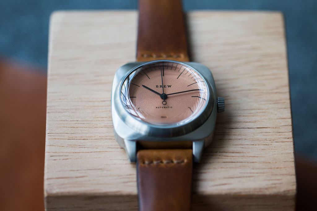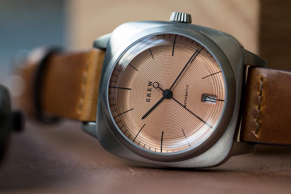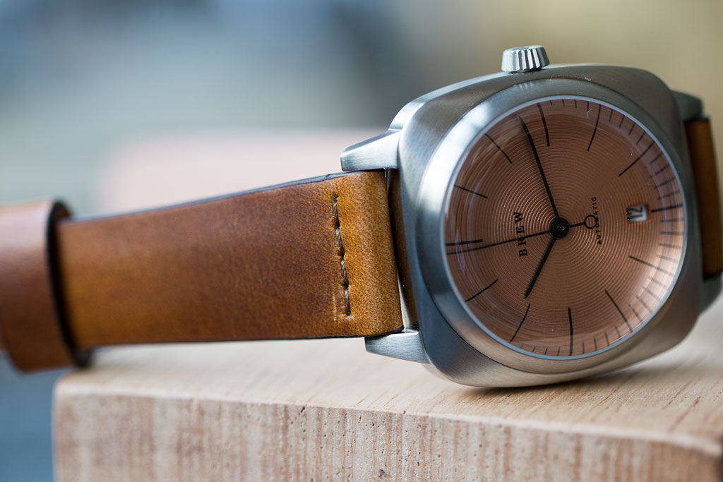 For our third watch collaboration, we've teamed up with Brew Watches to make a unique version of their HP-1 Automatic. Working with them, we came up with a unique copper dial with circular graining, giving the HP-1 a cool industrial look. We then added our American-made High Craft - Vintage strap into the mix, completing the package by adding a rugged, hand-made detail.