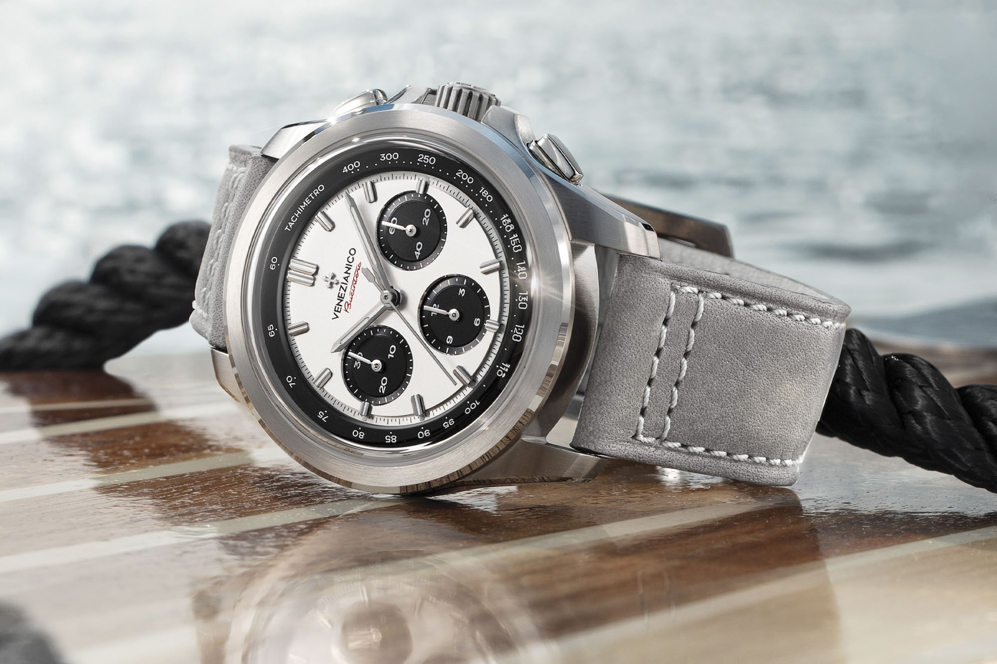 The Venezianico Bucintoro 42 is a chronograph that masterfully blends precision with elegance, drawing inspiration from the ceremonial galley of the Venetian Republic, the Bucintoro. This vessel historically led the "Regata Storica," symbolizing a fusion of speed and tradition—a spirit captured in this timepiece's design.​