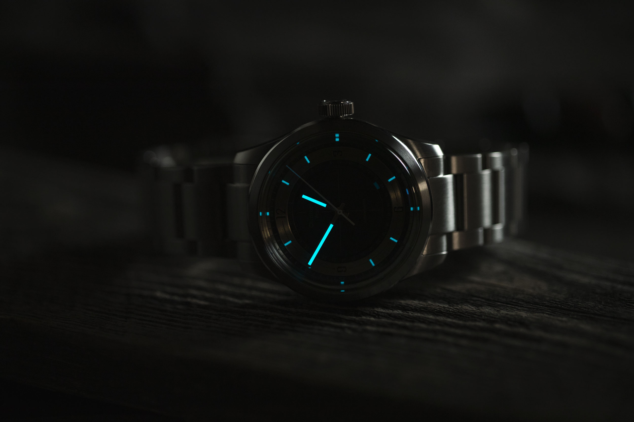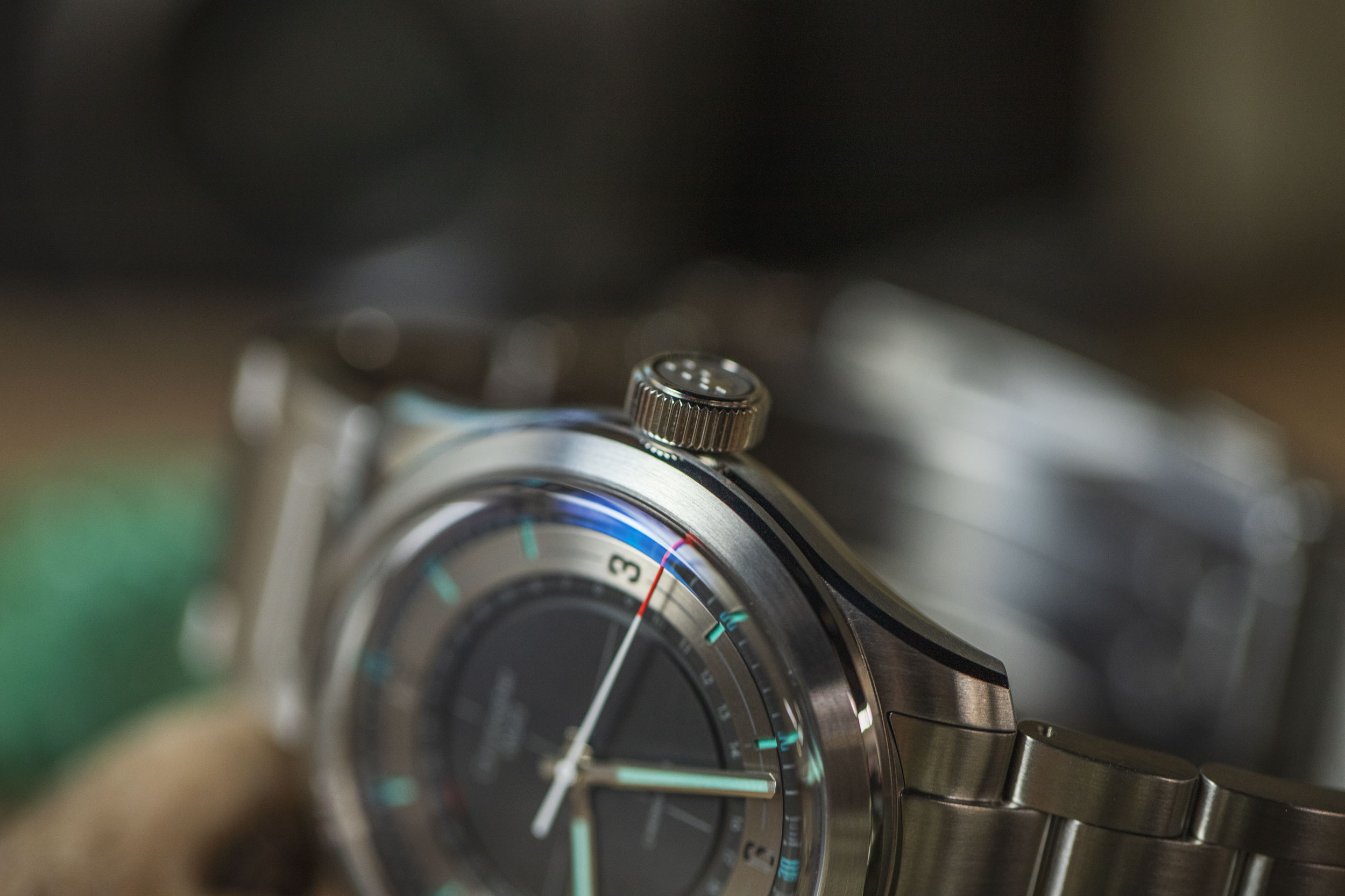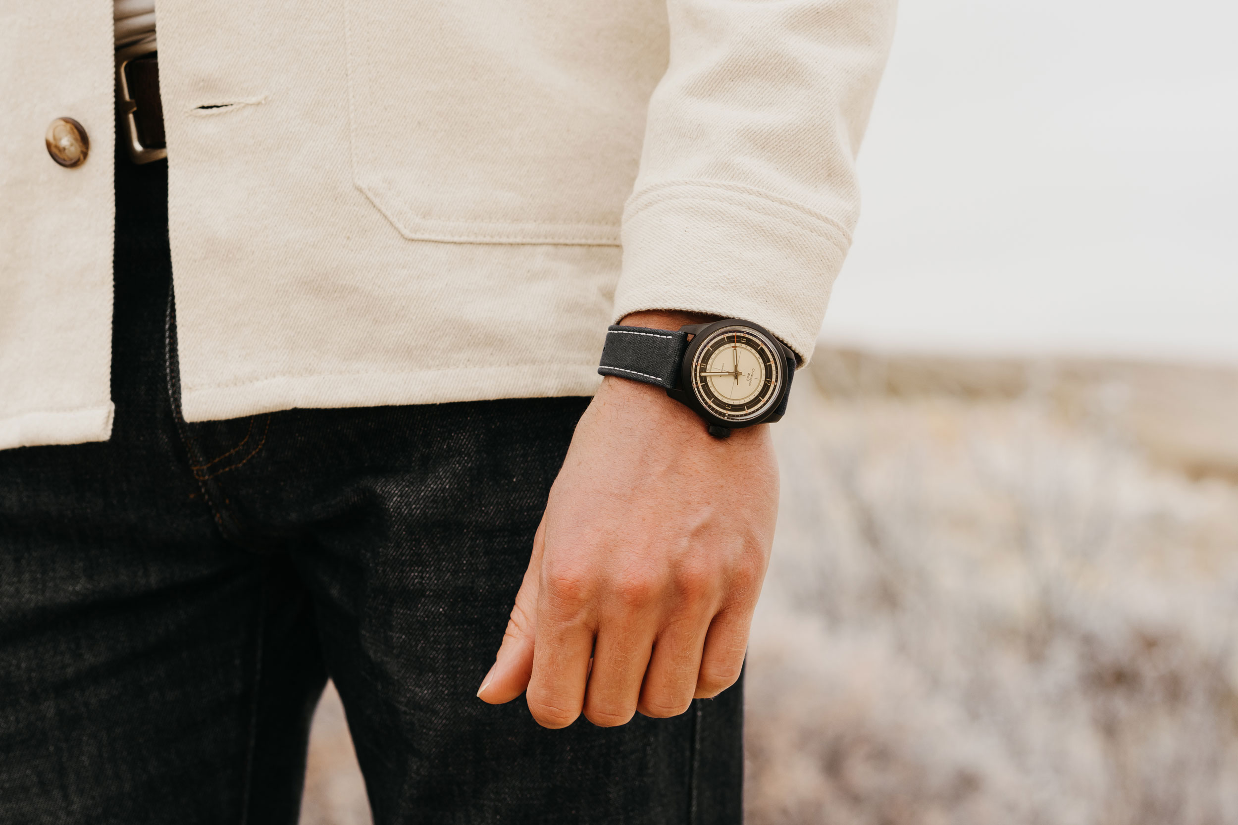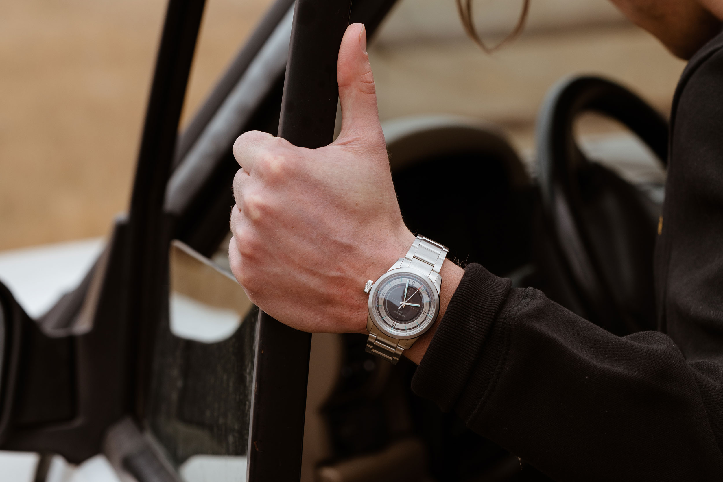 The dials were a collaborative effort between Worn & Wound and Christopher Ward. What emerged was a toolish sector-dial with an adventurous spirit. Concentric rings of raised metal alternate with valleys of matte color creating varying levels of height and visual weight. The metal rings match the cases around them, bringing industrial materiality into the dial. Punched out numerals in a military-inspired type mark the 3, 6, 9, and 12 hours, while lume plots at every hour and on the robust metal hands make sure there is clear visibility in low light as well. In lieu of a traditional date window, there is a pointer-date disk that frames the center of the dial. One cool and metallic, the other dark and warm, the Sandstorm and Sandstorm Blackouts offer excitingly different takes on the concept.