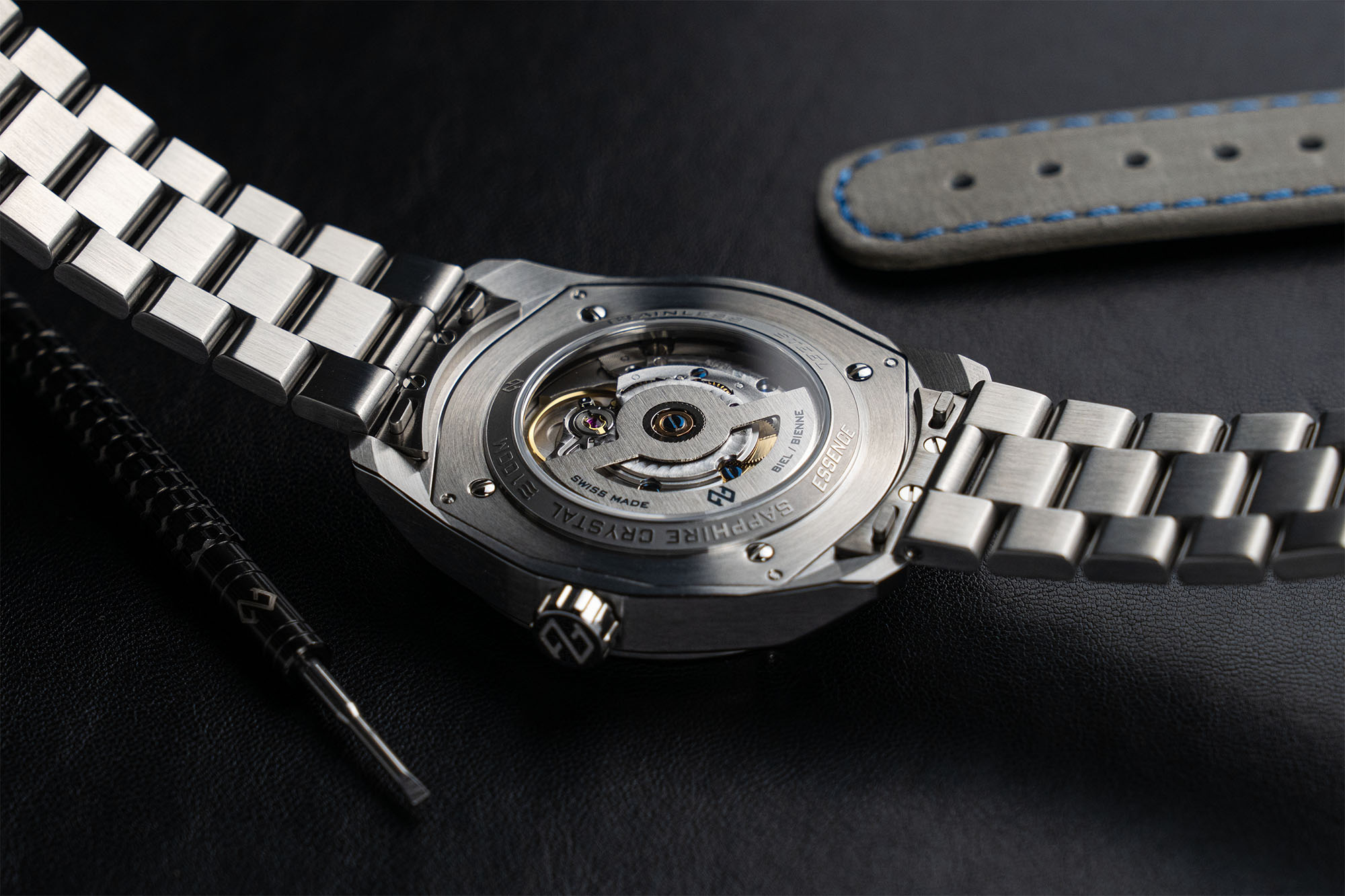 Housed in a 316L stainless steel case, the watch features Formex's patented Case Suspension System to absorb shocks and improve wrist comfort. This model comes equipped on a matching stainless steel bracelet, which utilizes a next-generation butterfly clasp with a patented micro-adjustment system for on-the-fly sizing. The entire setup is further secured by a new screw-down crown, ensuring a robust 100-meter water resistance for daily aquatic use.