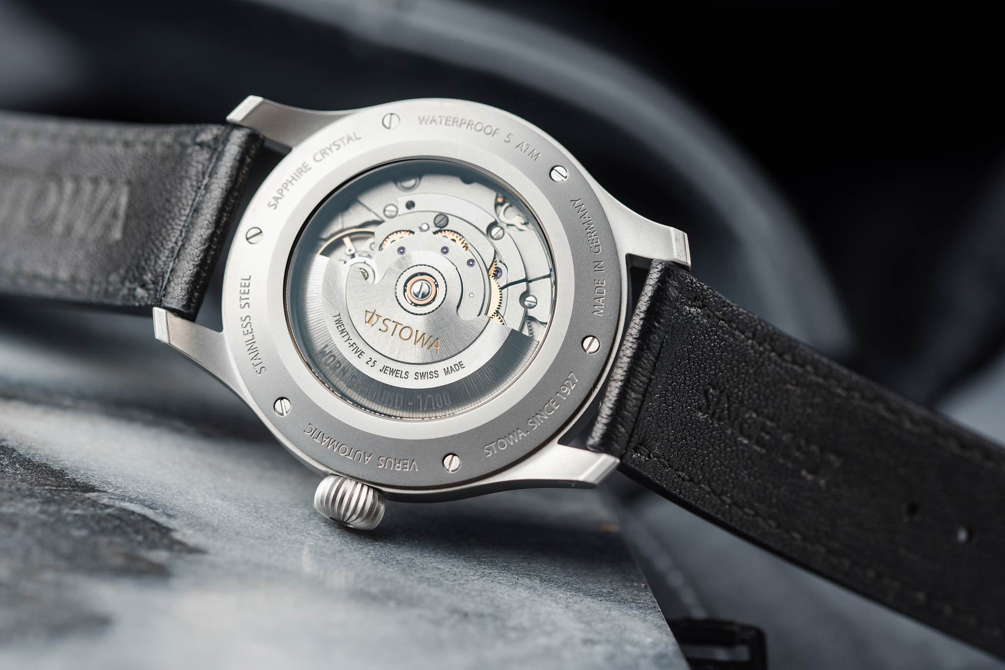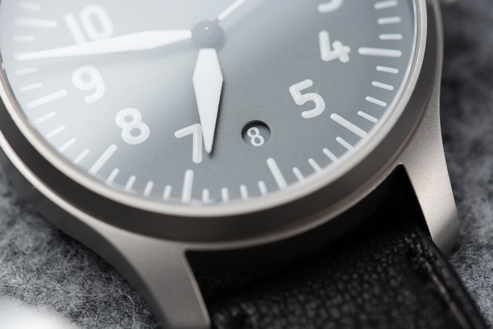 Inside of the Flieger Verus Grau LE is the ETA 2824-2 movement, a Swiss-made automatic workhorse movement. This caliber features 25-jewels, 38-hour power reserve, date, and hacking seconds (the second-hand stops when the crown is pulled out). The 2824 is a tried and true movement, thus making it a reliable favorite.