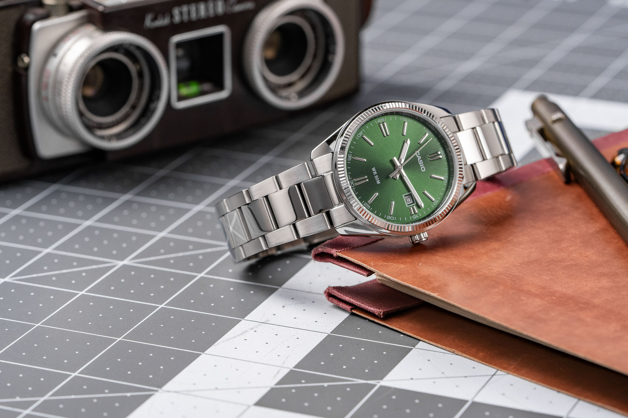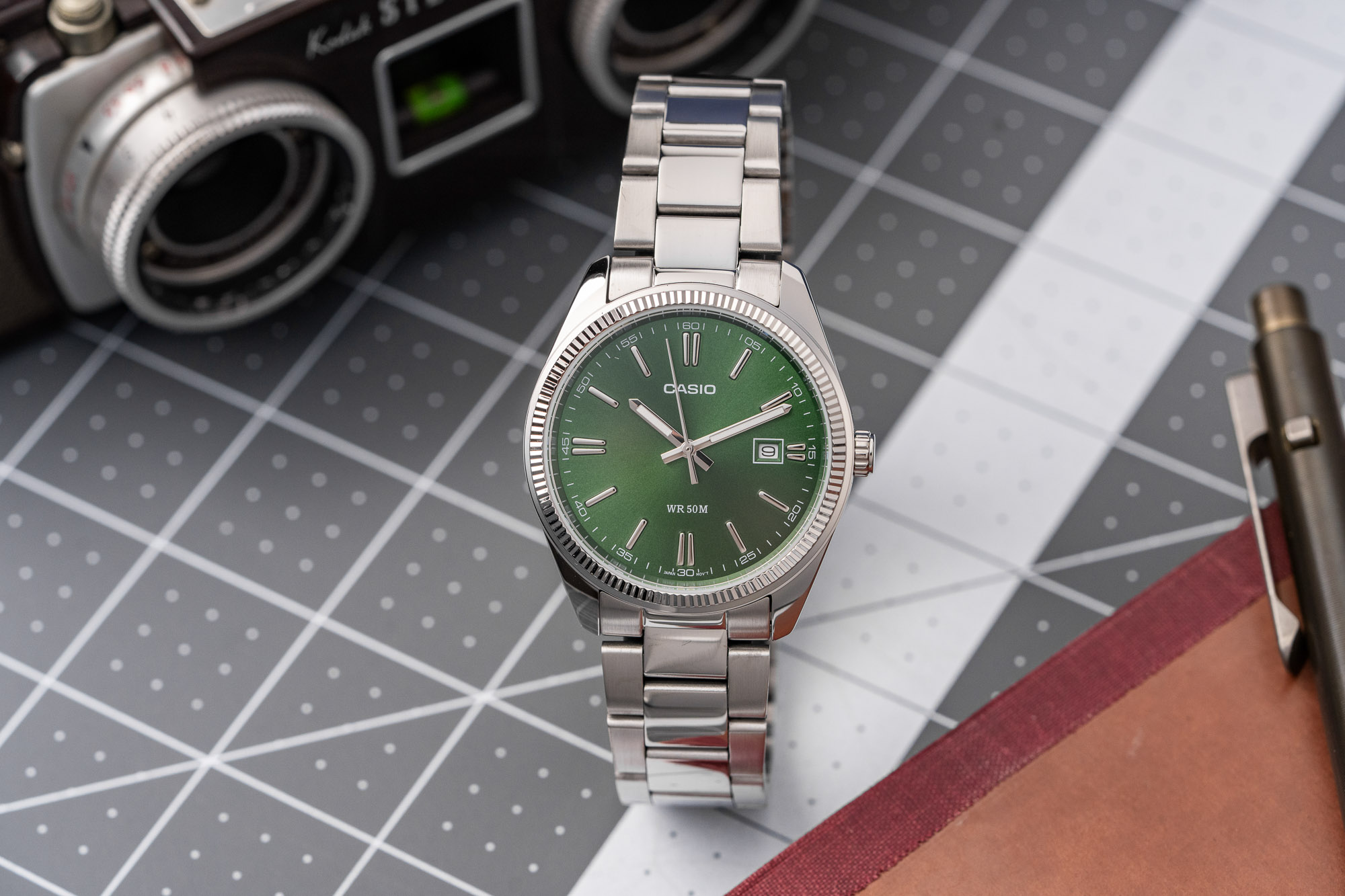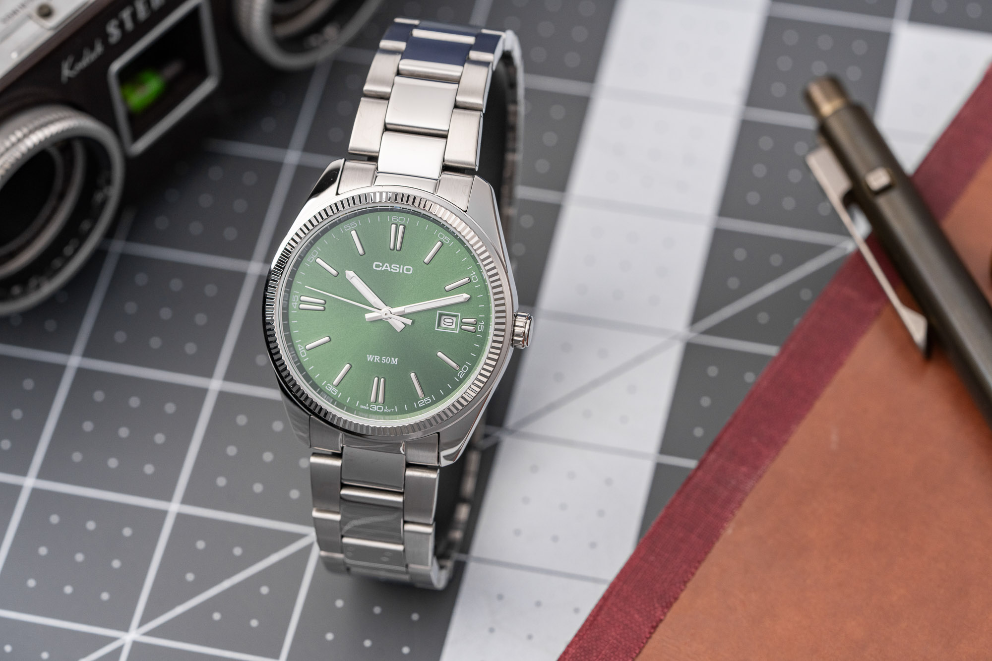 • Variant: Green Dial – Stainless Steel Bracelet (MTP‑1302D‑3AV)