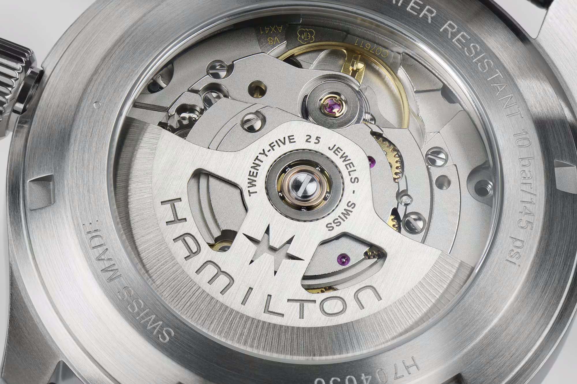 The Murph is powered by Hamilton’s H-10 caliber, their variant of Swatch Group’s Powermatic 80 — an ETA 2824-derivative with an impressive 80-hour power reserve. The H-10 is an automatic movement featuring 25 jewels, hacking hand winding, and a frequency of 21,600 beats per hour.