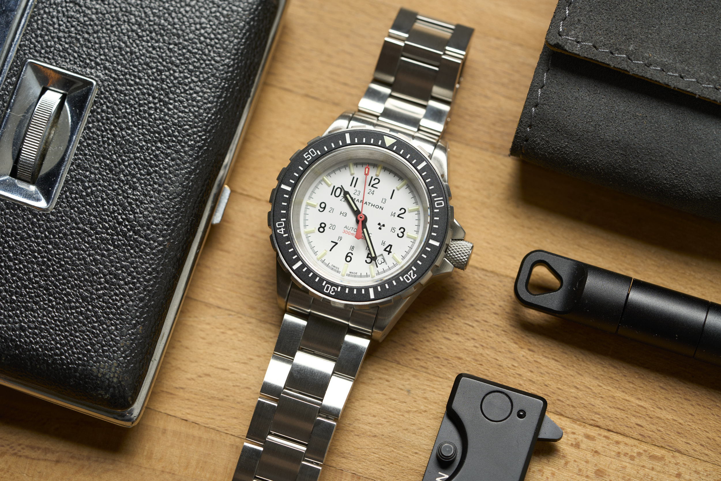 Founded in 1939, Marathon Watches of Canada is a family-owned company, currently in its fourth generation. Known for their military-issued watches, dating back to 1941, today’s Marathon is still a major supplier of mil-spec timepieces to the US Armed forces. Designed in Canada, but made in Switzerland at Marathon’s own factory in La Chaux de Fonds, their field, pilot, and dive watches are made to the exacting standards of the military.