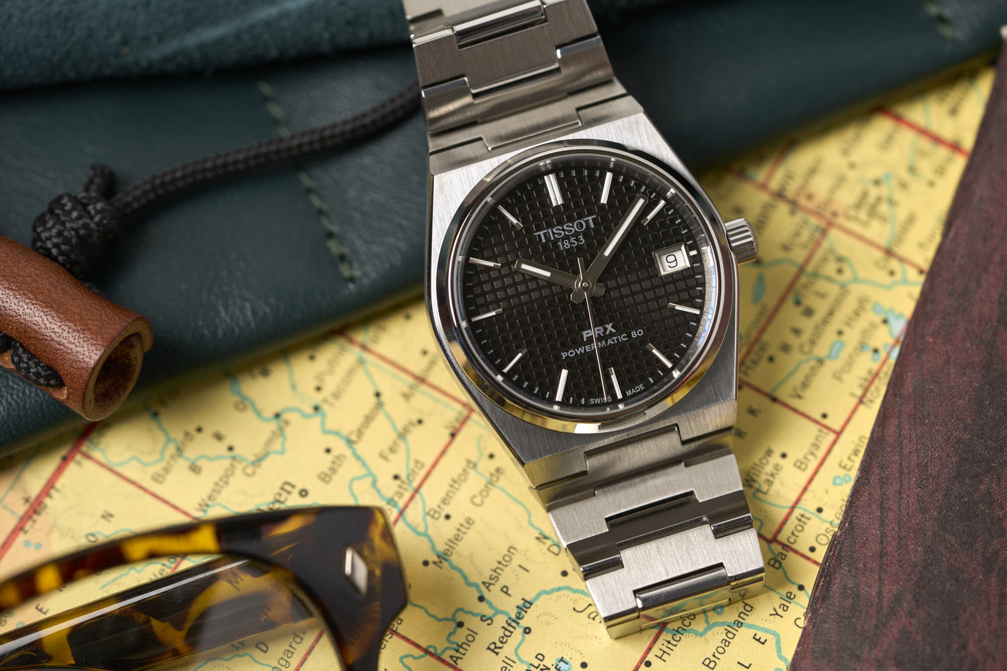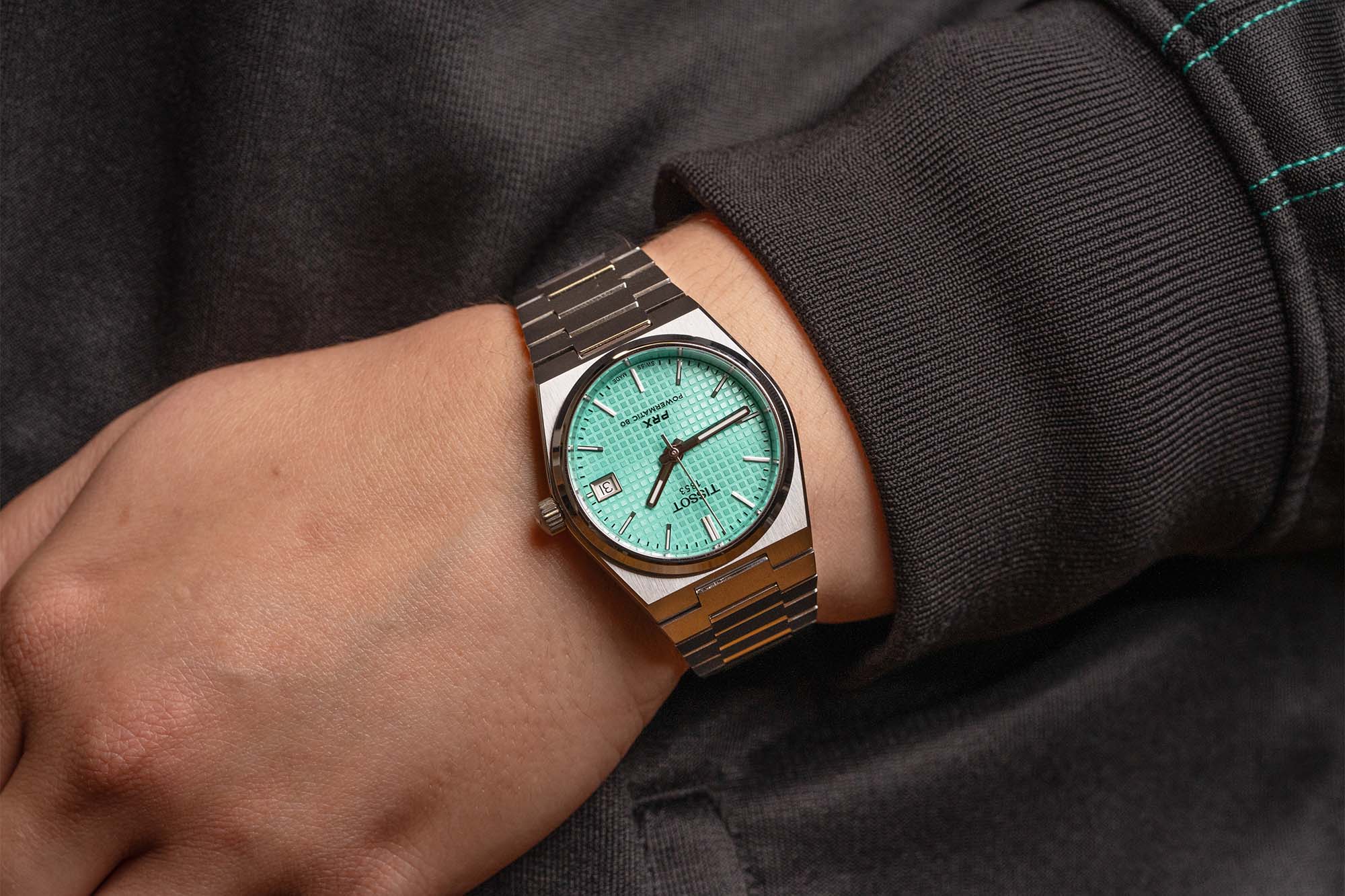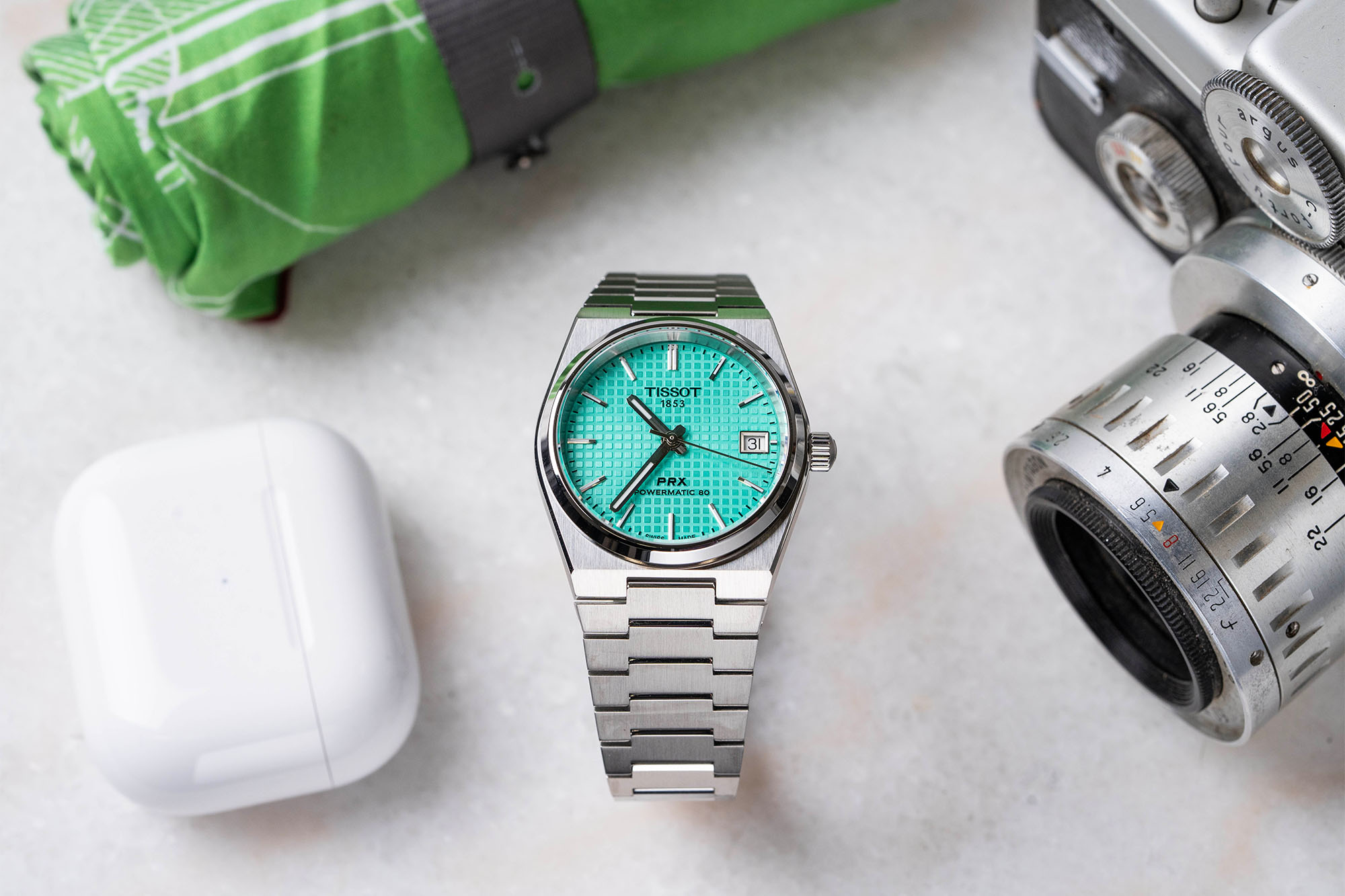 While Tissot is a storied Swiss watchmaker, having been founded in 1880, right now they are best known for their line of sexy, 70s-inspired sports watches called PRX. A throwback to an era of bell bottoms, big cars, record players, etc… the PRXs feature an “integrated bracelet” design, meaning the case and bracelet or strap seamlessly flow into each other. A sleek-looking concept, it became the rage in the 70s, exuding a certain luxurious bravado, and had a recent resurgence. The PRX executes the concept with style to spare, all at an affordable price point.