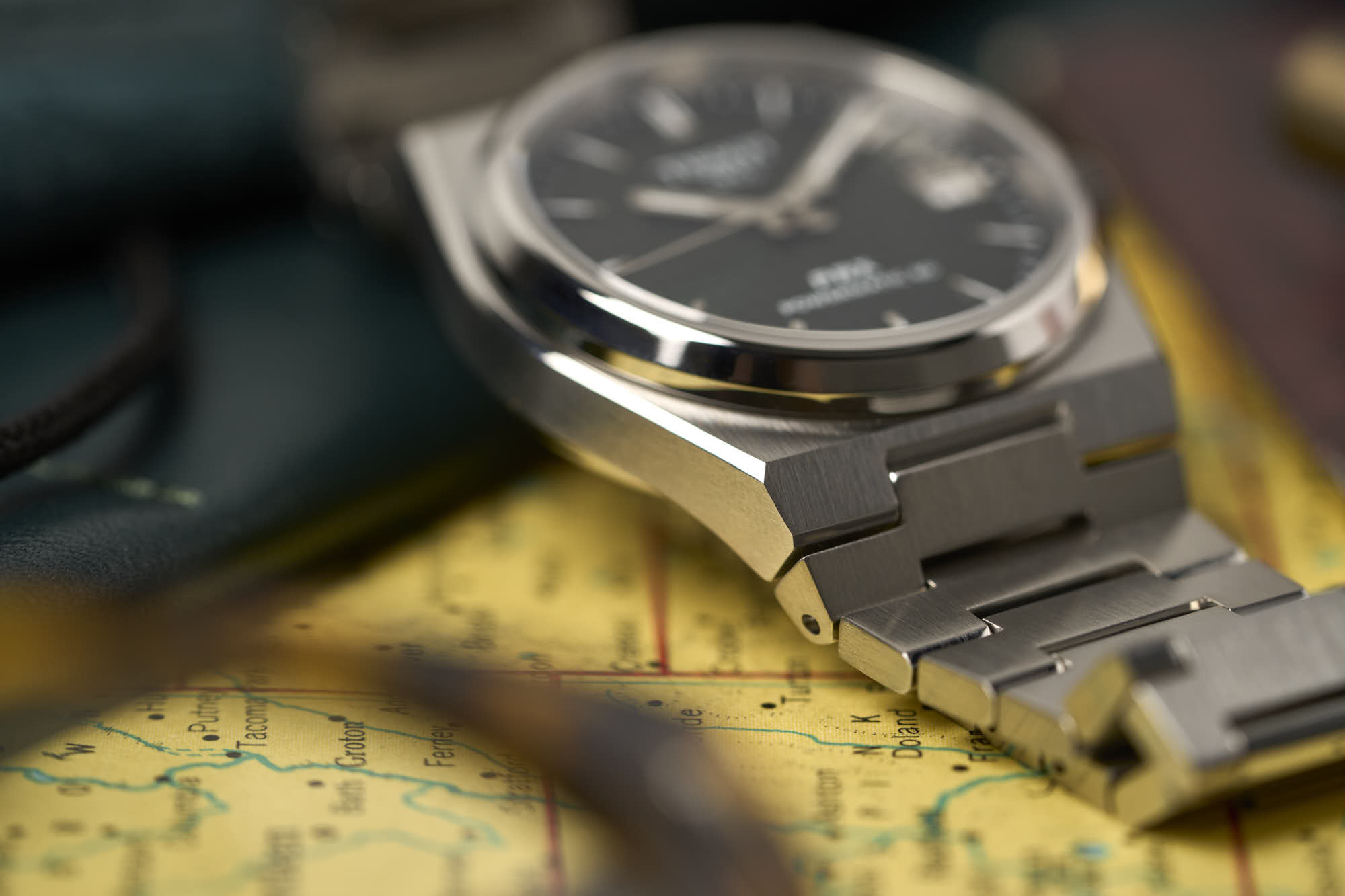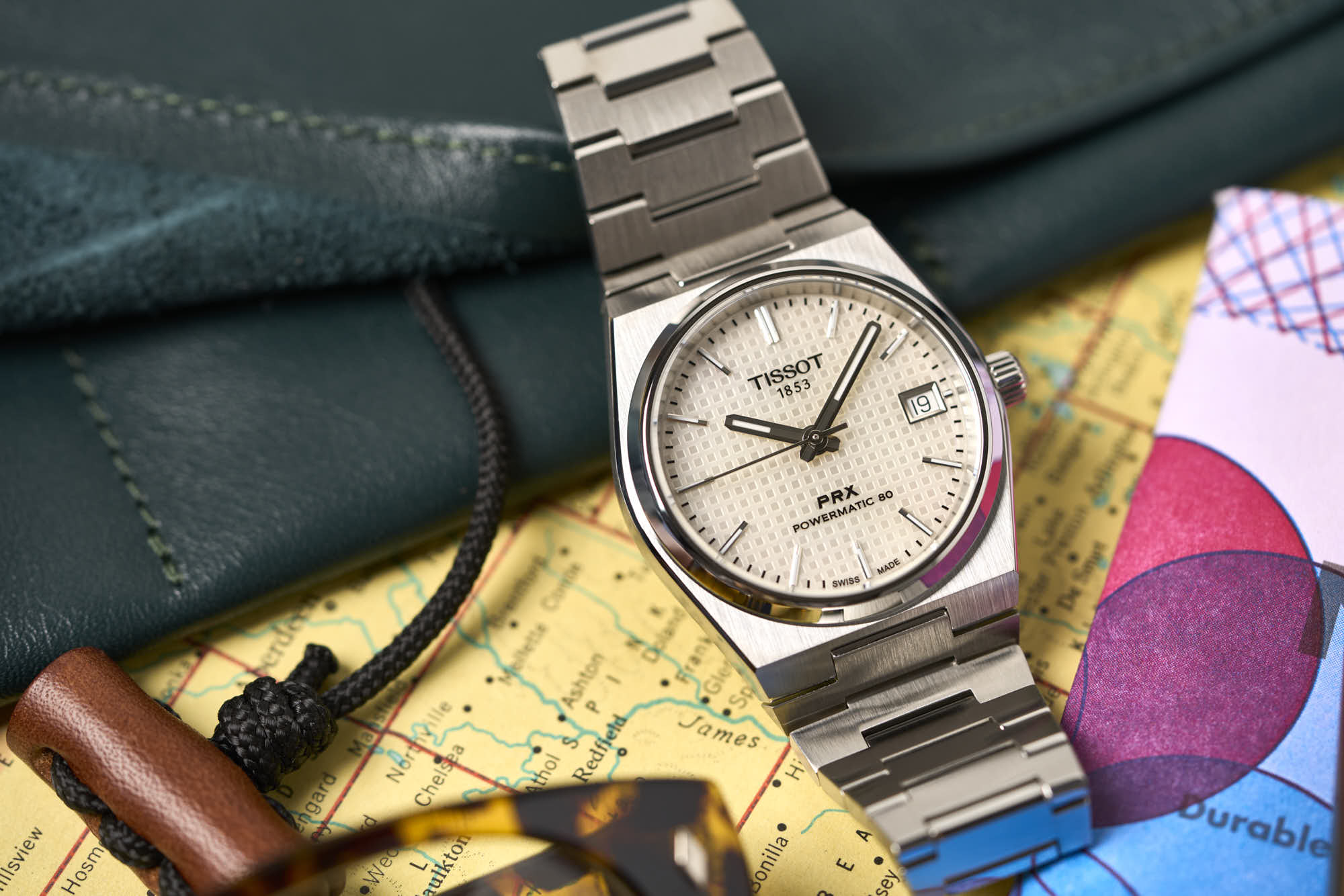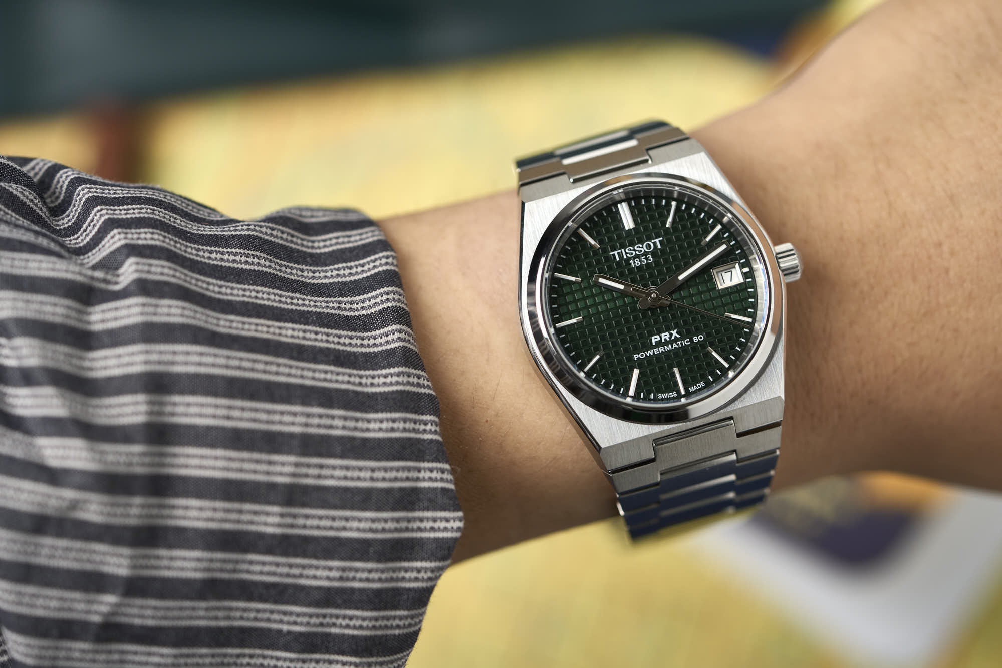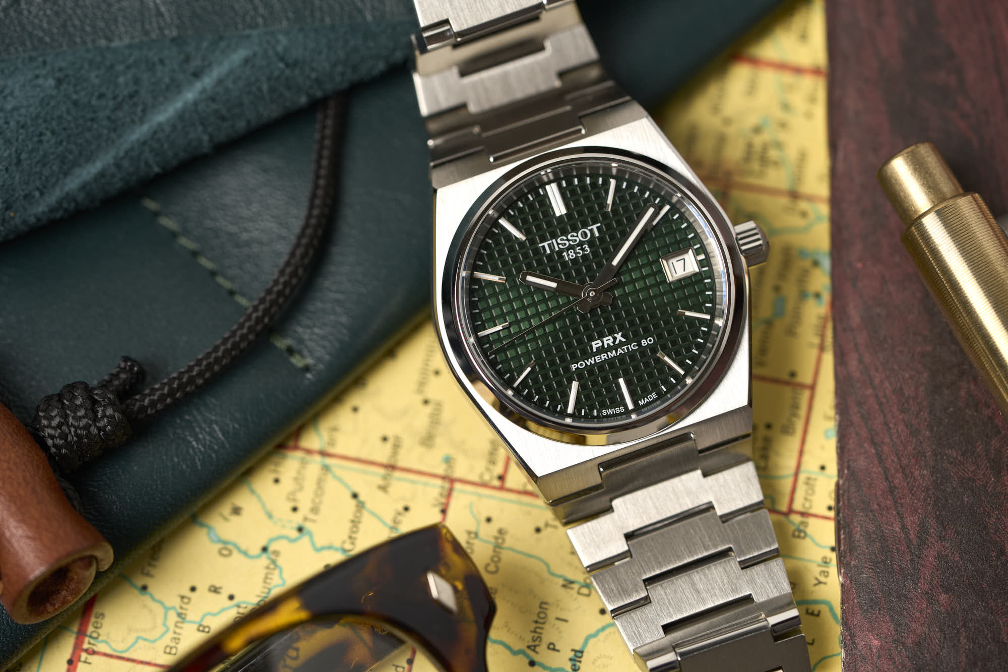 While Tissot is a storied Swiss watchmaker, having been founded in 1880, right now they are best known for their line of sexy, 70s-inspired sports watches called PRX. A throwback to an era of bell bottoms, big cars, record players, etc… the PRXs feature an “integrated bracelet” design, meaning the case and bracelet or strap seamlessly flow into each other. A sleek-looking concept, it became the rage in the 70s, exuding a certain luxurious bravado, and had a recent resurgence. The PRX executes the concept with style to spare, all at an affordable price point.