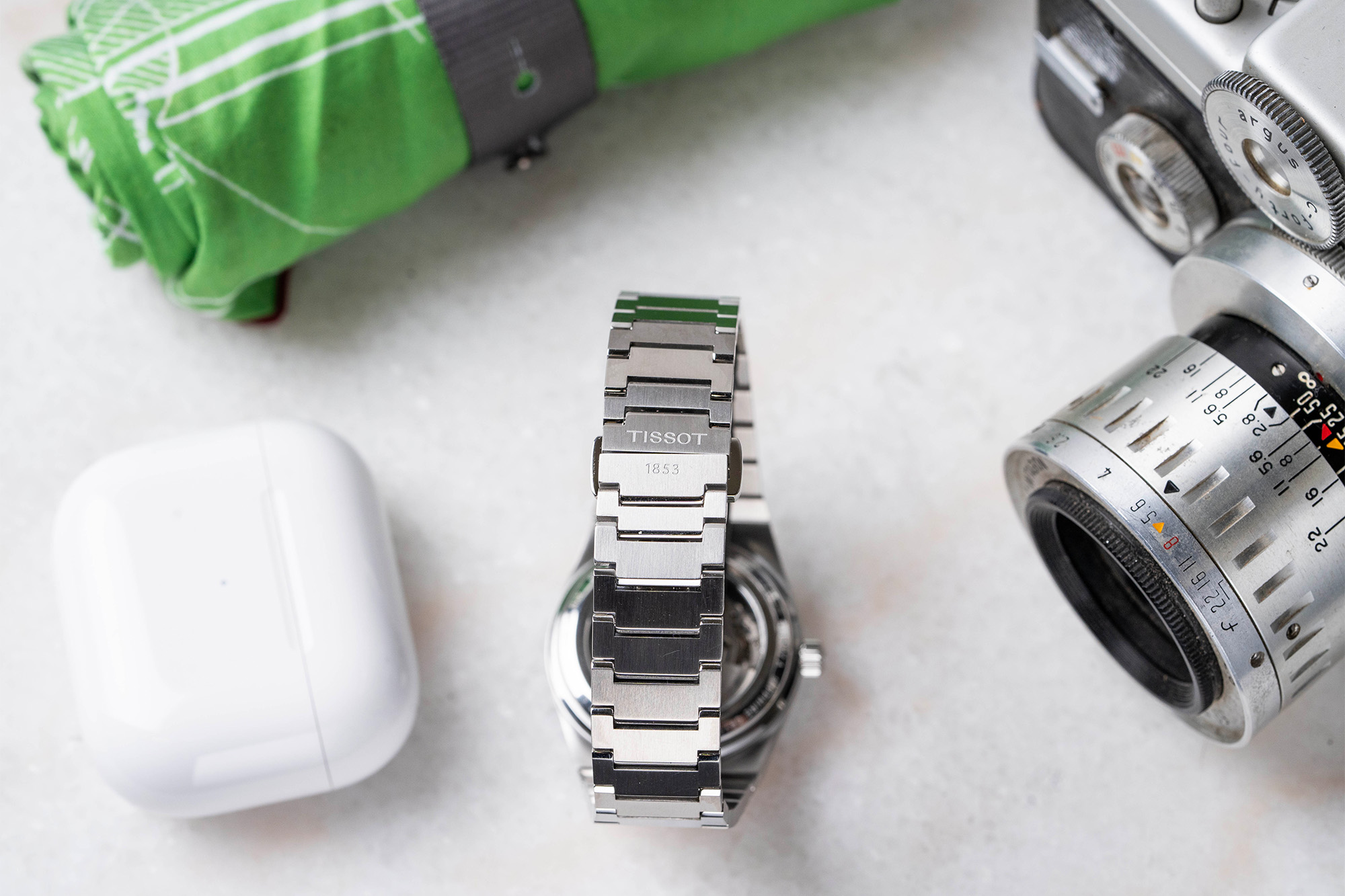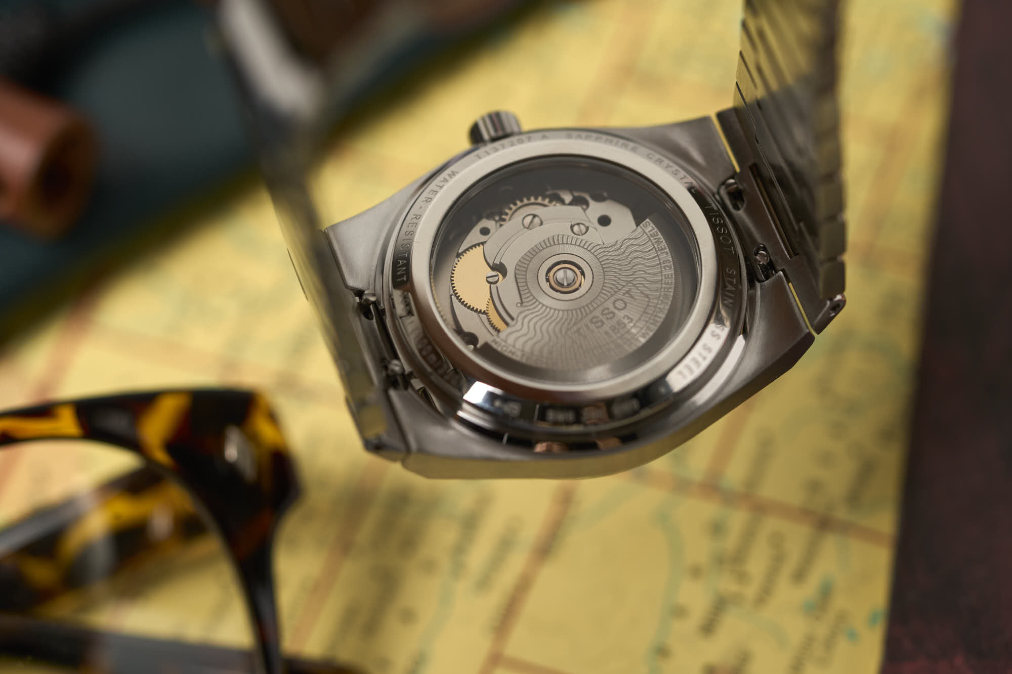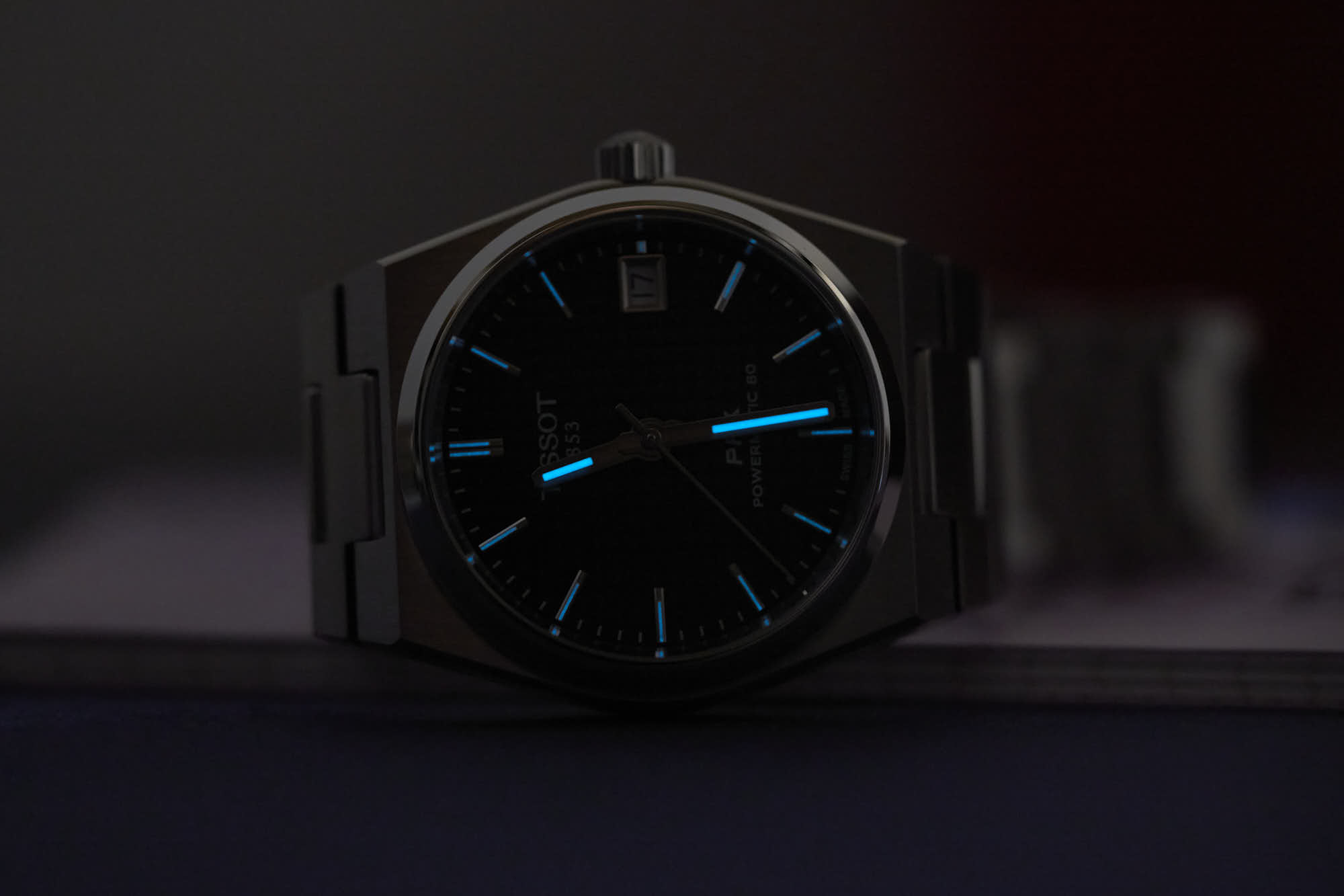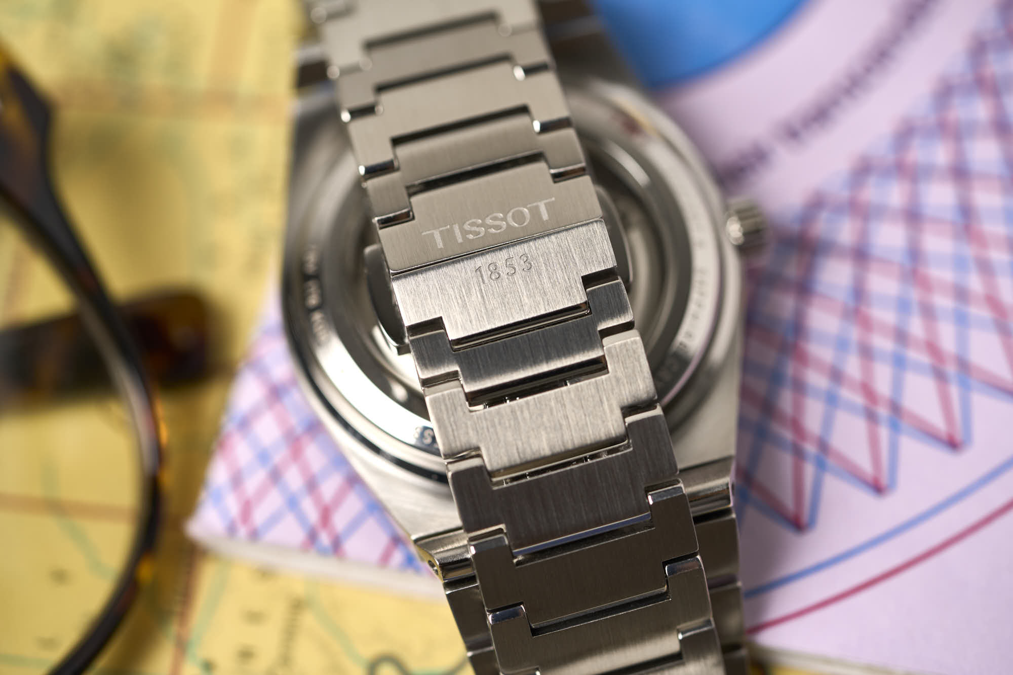 Powering the Tissot PRX is the Powermatic 80.111 Swiss-made automatic movement. Featuring an impressive 80-hour power reserve, the Powermatic 80.111 is a 23-jewel movement with hacking seconds, date, Nivachron balance spring, and a frequency of 21,600 bph. Visible through the display case back, the Powermatic 80.111 has a nicely decorated rotor.