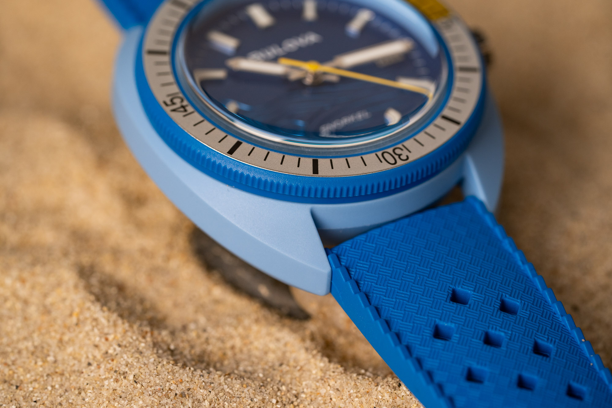 Based on the brand’s iconic Oceanographer line of sport and dive watches, the new Snorkel collection blends vintage design with modern materials. With an innovative new Hybrid Ceramic 41mm case, classic has met contemporary all while maintaining an affordable price point. With 100m of water resistance, the Snorkel is ready for whatever aquatic adventure awaits. The four variants — the Great White Shark, Blue Tang Fish, Sea Turtle, and Clownfish — take their vibrant marine hues from ocean life, each with an appropriately vintage-inspired tropic-style rubber strap.