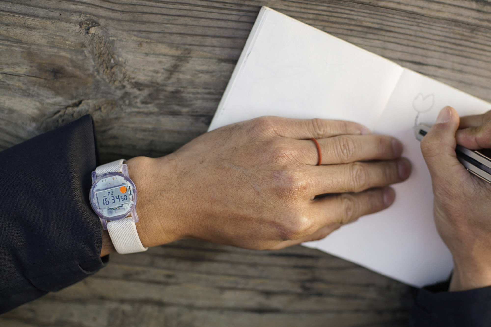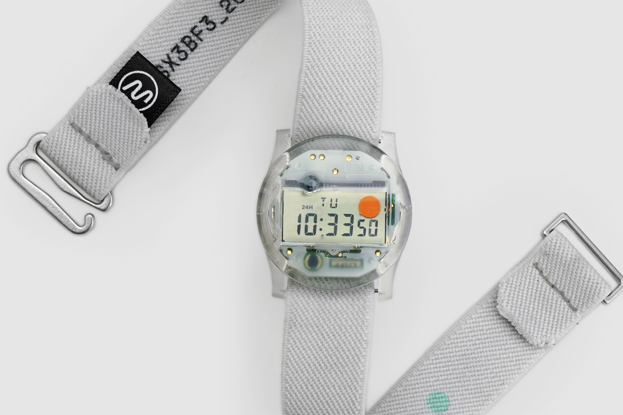 Paired with a custom Hook Strap© elastic band by Nick Mankey Designs, the Solid State Watch offers a secure, adjustable, and supremely comfortable fit. This seamless integration of innovative materials and timeless digital technology makes it a true design object—equally at home in a modern watch collection as it is in everyday wear. With its unconventional approach to timekeeping, the Solid State Watch is a bold statement for those who appreciate functional design, durability, and a completely worry-free ownership experience.