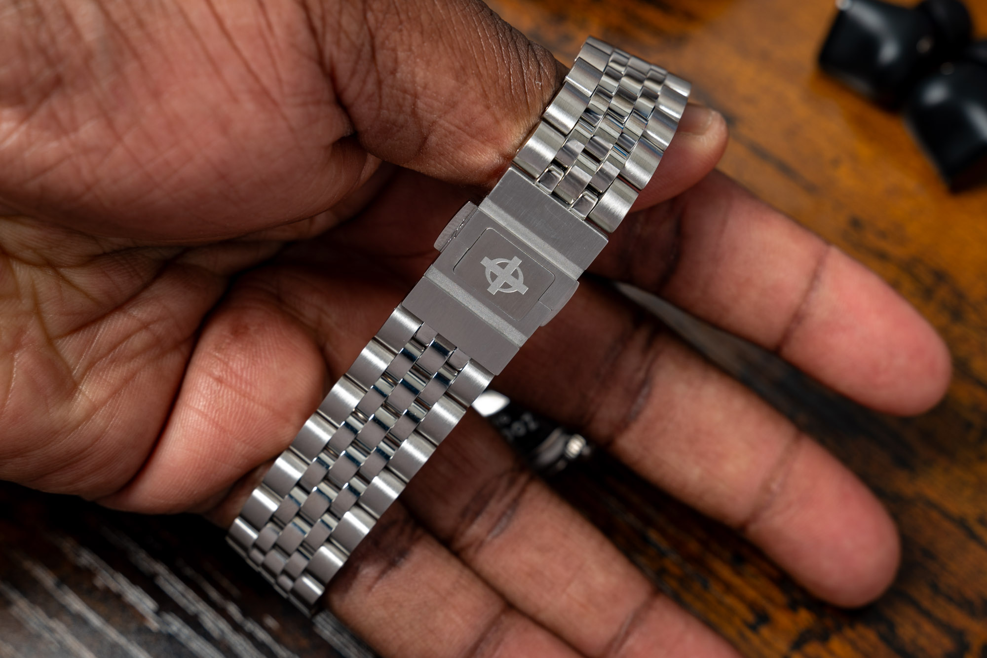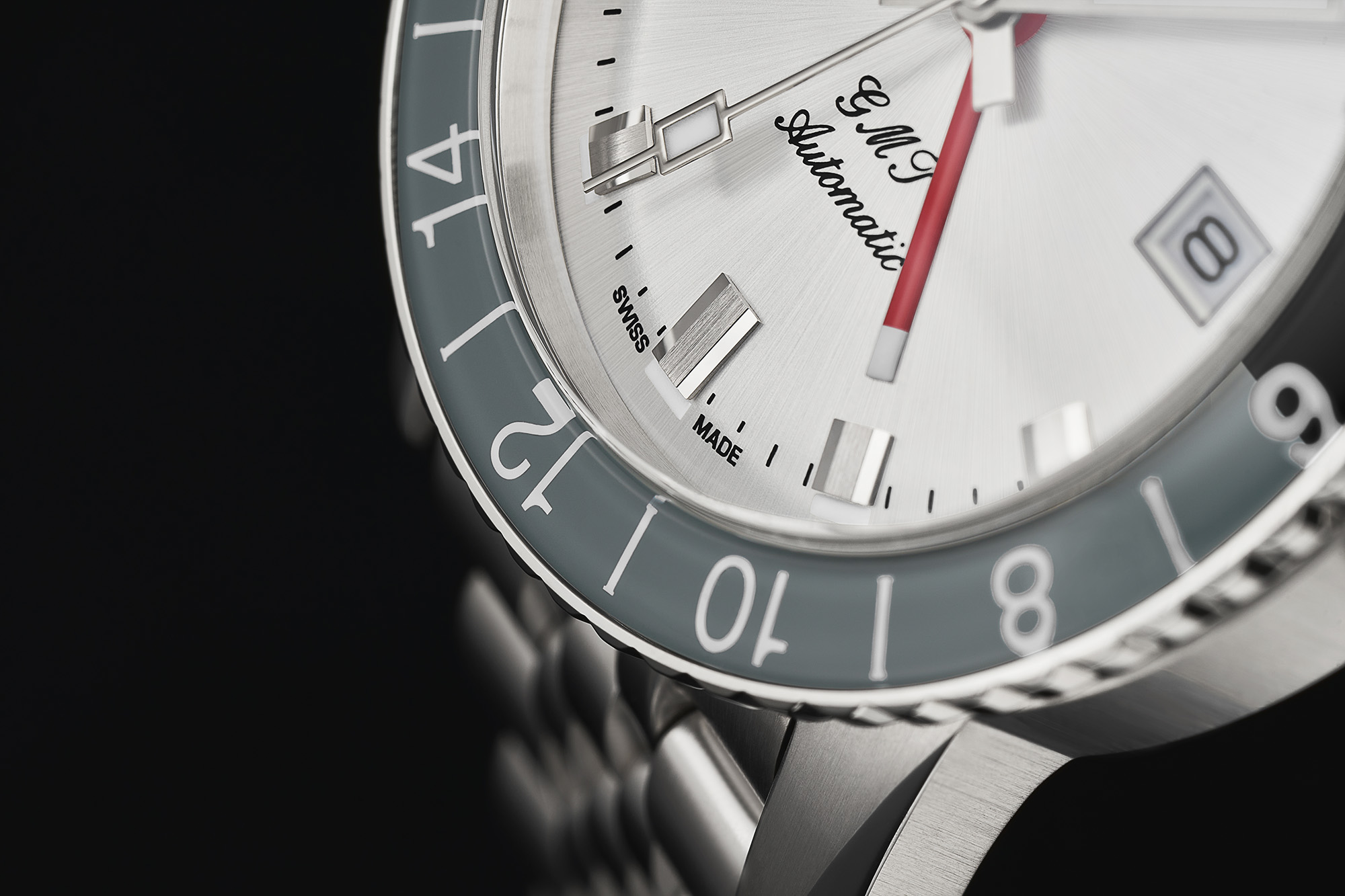 The Zodiac Super Sea Wolf GMT, like the original, is built off of a diver format, featuring a 40mm case with a sapphire crystal and 200m water resistance. A slight change is present in the brushed lugs which feature a sharp, polished bevel for a more formal and elegant look. Additionally, the bezel has been switched to a bi-directional mechanism with 24-clicks with the choice of either a Black/Grey bezel with a silver dial. Or a Pink/White bezel with a black dial. Both dial speaks to that of the original Aerospace, with applied markers and blocky hands for a mix of dress and sport.