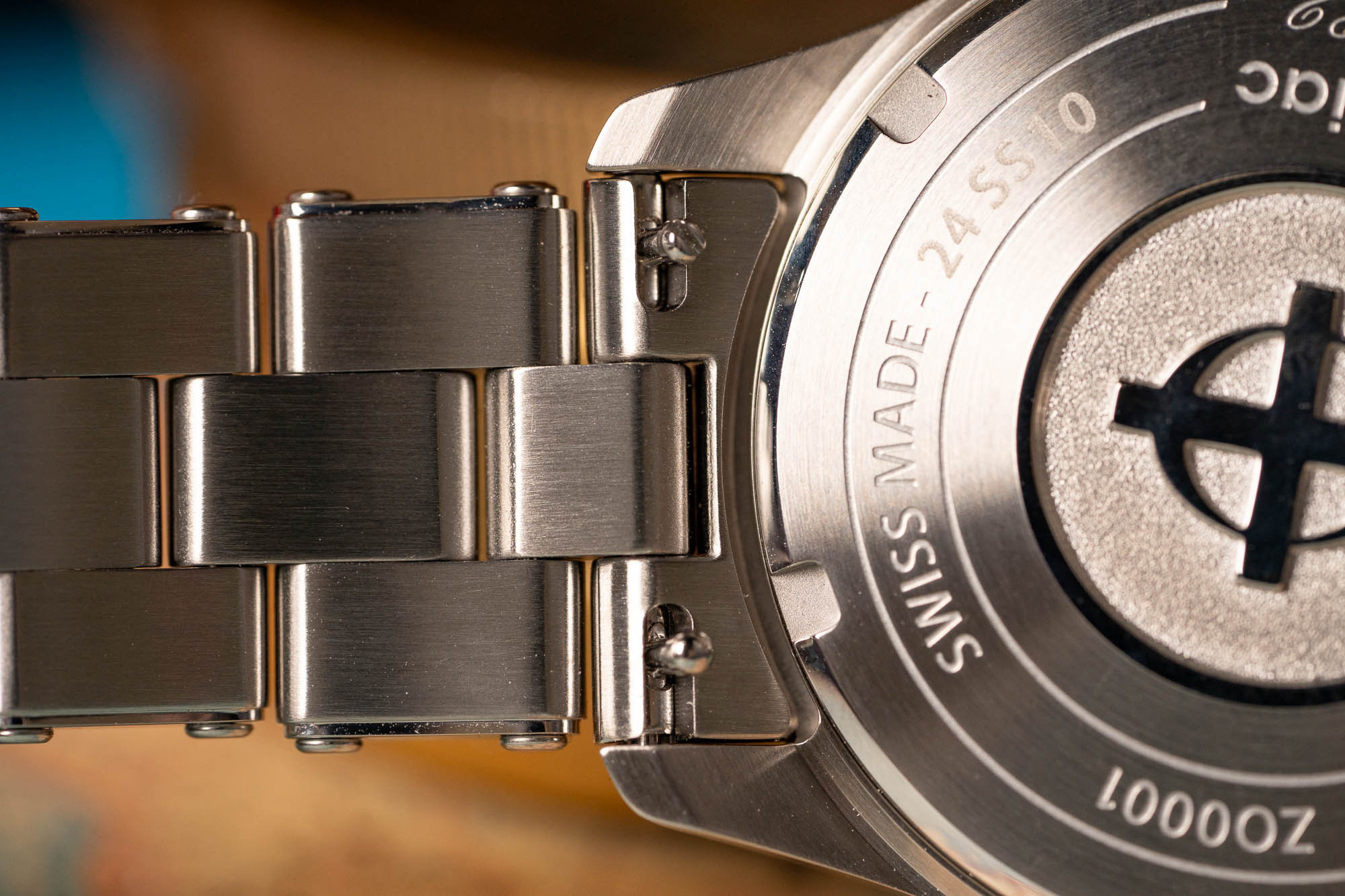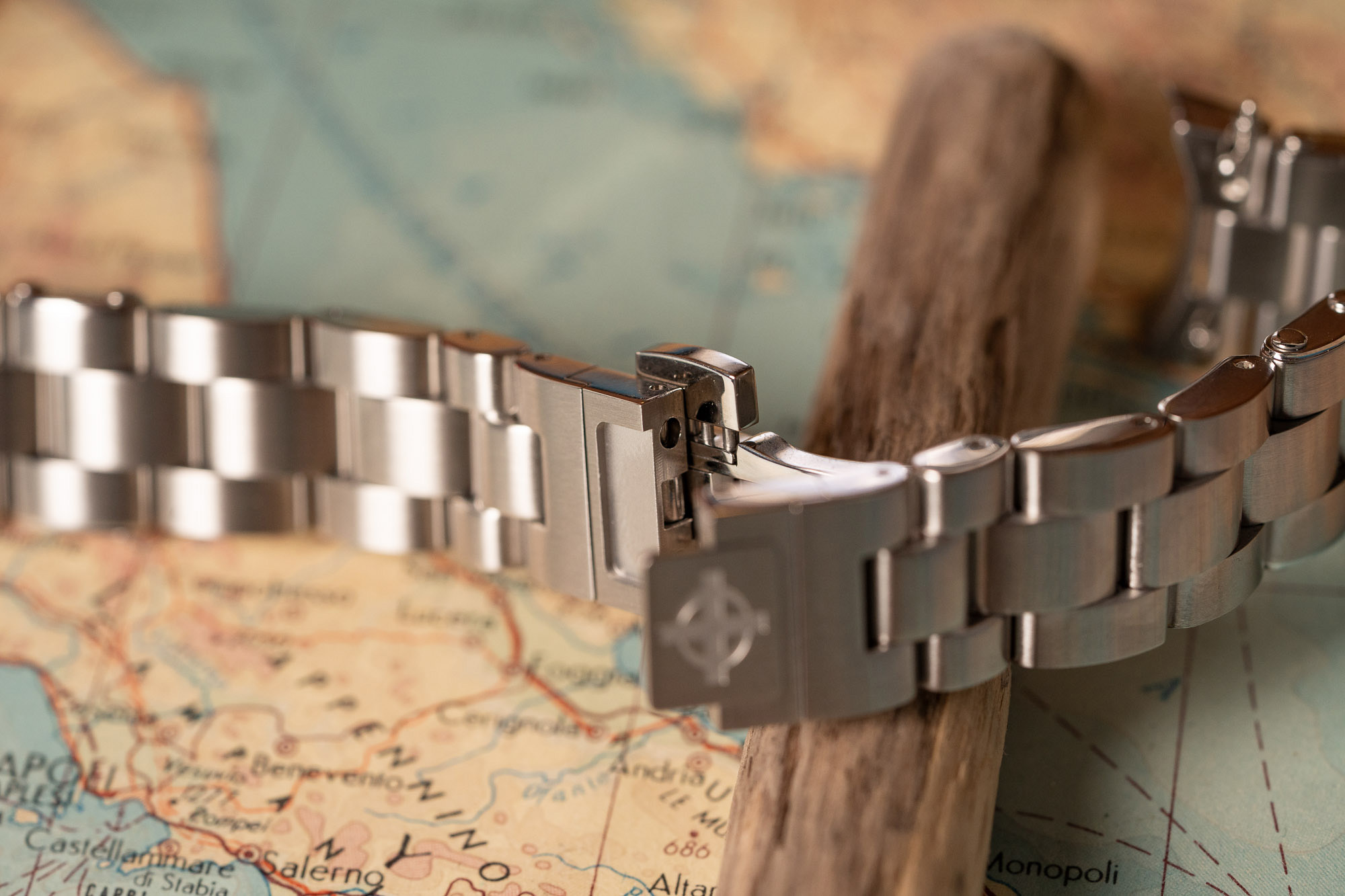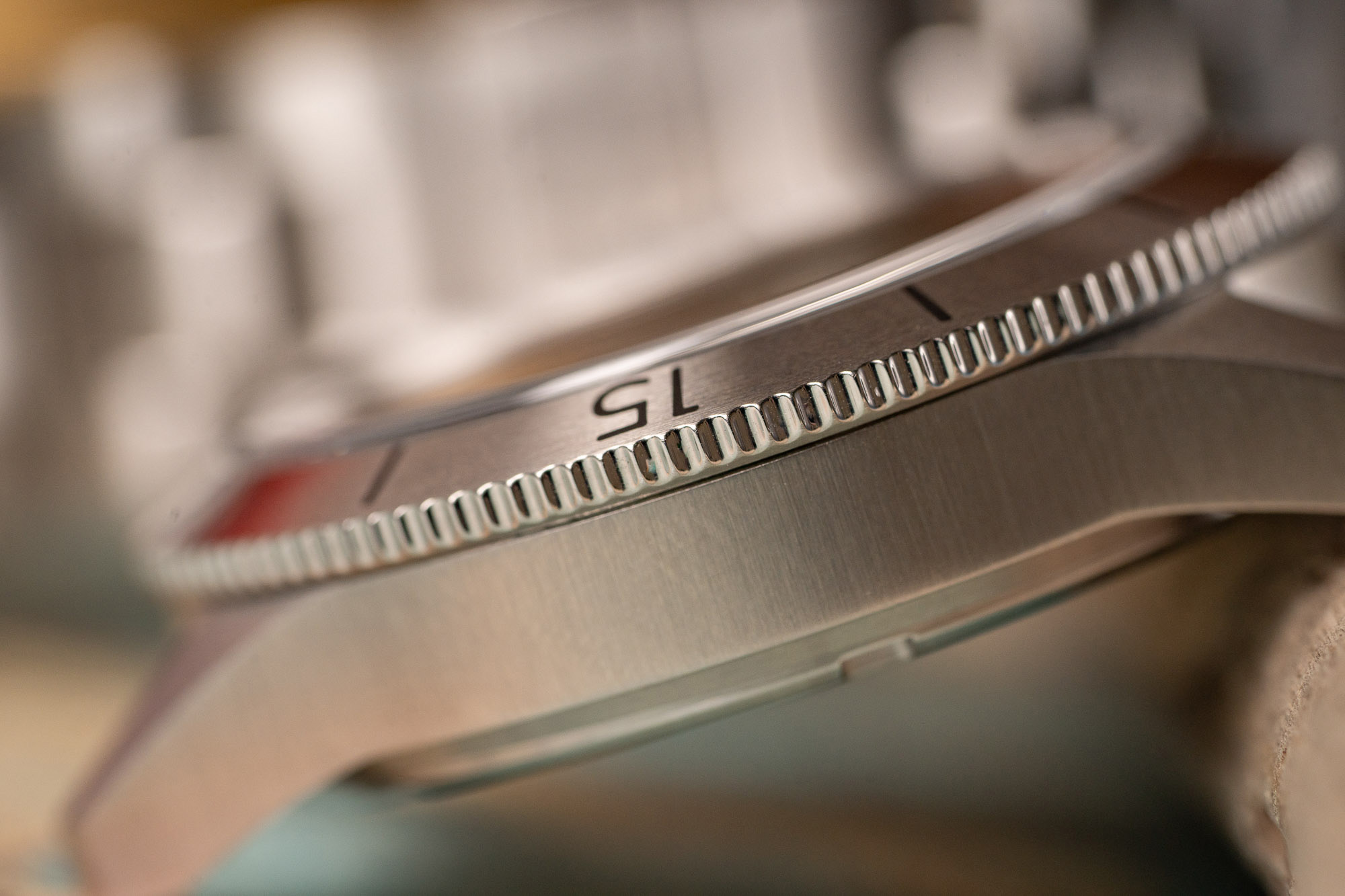 Powering the Super Sea Wolf Ref. 691 is the new STP 1-21M caliber. This manually-wound Swiss movement features 18 jewels, hacking, hand winding, a frequency of 28,800 beats per hour, and a power reserve of at least 40 hours.