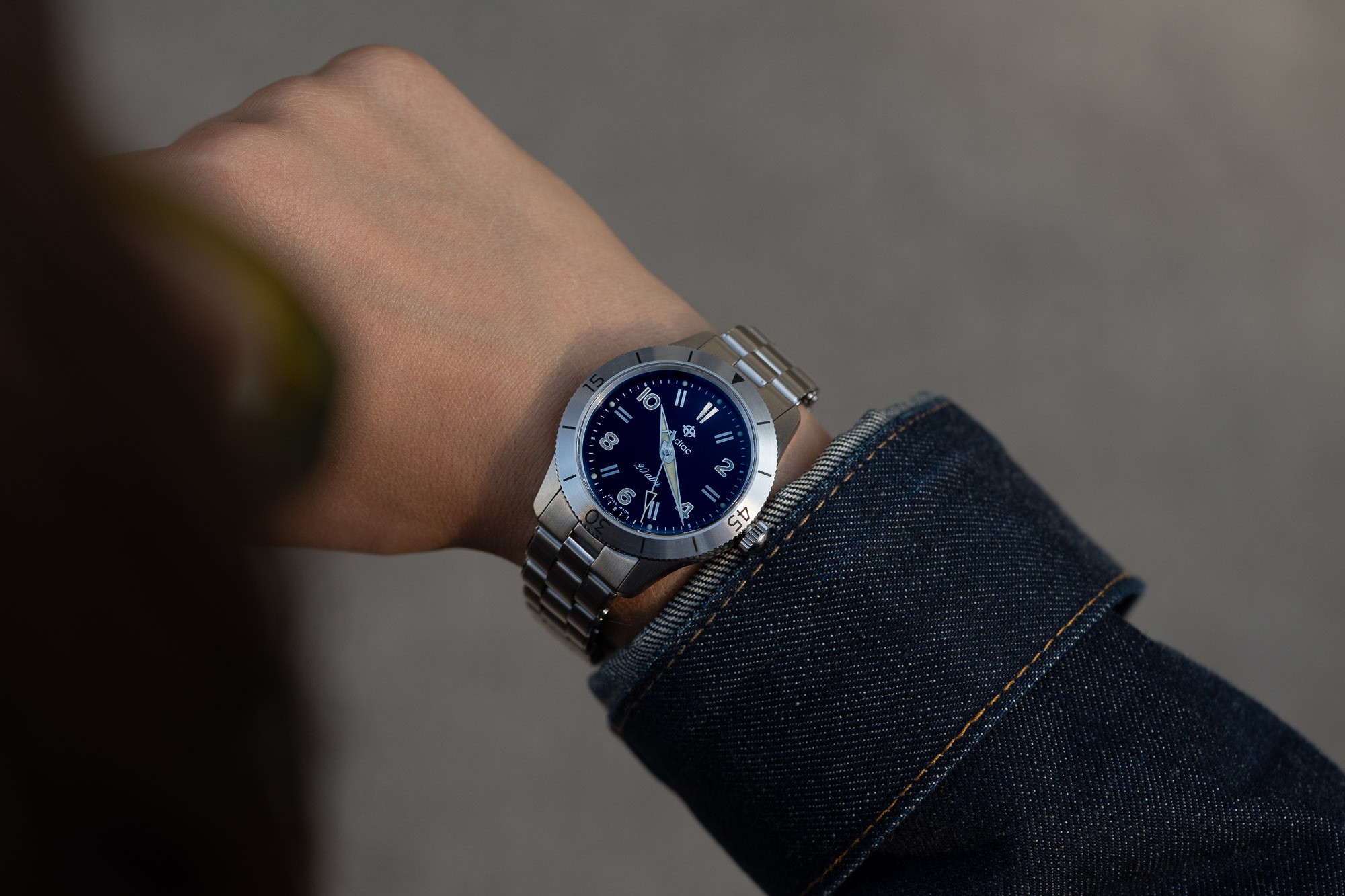 Based on the original prototype, the new Super Sea Wolf 691 features a 36mm case now water resistant to 200m, an improvement over the originals, and also features a screw-down crown. The Ref. 691’s high-gloss black dial is complemented by applied markers with indices at odd numbers and numerals on the even numbers, recreating the original dial layout. A three-link stainless steel bracelet with vintage-inspired rivets finishes the look.