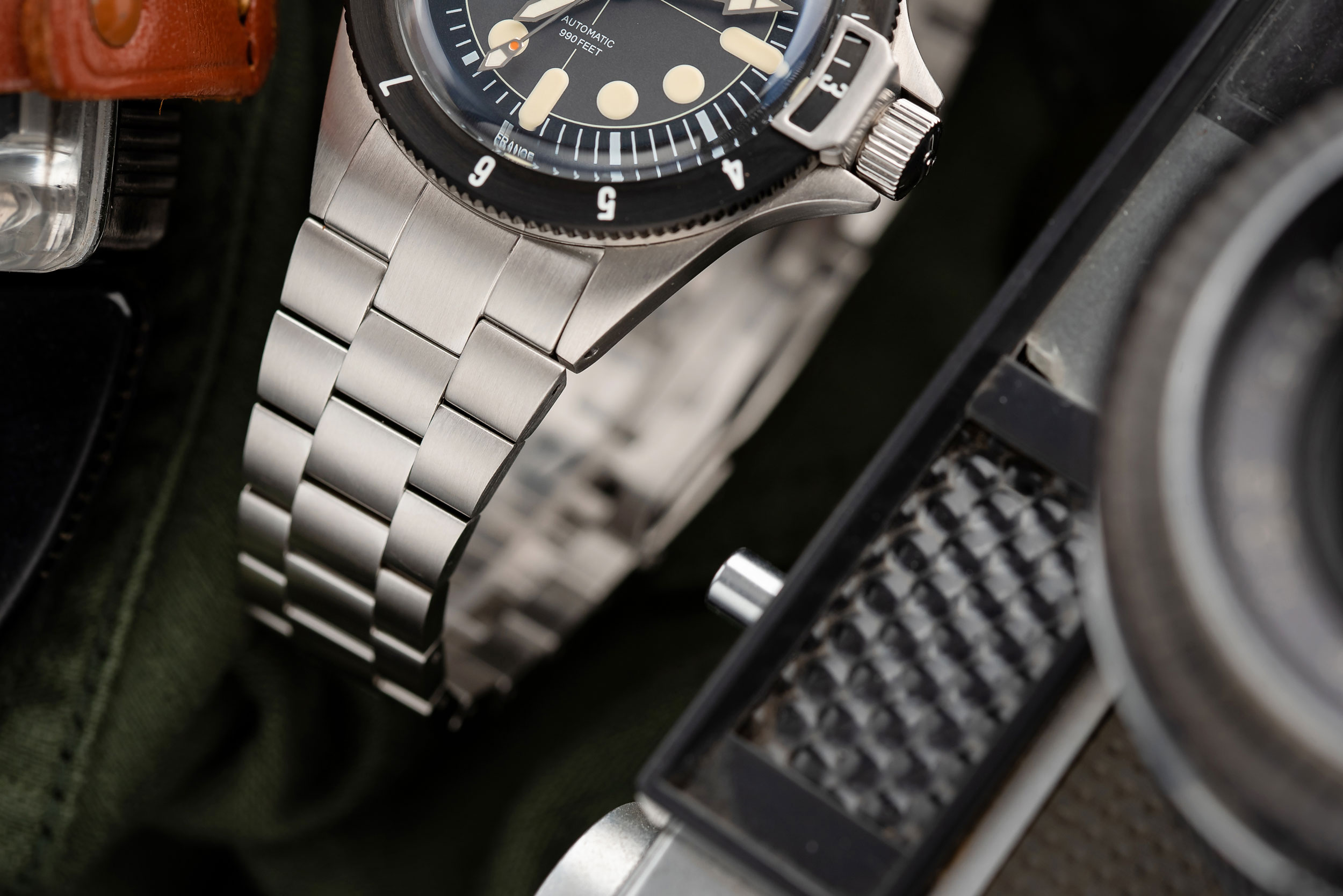 The first collaboration between Worn & Wound and Yema, the Superman Maxi Dial Limited Edition mixes classic dive design with rugged, military-influenced details. Drawing from the oversized markers of the Superman II, the LE has a highly legible dial with a bold, aggressive attitude. The 39mm, 300m Superman case has been fit with an edge-to-edge black bezel with fully lumed 12-hour scale, and still features Yema’s signature locking mechanism.