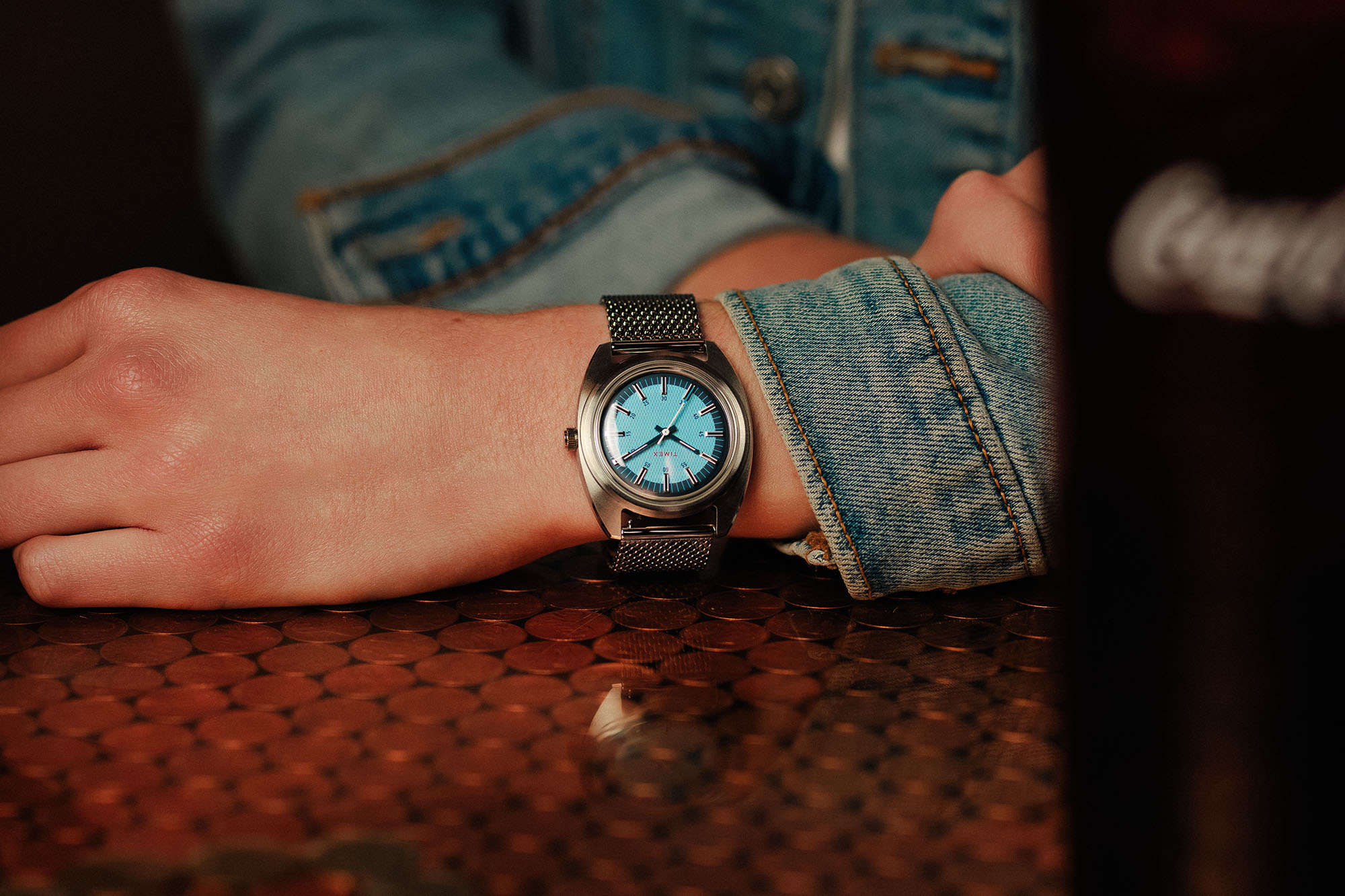 The Timex x Worn & Wound WW75 V2 takes the same successful platform as last year’s collaboration but pursues new palettes for a different overall feel. A riff on a case from the 70s that had only been used with a quartz movement, we changed up the dial adding color and texture, added brushed finishing and polished bevels for a little jujj, and most importantly, a manual wound mechanical movement.