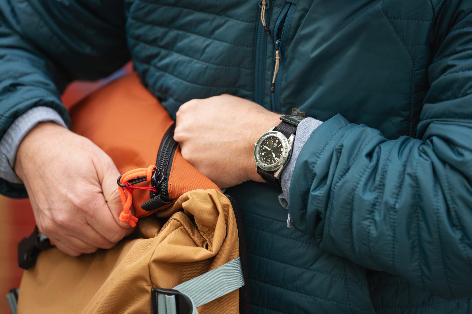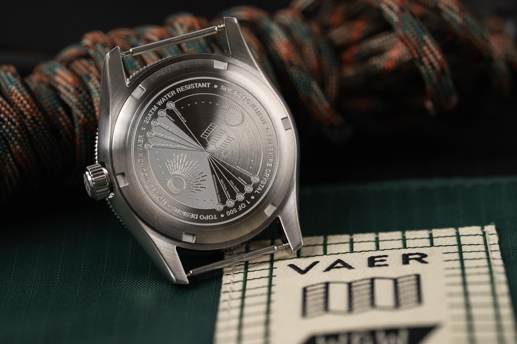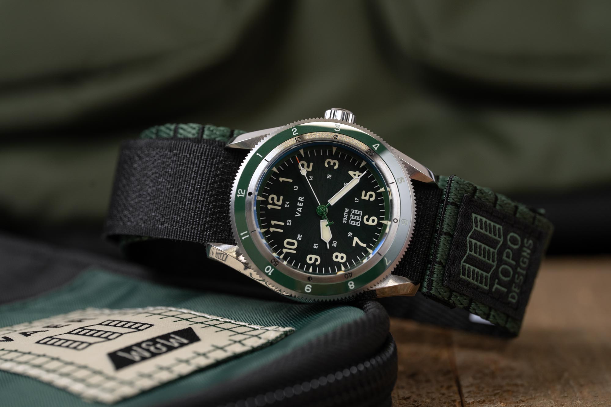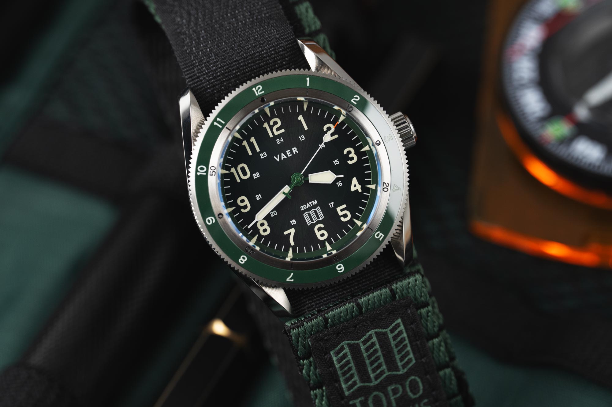 The Solar Hiker is a triple-brand collaboration between Vaer, Topo Designs, and Worn & Wound, uniting expertise in watchmaking, outdoor goods design, and storytelling. Built for adventure, it’s a 38mm field-watch-inspired design housed in a 200m-rated dive case and powered by the sun.
