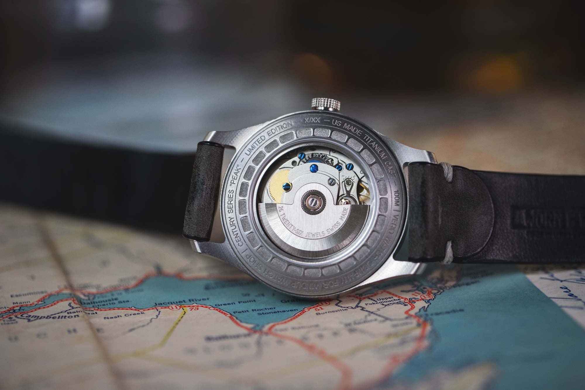 Inside of the Peak and Granite is the Sellita SW 200 movement. This is a Swiss-made automatic with 38-hour power reserve, hacking seconds and a frequency of 28,800 bph. Each movement is regulated in-house in 6-positions to +/-5 sec/day and features in-house heat-blued screws.