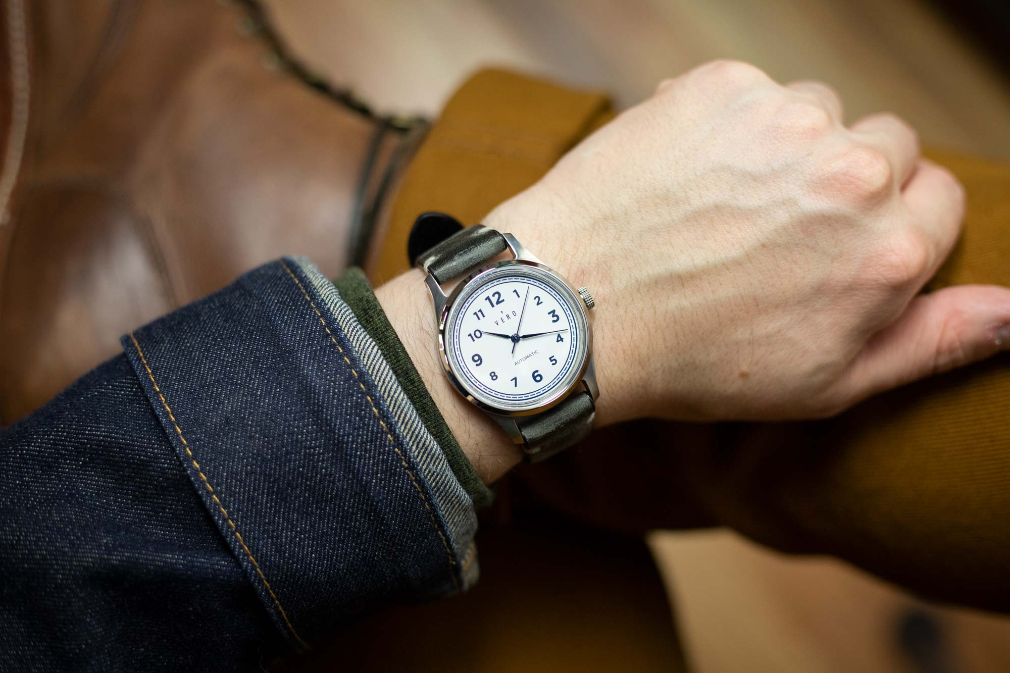 Founded in 2015 by Chris Boudreaux and Danny Recordon in Portland, Oregon, Vero has already set itself apart from the pack through their dedication to in-house production and high quality materials. Their current collections, the 36 and the SW, both feature multi-stage printed dials made of brass, excellent case work and piston crowns manufactured in their Portland facility. The watches are then powered by excellent Sellita Swiss mechanical movements, assembled right in their Portland facility. This American-made ethos, as opposed to taking the simpler route with a manufacturer in Asia or Europe, is a point of pride for Vero, with each Vero timepiece’s packaging proudly displaying the origin and assembly of every component.