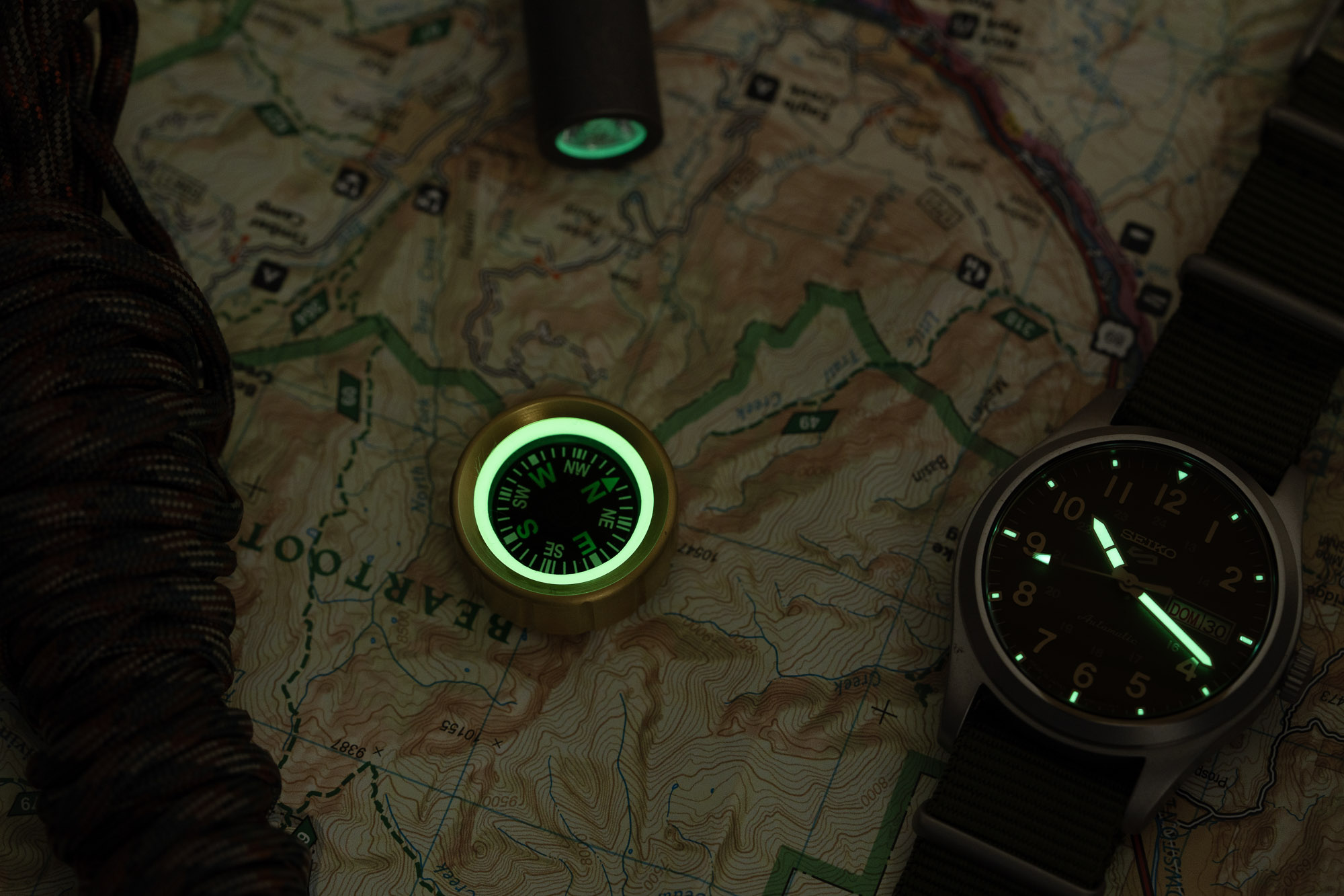 Featuring a removable, serviceable insert, induction damping for quick stabilization, and water resistance for wet conditions, the Brass‑Trail eliminates the need for batteries and requires no maintenance to remain illuminated. At just 1 ounce, it’s lightweight yet durable, making it the perfect companion for hikers, campers, climbers, and anyone who relies on accurate direction when it matters most.
