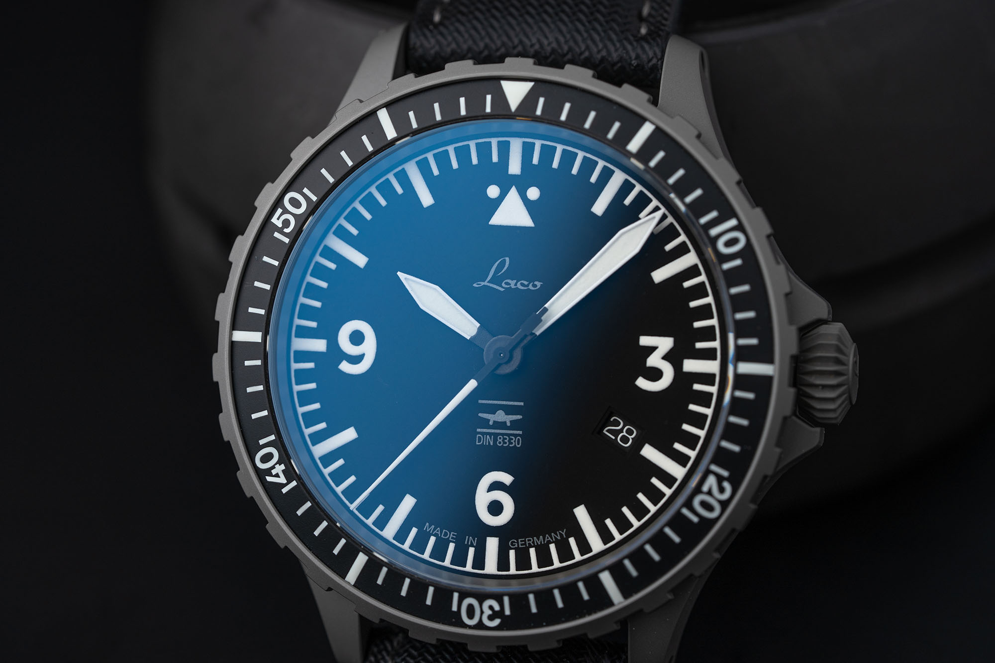 In the 1940's, only a handful of companies were selected to manufacture pilots watches for the German Airforce. Laco was one of these companies, and today they bring that heritage to their watches. You'll notice that their "original" series all feature "FL23883" engraved into the case, on the side opposite from the crown. This number indicates the watch was made to military specification for pilots.