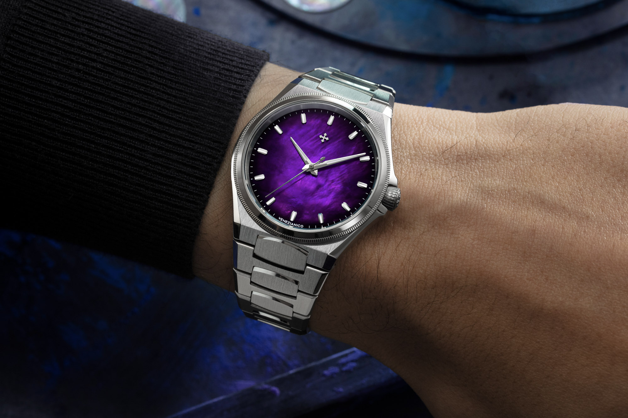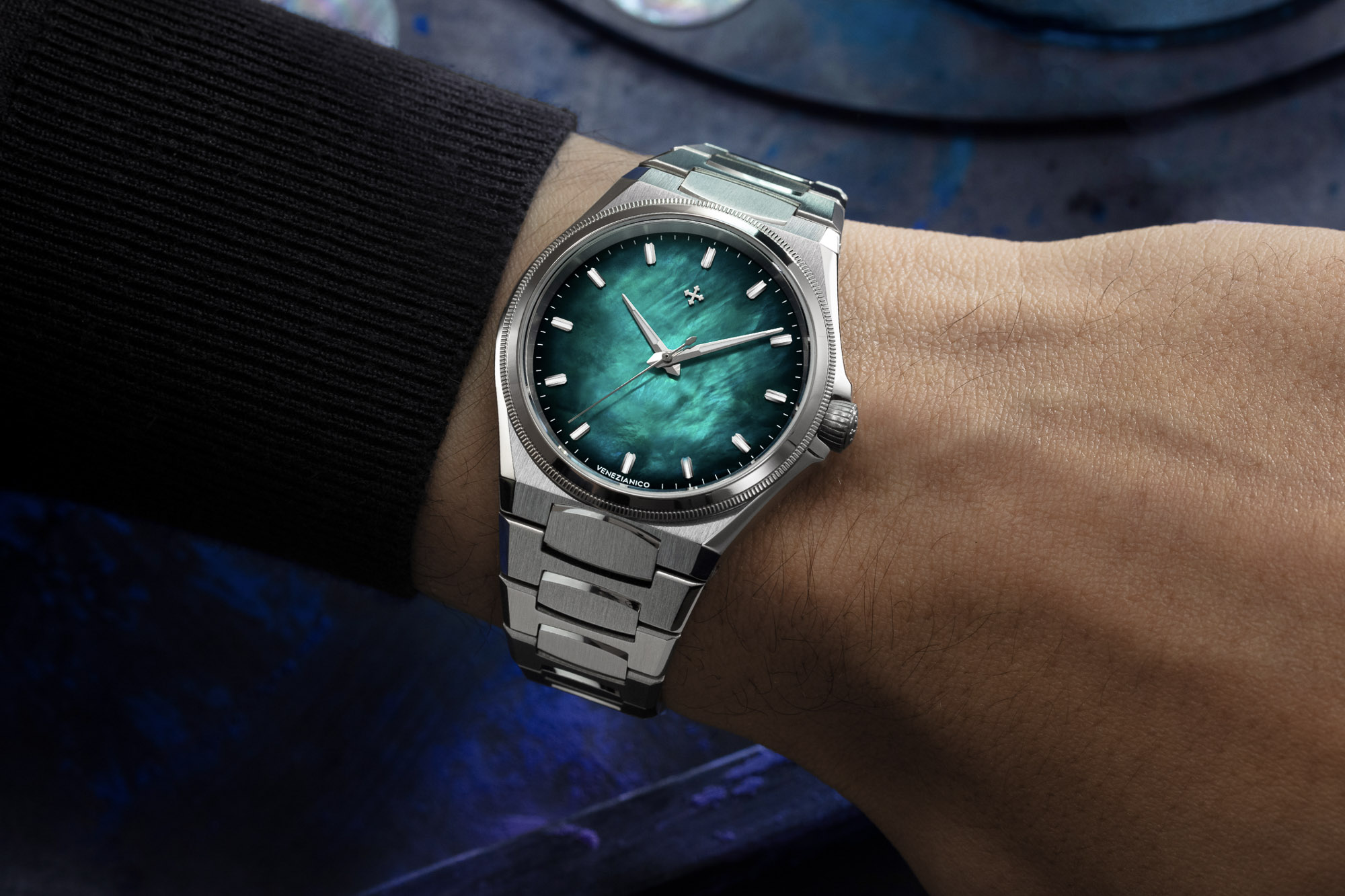 The Venezianico Arsenale 37 represents a significant expansion of the collection, offering a more compact and vintage-proportioned alternative to the original 40mm case. Designed for enthusiasts who prefer a refined, low-profile fit, this new size option maintains the industrial shipyard-inspired aesthetic while introducing unique natural Mother of Pearl dials. Available in three distinct fumé variants—green (6121501C), blue (6121502C), and purple (6121503C)—each dial is crafted from iridescent blanks and thinned to enhance the natural light play of the organic material.