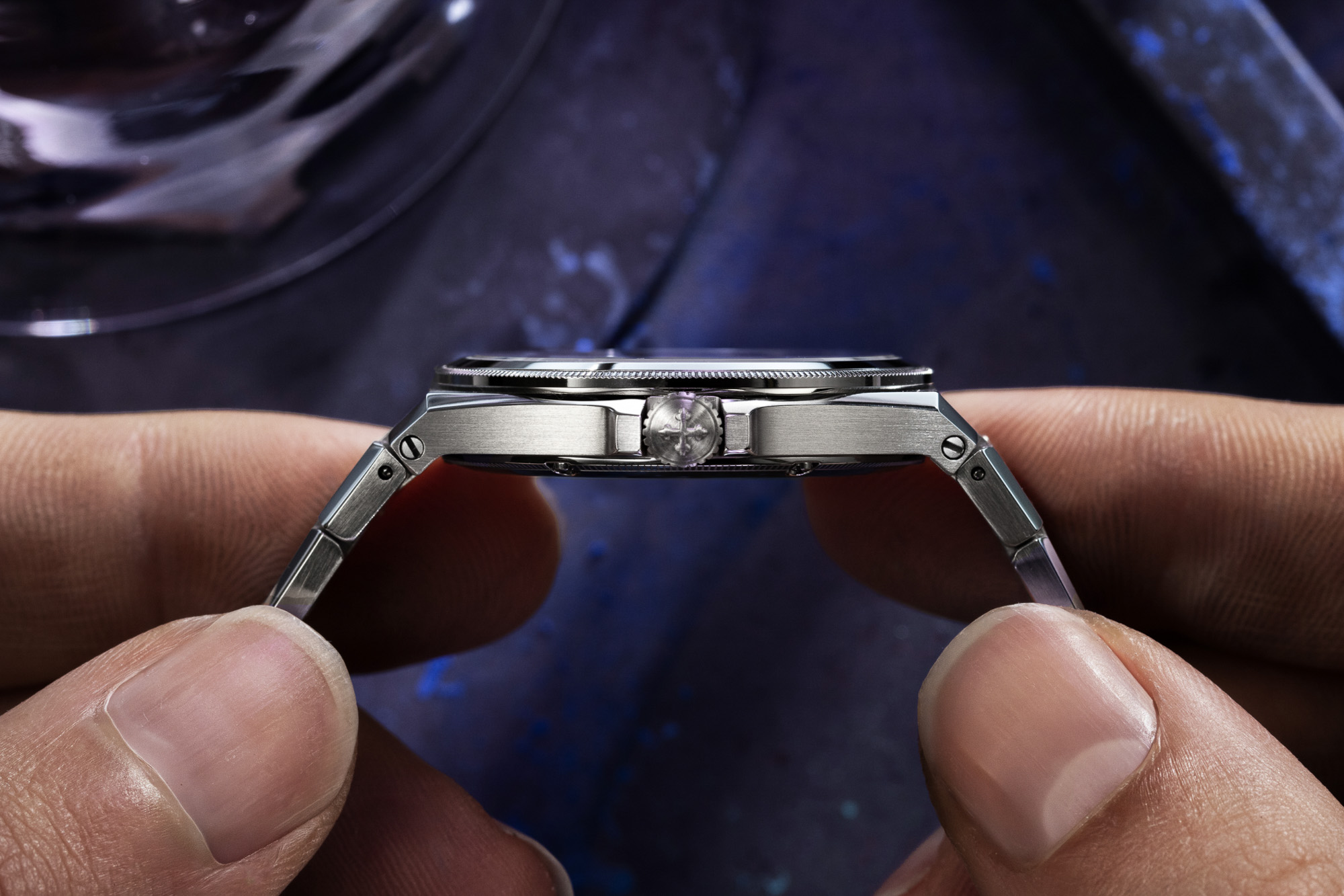 In contrast to the larger 40mm version, the Arsenale 37 is defined by a 37mm case diameter and an ultra-thin 9mm total thickness, including the sapphire crystal. The reduced 41.10mm lug-to-lug distance allows the watch to sit naturally across a wider variety of wrist sizes without overhang, a common challenge for integrated bracelet designs. The integrated Canova Concept™ bracelet features a mix of satin-finished links and polished details, flowing seamlessly from the 316L stainless steel case to create a harmonious and ergonomic silhouette.