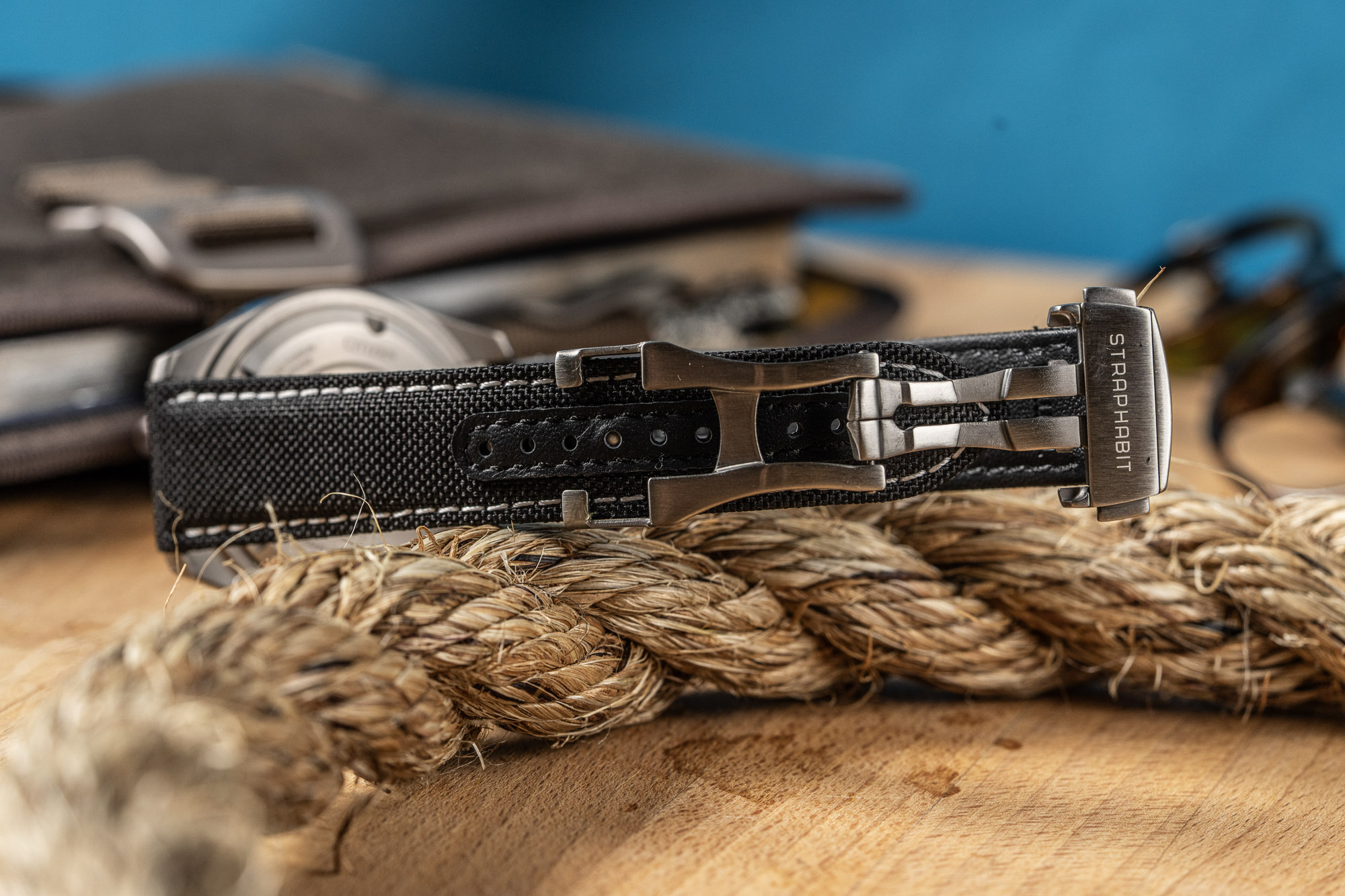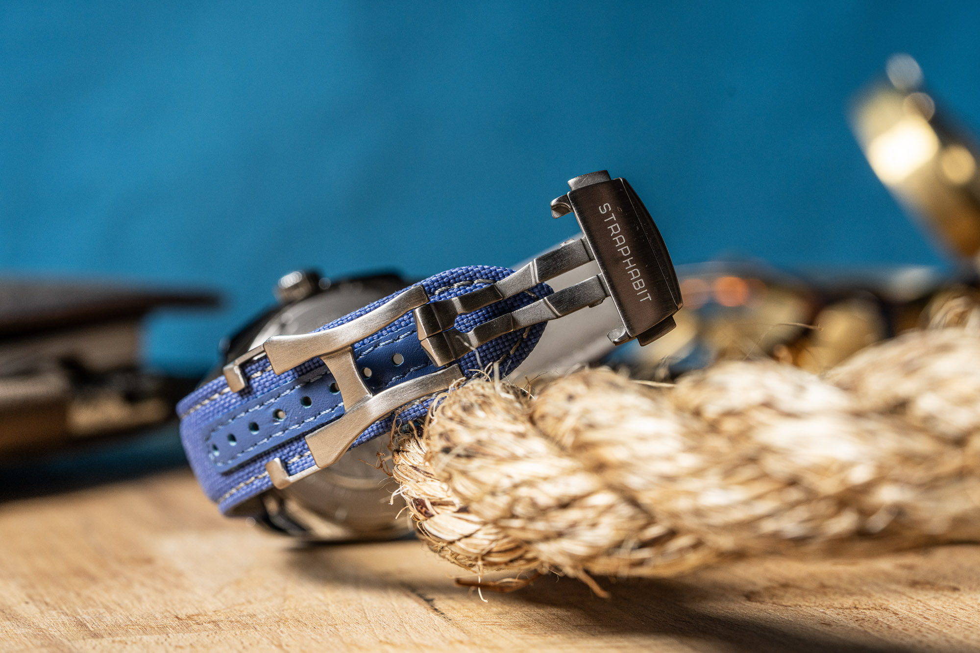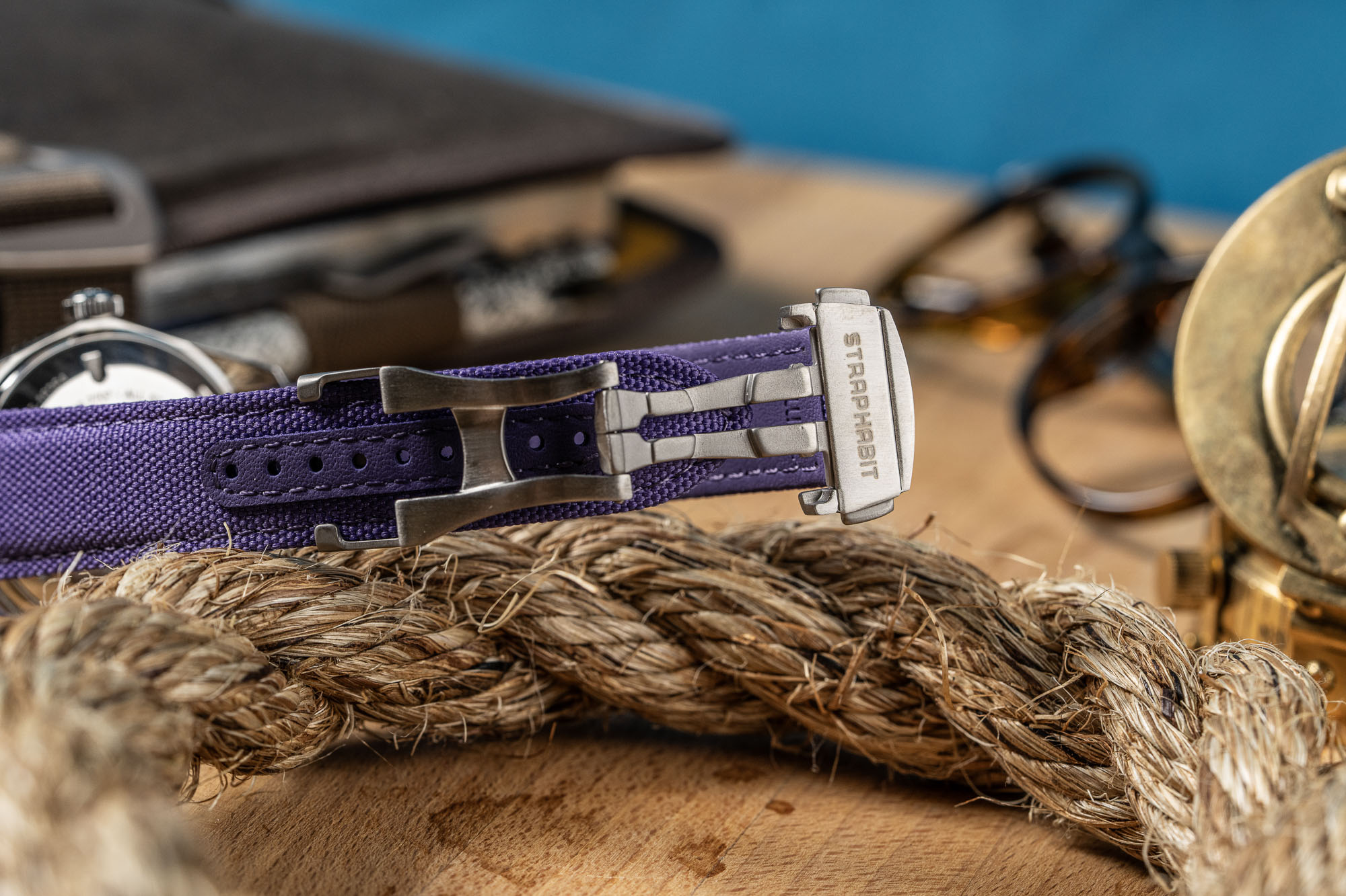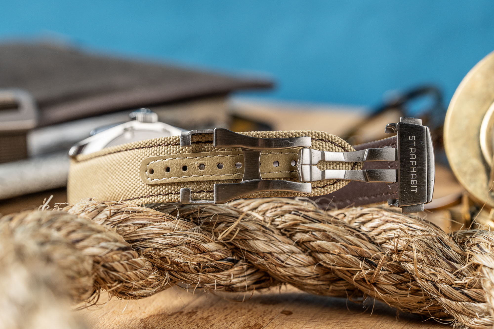 The StrapHabit Deployant Sailcloth Watch Strap combines a rugged, recycled PET sailcloth outer with a moisture-resistant synthetic leather lining for a high-performance, tool-watch aesthetic. Its standout "no tail" design hides excess length underneath the strap against the wrist, removing the need for external keepers and creating a streamlined, uncluttered profile that mimics high-end luxury deployments.