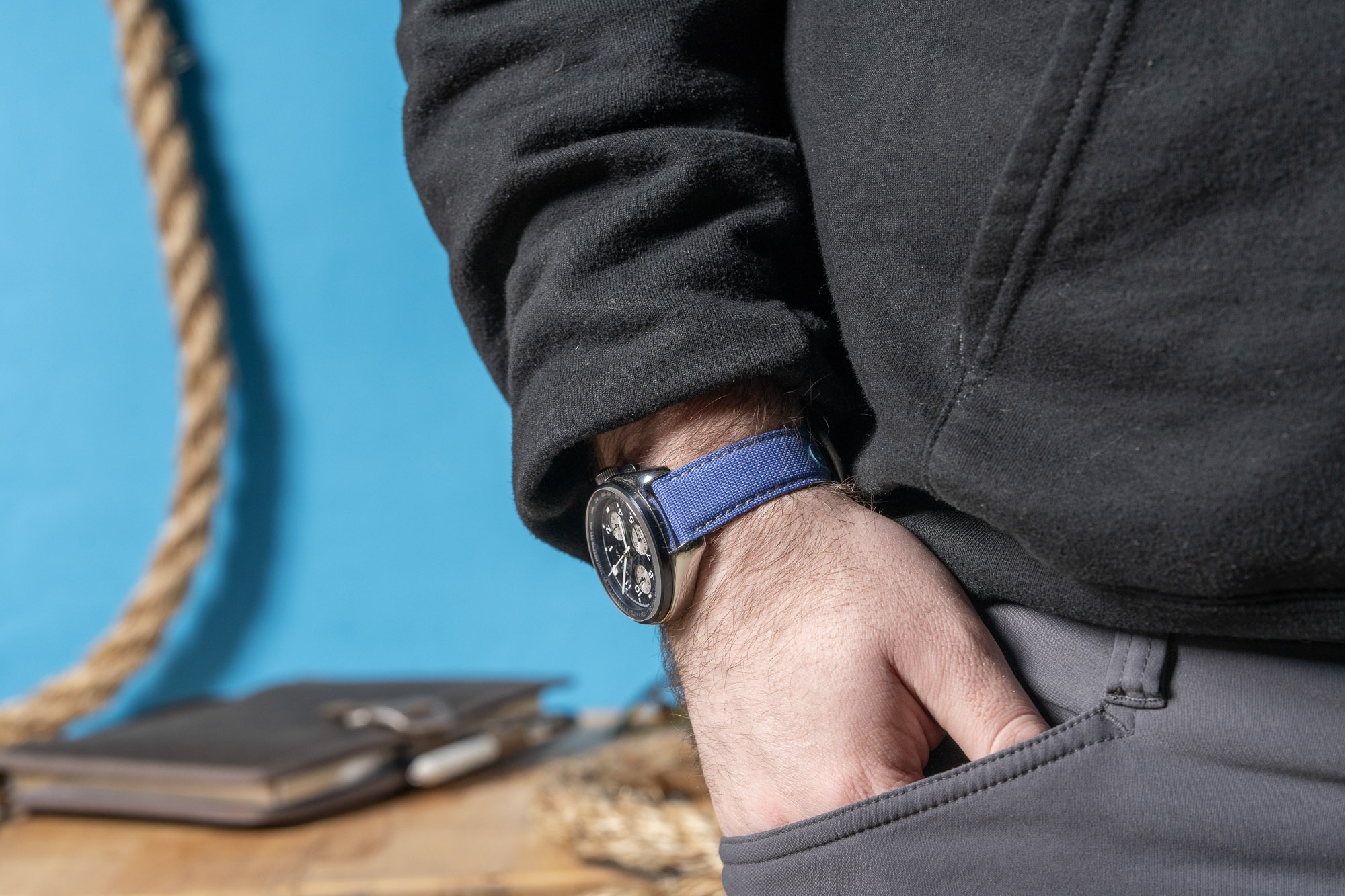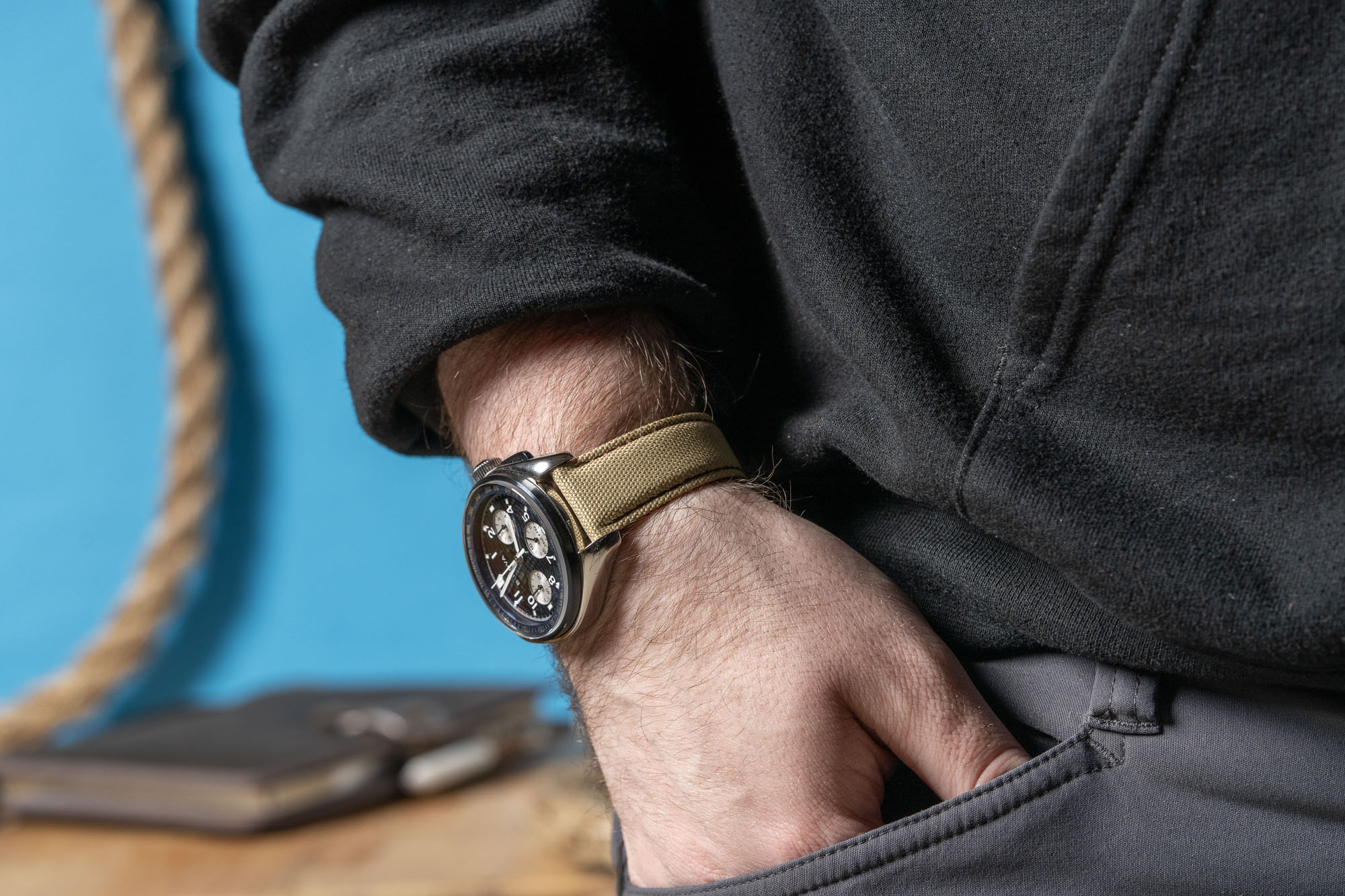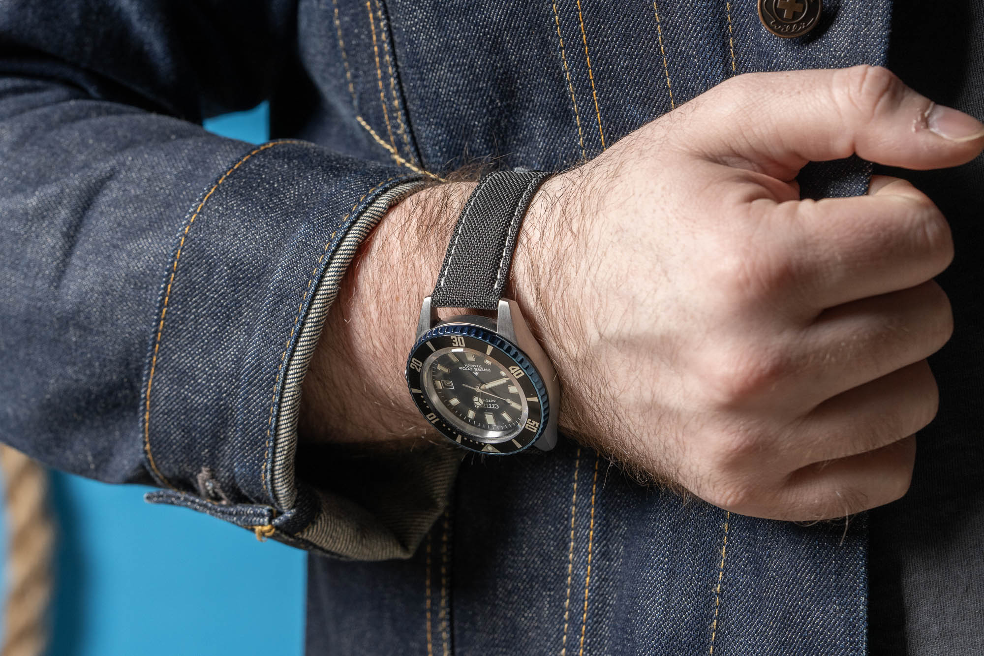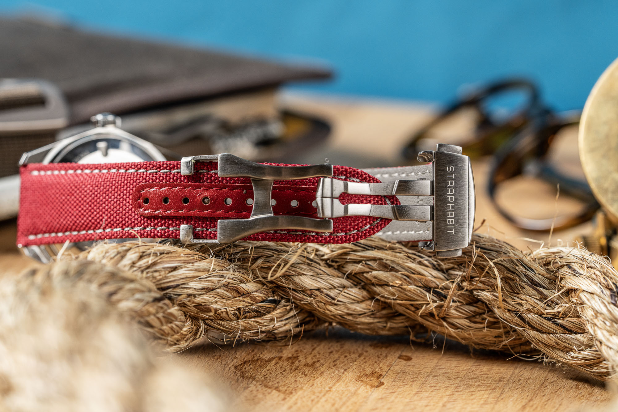 The StrapHabit Deployant Sailcloth Watch Strap combines a rugged, recycled PET sailcloth outer with a moisture-resistant synthetic leather lining for a high-performance, tool-watch aesthetic. Its standout "no tail" design hides excess length underneath the strap against the wrist, removing the need for external keepers and creating a streamlined, uncluttered profile that mimics high-end luxury deployments.