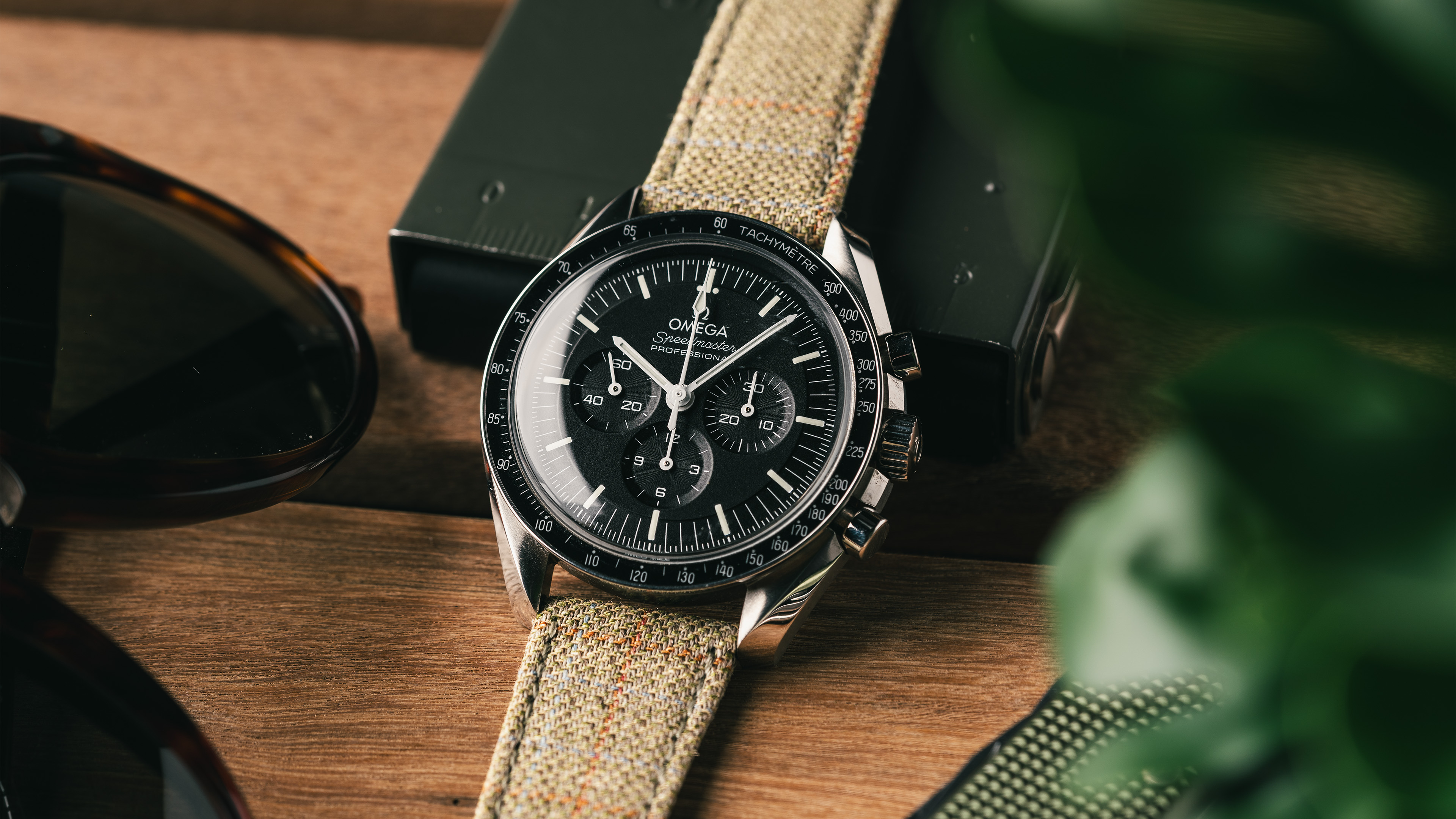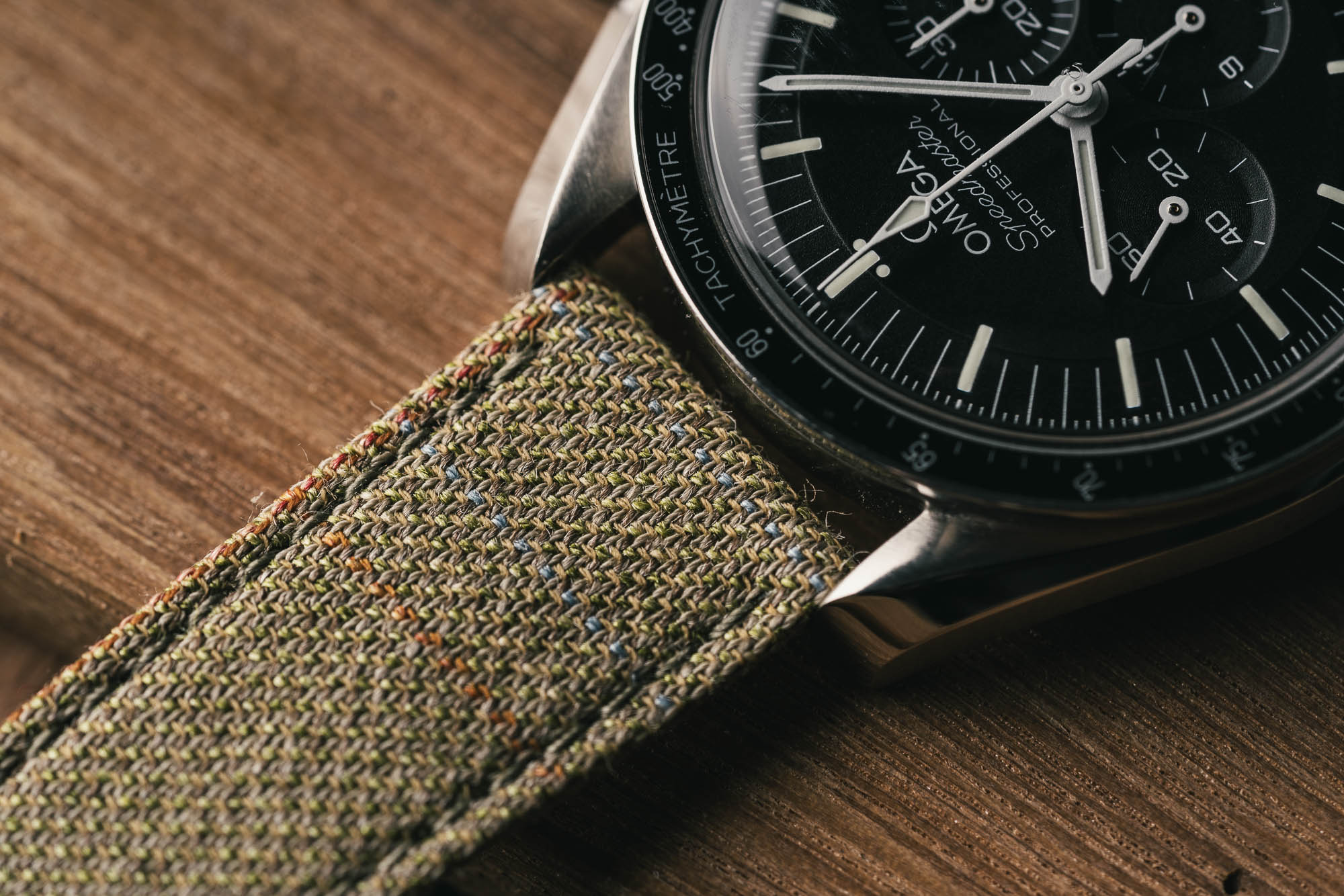 The topside is woven from deadstock Loro Piana® fabric  made from wool and silk, delivering a refined texture and soft sheen that sets it apart from standard straps. Against the wrist, a nubuck leather lining provides comfort, structure, and durability. This thoughtful pairing creates a strap that feels luxurious yet ready for daily wear, whether you’re dressing up a vintage chronograph or toning down a sleek modern diver.