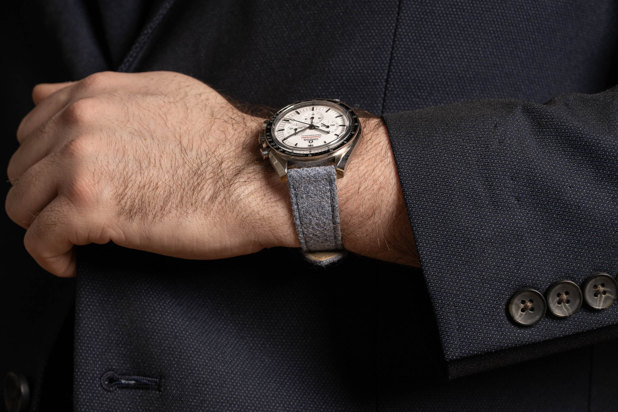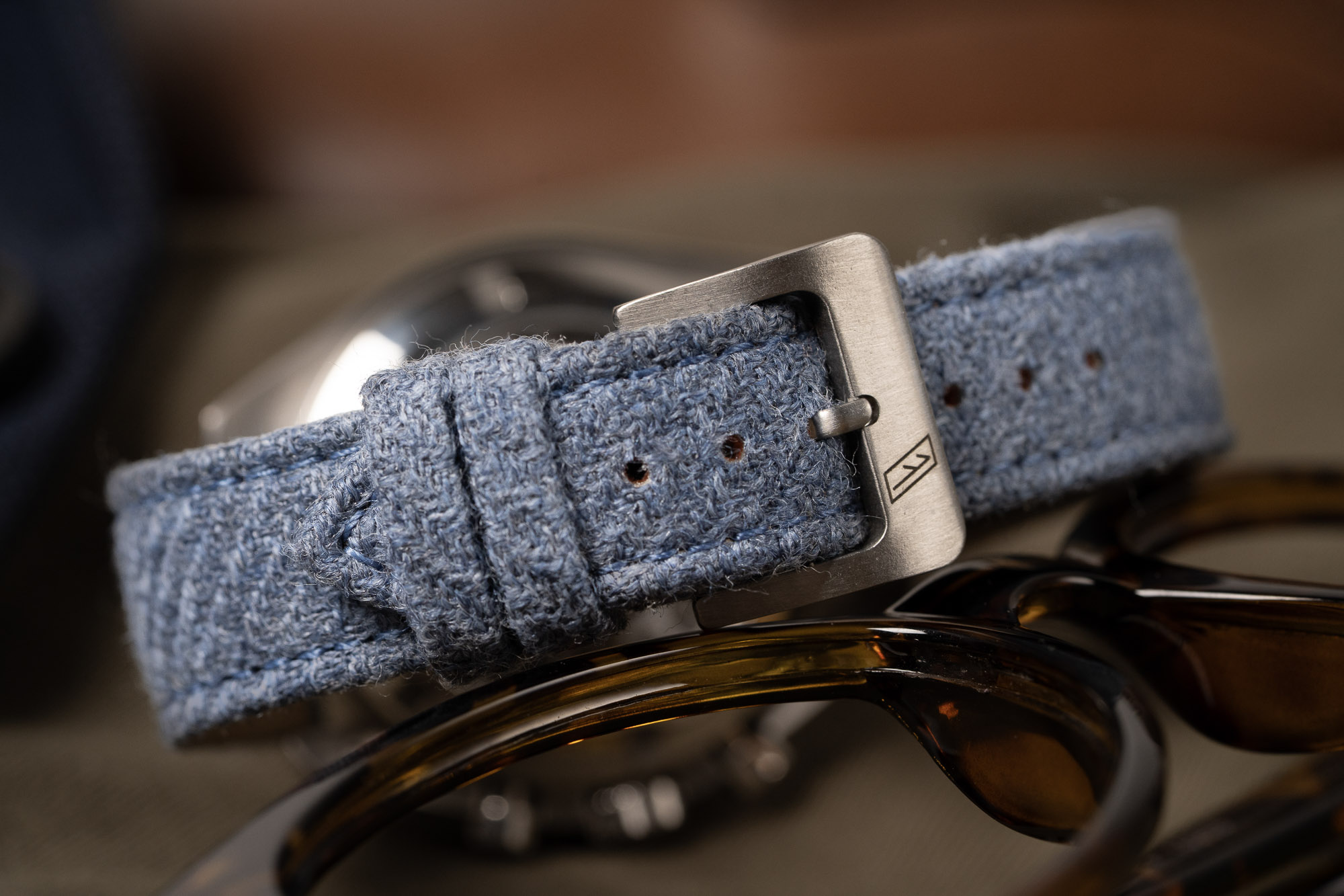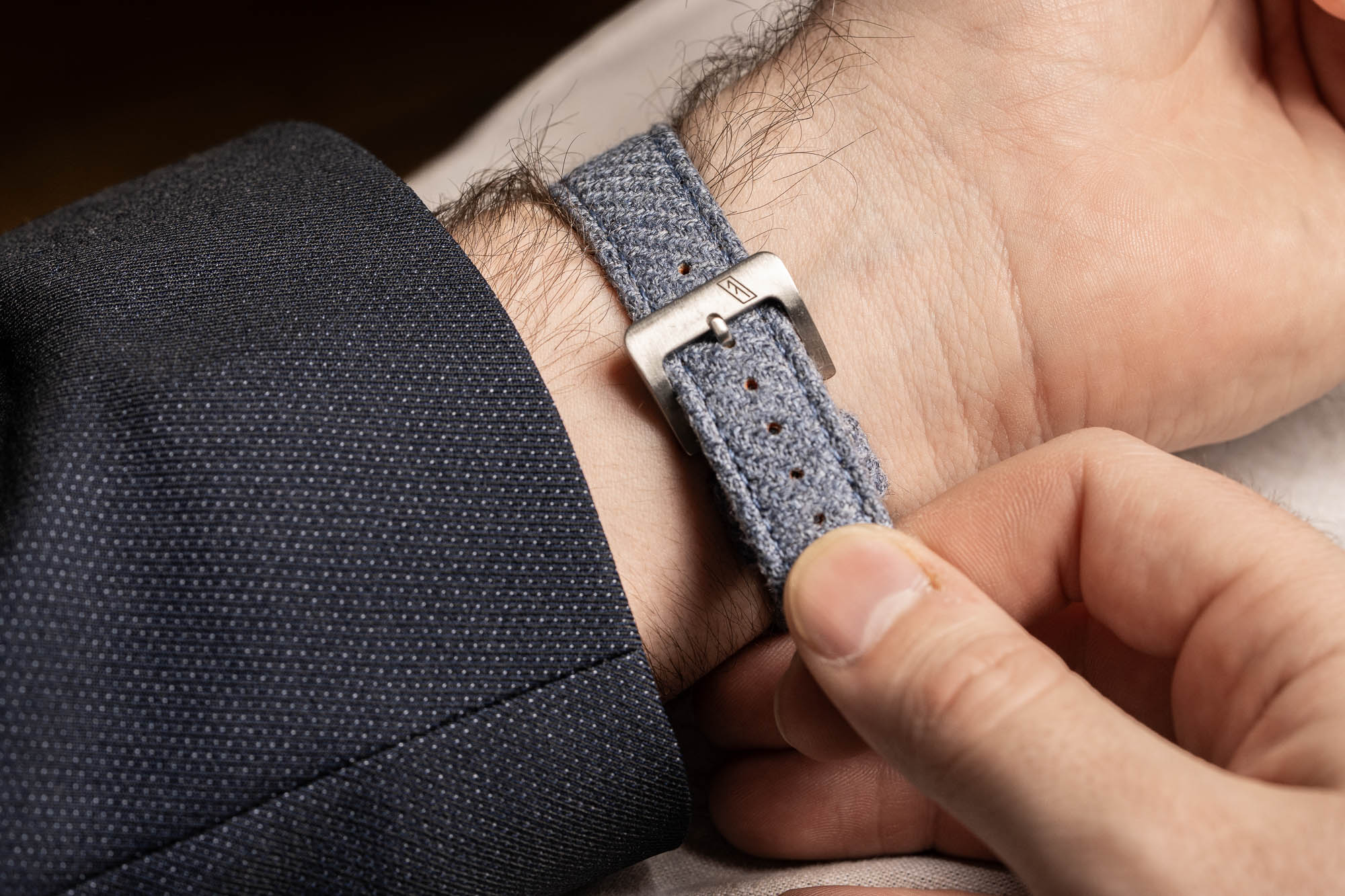 The strap’s topside is crafted from deadstock Loro Piana® fabric made from wool and silk, offering a soft texture and a sophisticated look rarely seen in watch straps. Beneath, a nubuck leather lining provides durability and a comfortable fit against the skin. Together, these premium materials deliver both resilience and refinement, ensuring the Newport feels as good as it looks. Finishing details include quick-release spring bars, remborded (rolled-edge) construction and hand-stitching that balance utility with craftsmanship.