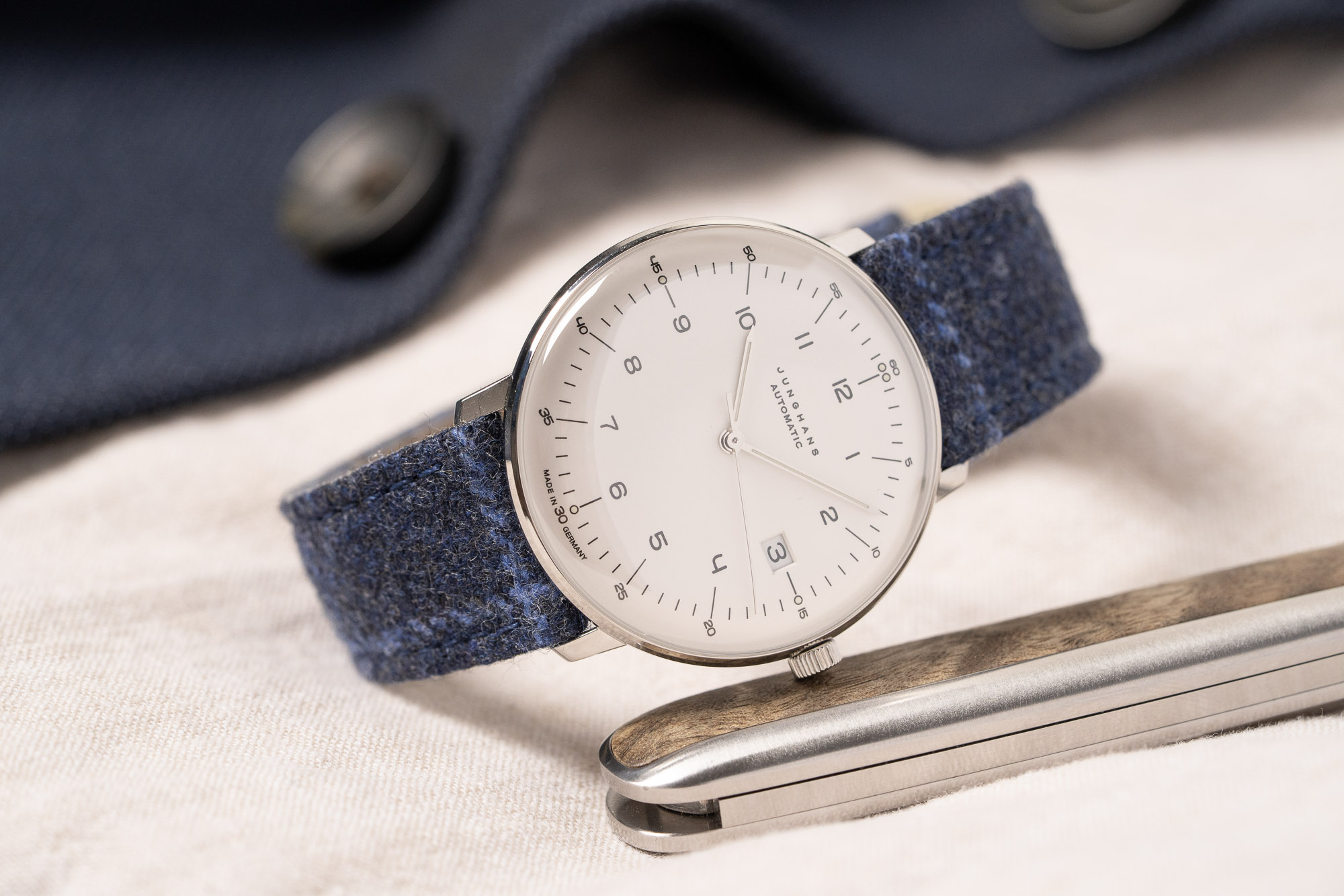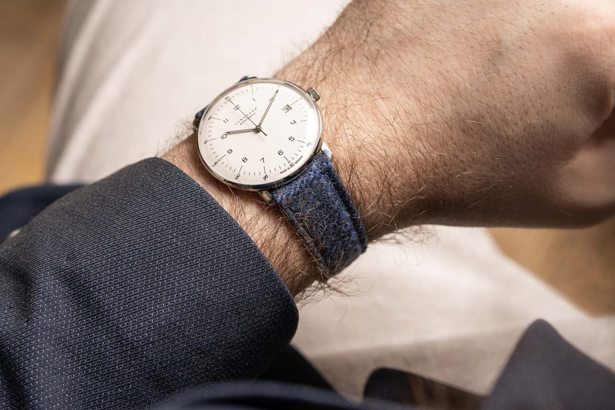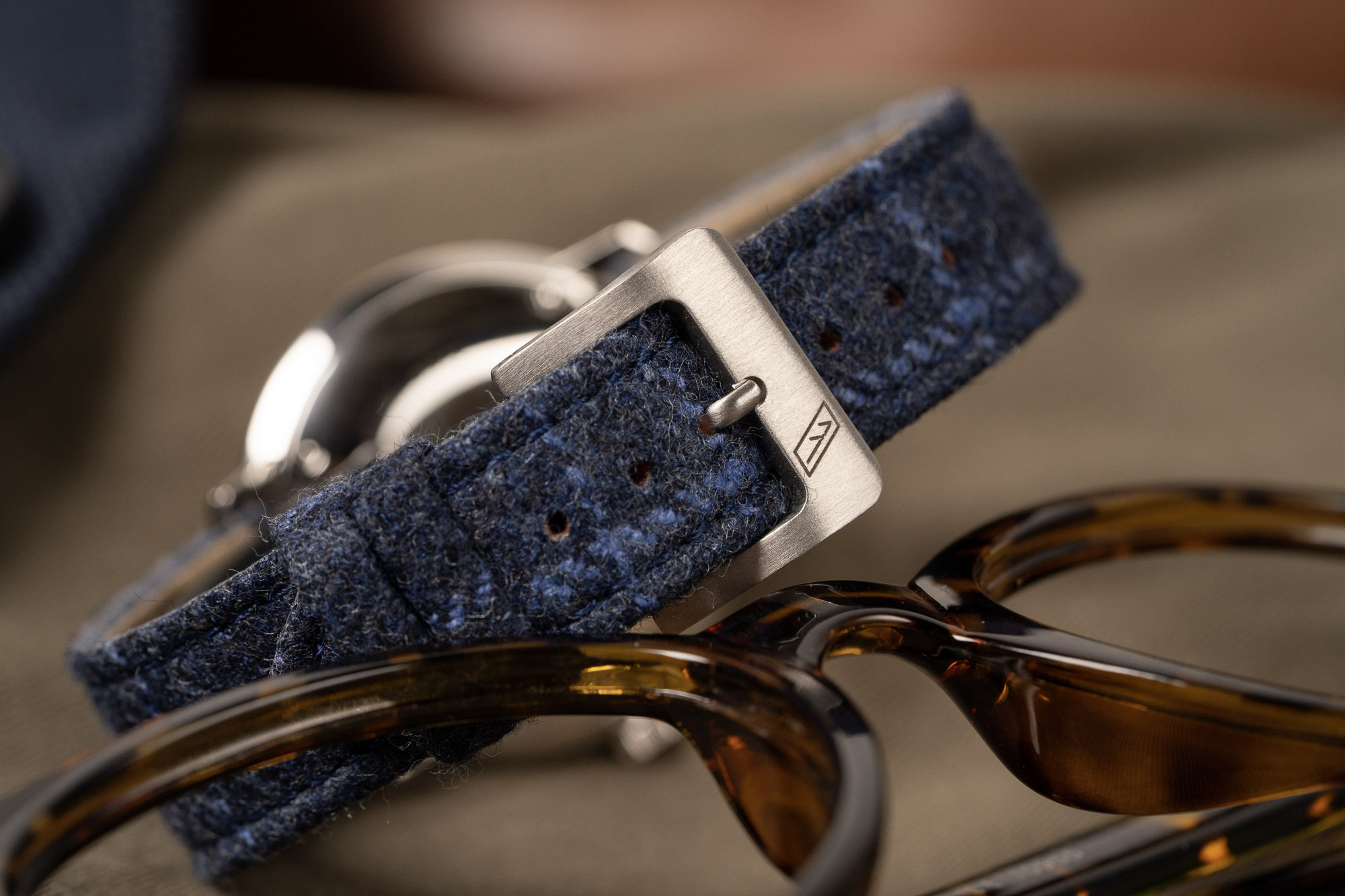 The topside is made from deadstock Loro Piana® fabric  made from wool and silk, giving the strap a soft hand and a subtle luster that shifts beautifully in the light. Underneath, a nubuck leather lining ensures lasting durability and a comfortable feel against the skin. The result is a strap that is equal parts distinctive, practical, and refined—an ideal complement to everything from a vintage chronograph to a contemporary field watch.
