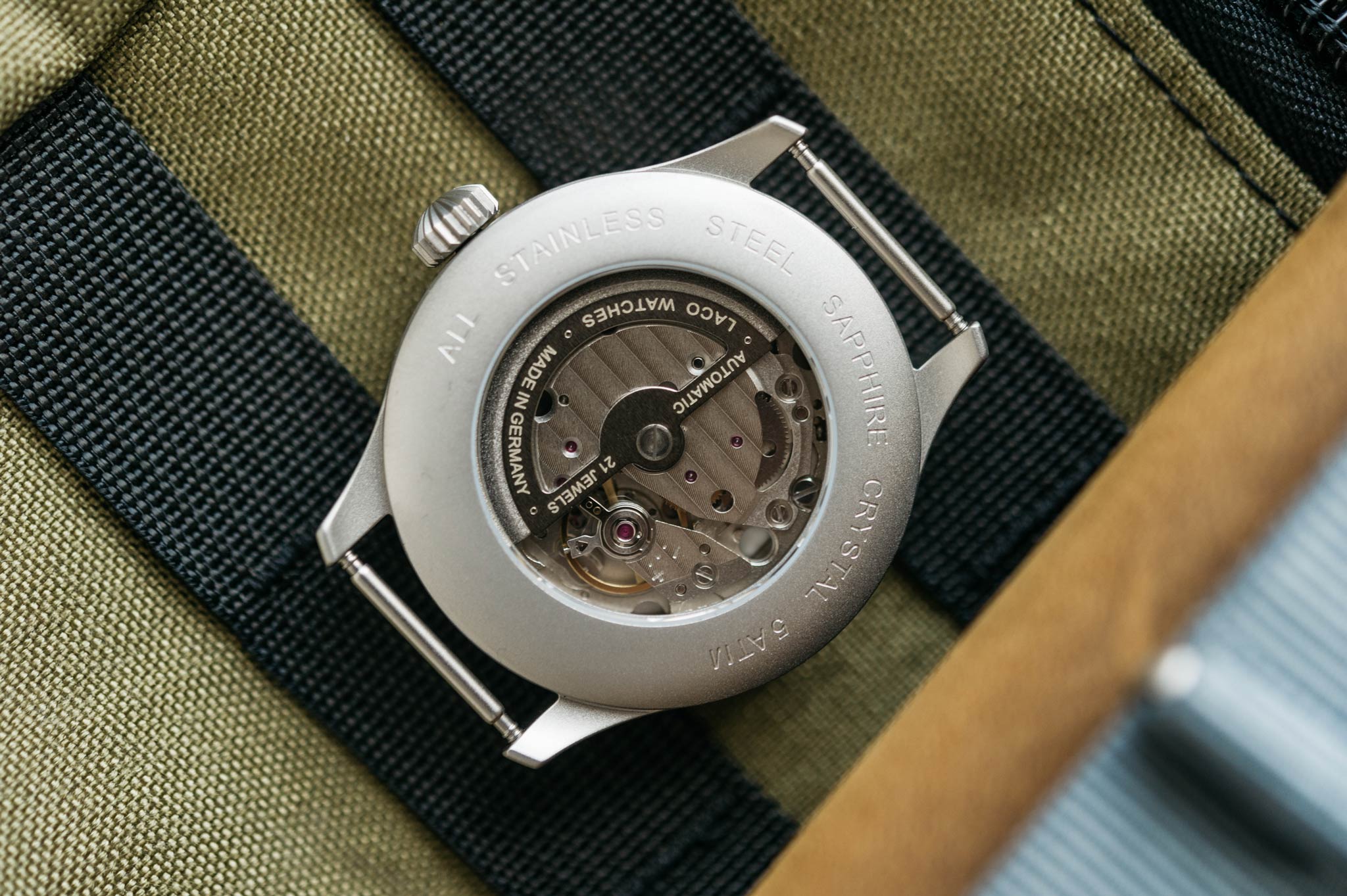 In the 1940's, only a handful of companies were selected to manufacture pilots watches for the German Airforce. Laco was one of these companies, and today they bring that heritage to their watches. You'll notice that their "original" series all feature "FL23883" engraved into the case, on the side opposite from the crown. This number indicates the watch was made to military specification for pilots.