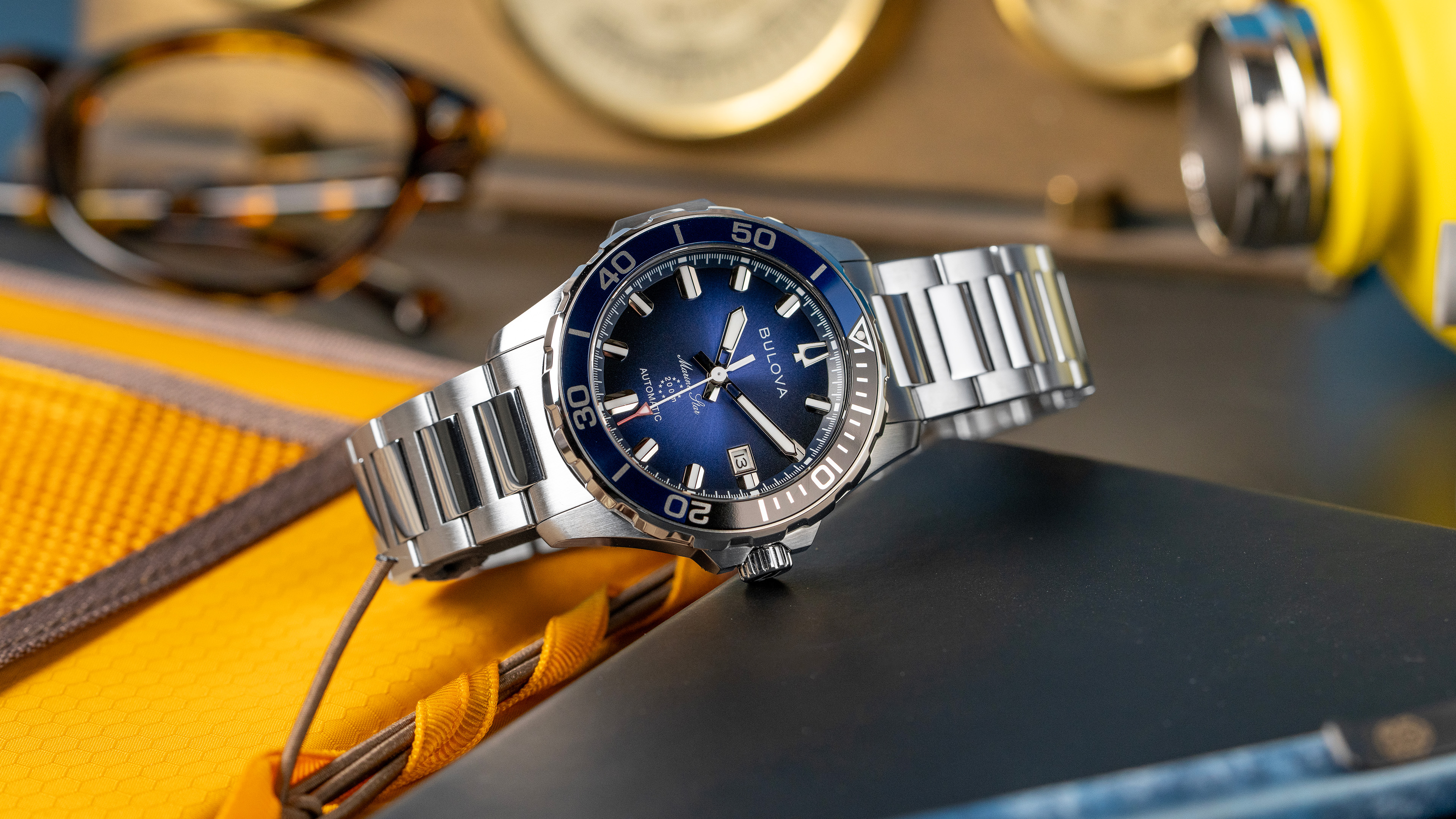 The Bulova Marine Star "Series B" Automatic collection represents a refined evolution of one of Bulova’s most enduring sport lines, blending maritime utility with a contemporary aesthetic. This redesign focuses on a versatile 41mm silhouette that bridges the gap between a rugged tool watch and a polished daily wearer. The collection is available in two primary configurations: the 98B466, featuring a sunray blue-to-black gradient dial on a stainless steel H-link bracelet, and the 98B465, which pairs a silver-to-black gradient dial with a high-performance black HNBR rubber strap.