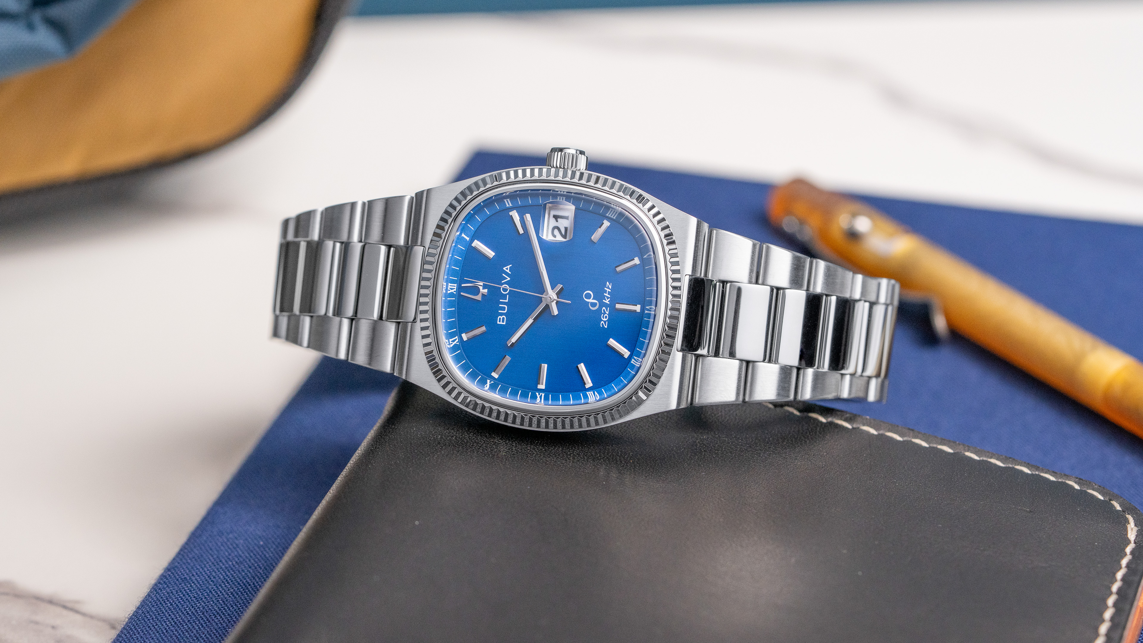 Internally, the watch is powered by Bulova’s 262kHz High-Precision Quartz movement. This proprietary technology operates at a frequency eight times higher than standard quartz, resulting in accuracy within seconds per year and a signature continuous sweeping seconds hand. The build is completed with a screw-in caseback and a push-button deployment clasp, offering 30 meters of water resistance for daily use.