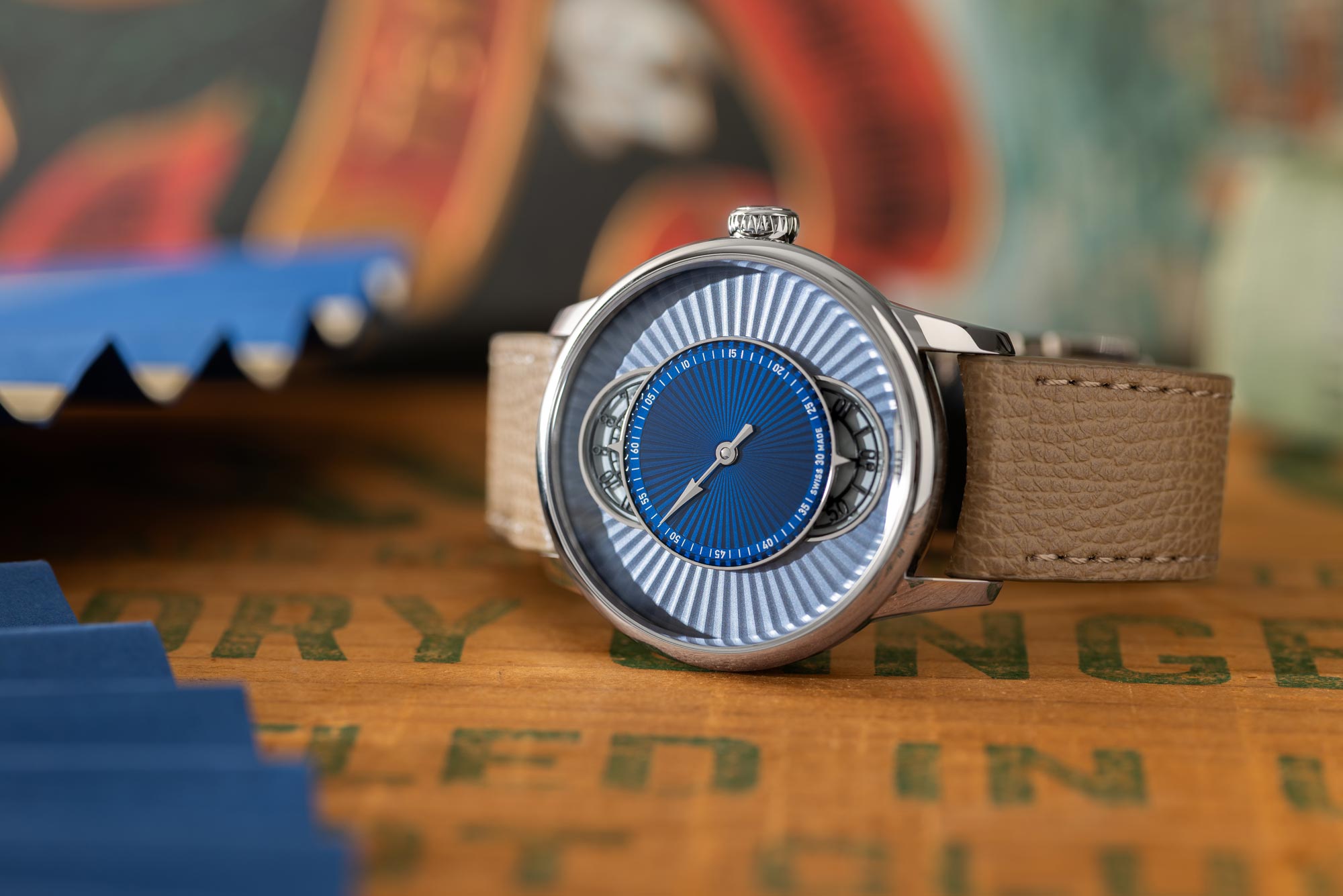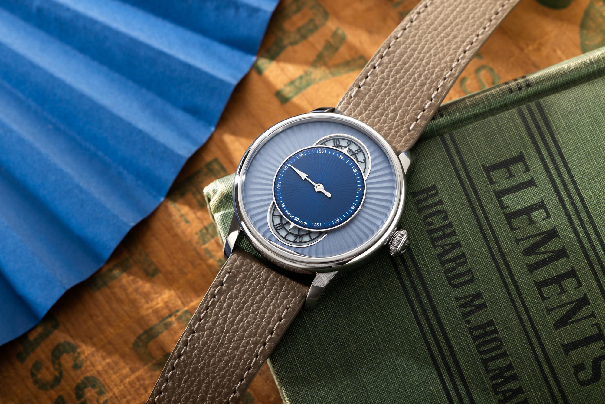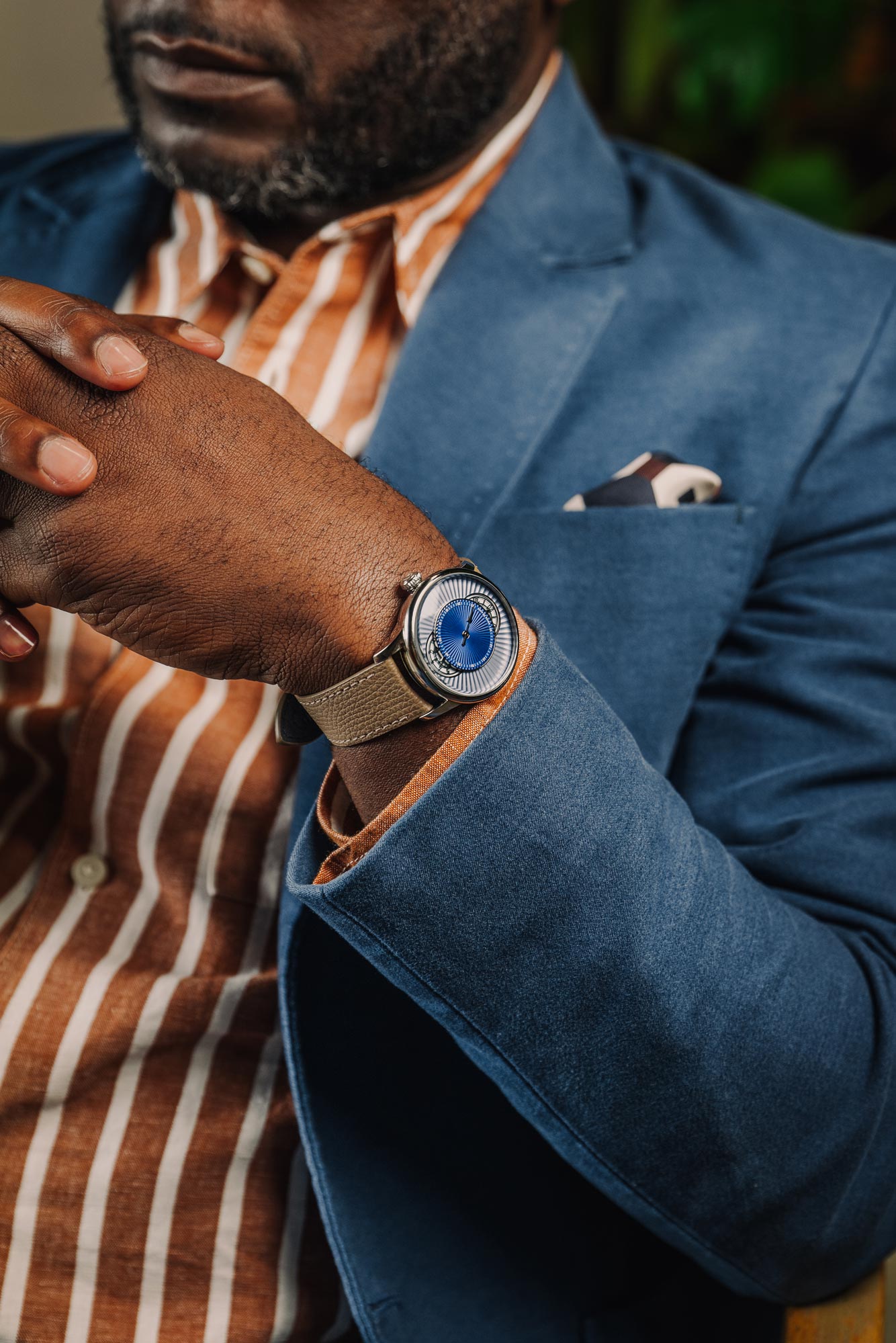 A 20mm pebbled taupe leather strap complements the tonal blues without distraction. Inside is the Swiss-made Sellita SW266-1 automatic movement, a 31-jewel caliber with hacking, hand-winding, a 28,800 bph frequency, and the signature regulator layout, finished with a customized rotor. Limited to up to 99 pieces, the collaboration embodies a refined blend of artistry, engineering, and individuality.