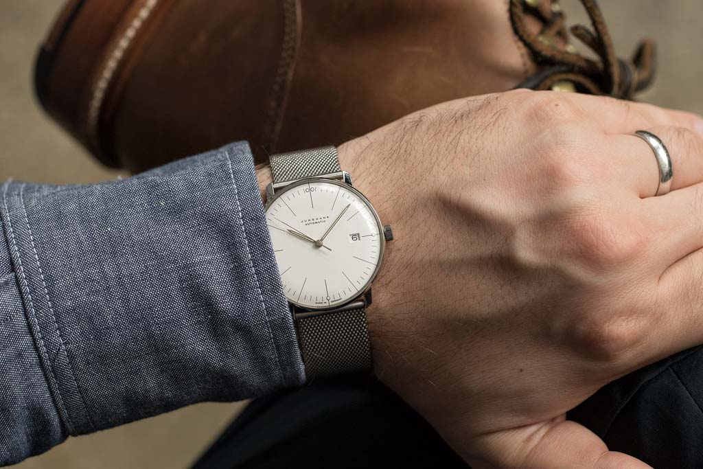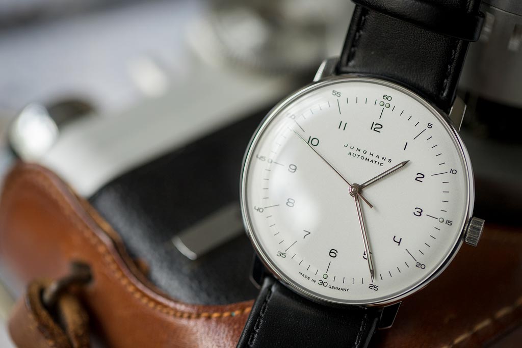 Junghans’ style trends toward sleek minimalism, with a healthy dose of mid-century style to keep things unique and interesting. This shines through especially well in their Meister Pilot series, with a one of a kind scalloped rotating bezel based on the pilot’s chronographs Junghans supplied to the newly reforming German air force, in the 1950s. The real star of the show for Junghans, however, is the Max Bill series, named after the eponymous Bauhaus designer.