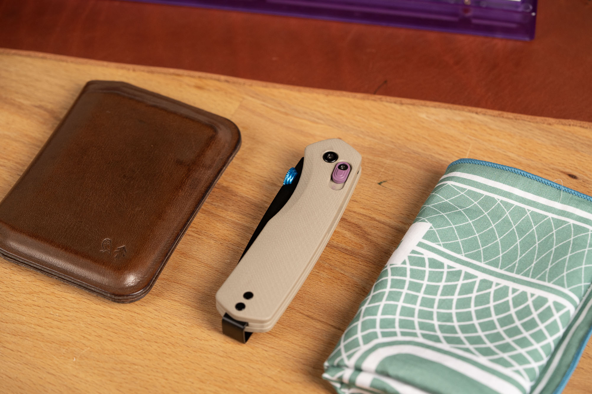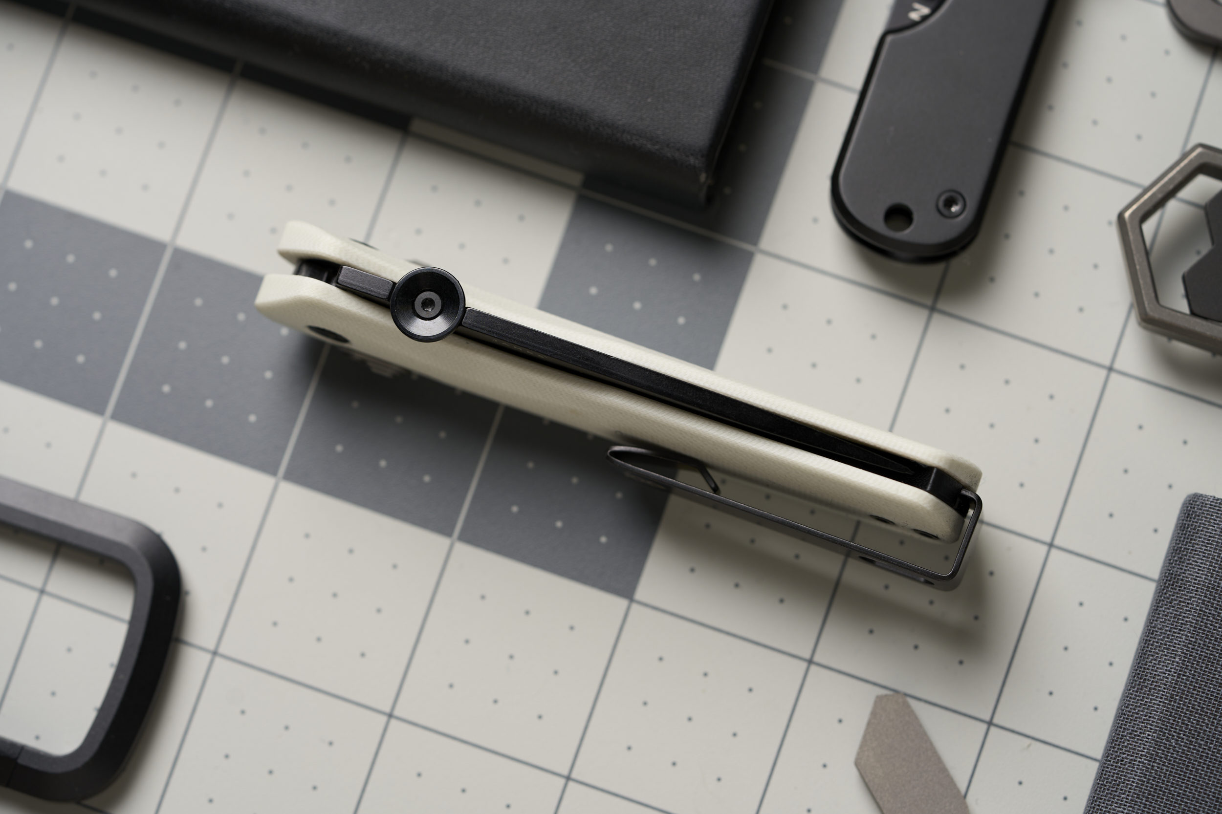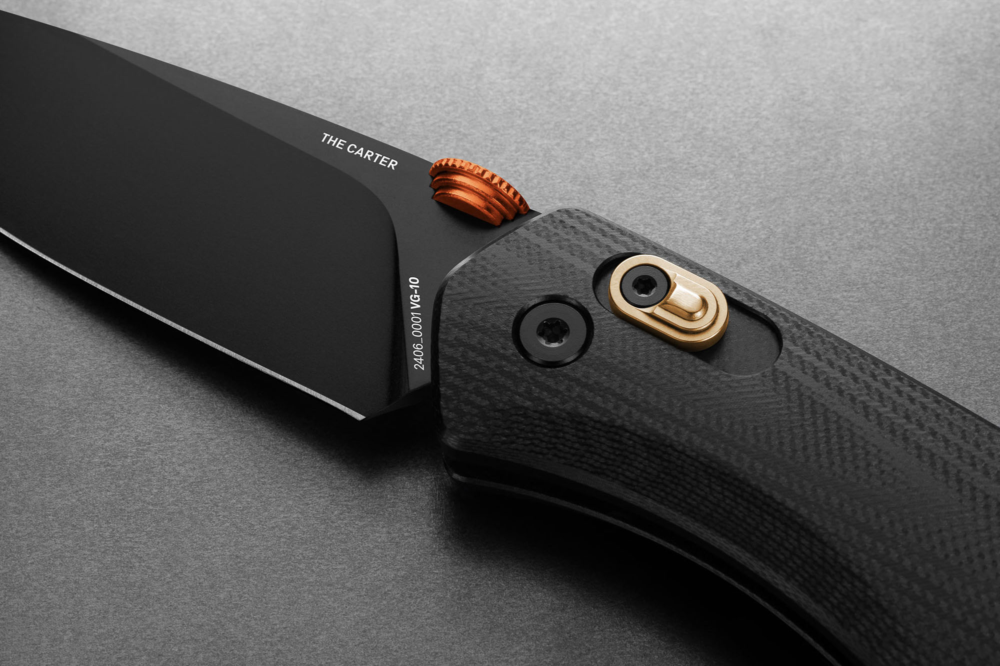 Constructed of corrosion resistant VG-10 steel, the 2.8” drop point blade is opened via their signature ambidextrous disk for ease of use. Meanwhile, the machined Micarta or G10 handle features a naturally grippy texture and contours that fit comfortably in your palm. At 3oz and 6.5” when open, the Carter is big enough to handle all sorts of cutting needs, while also fitting into your pocket without issue.