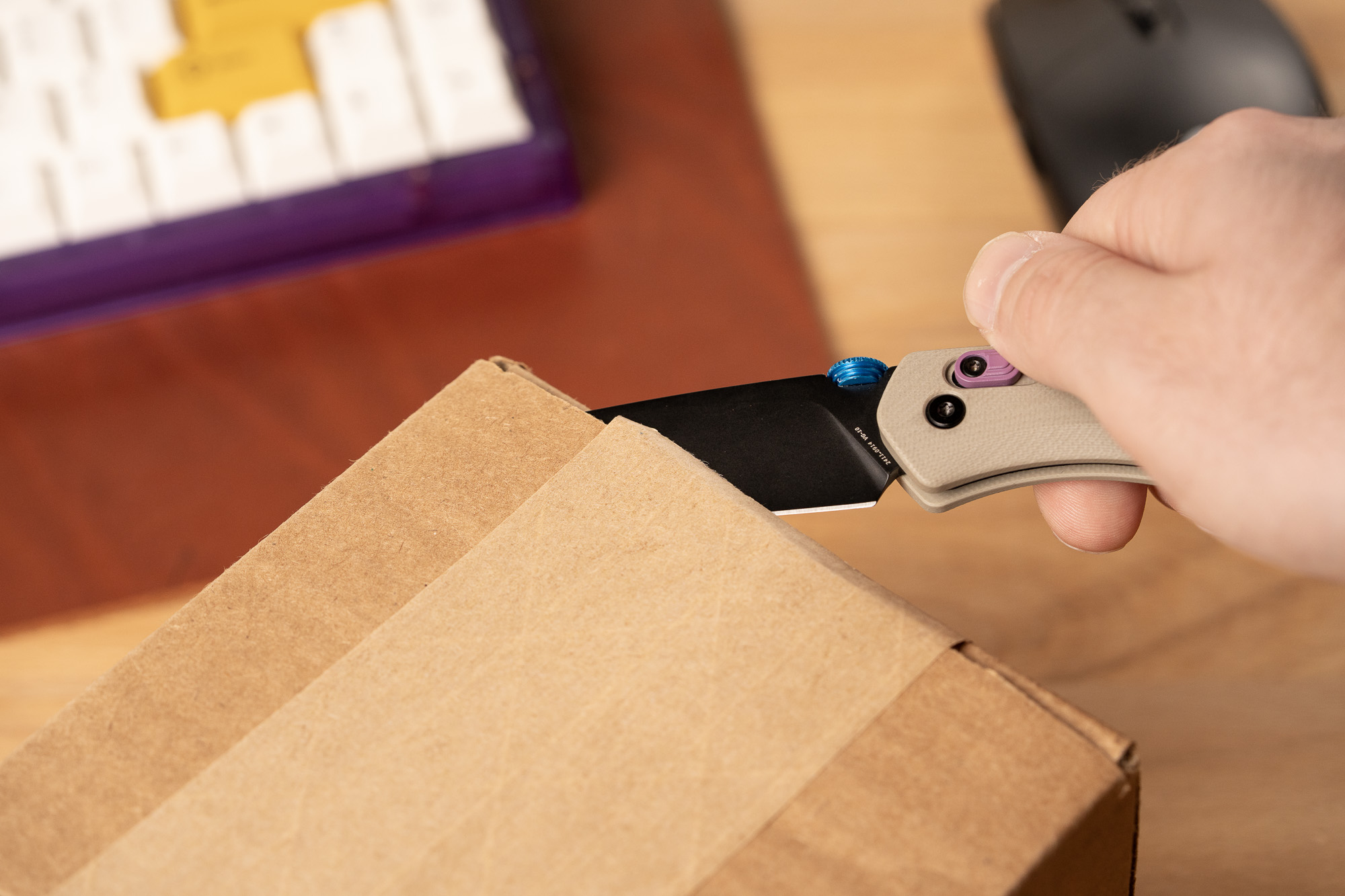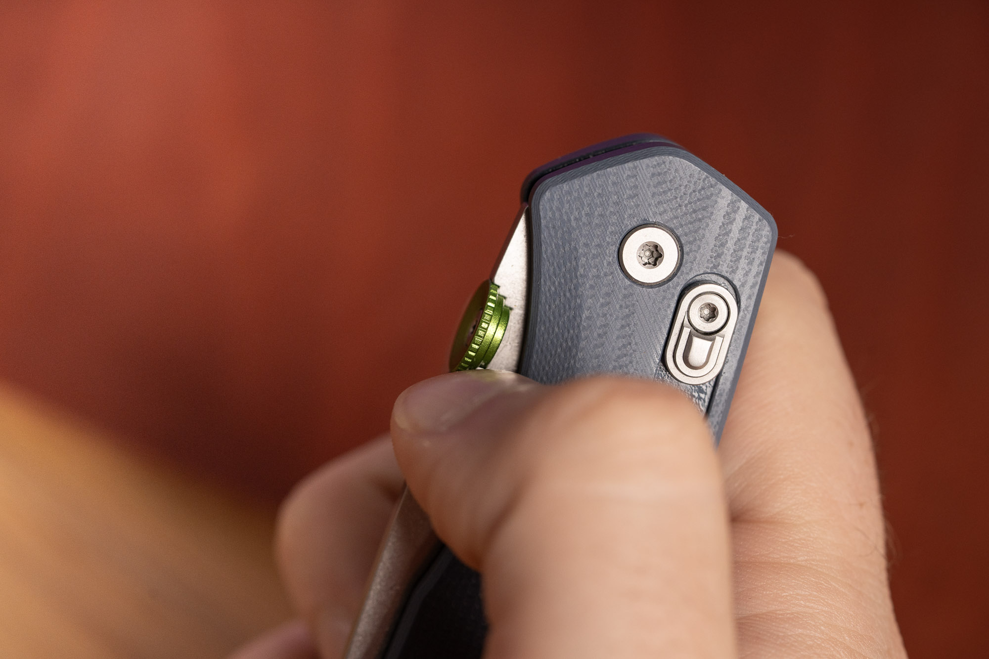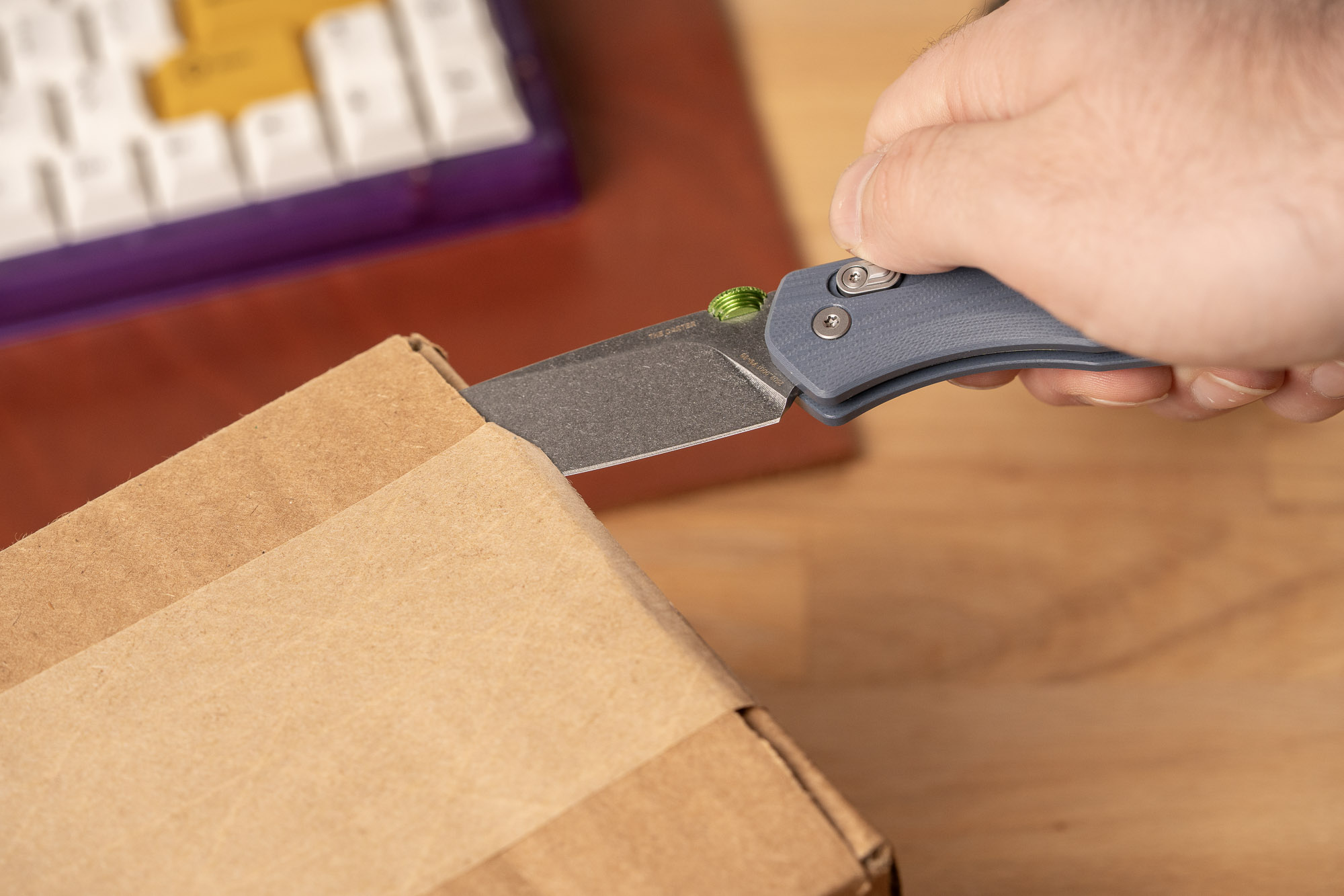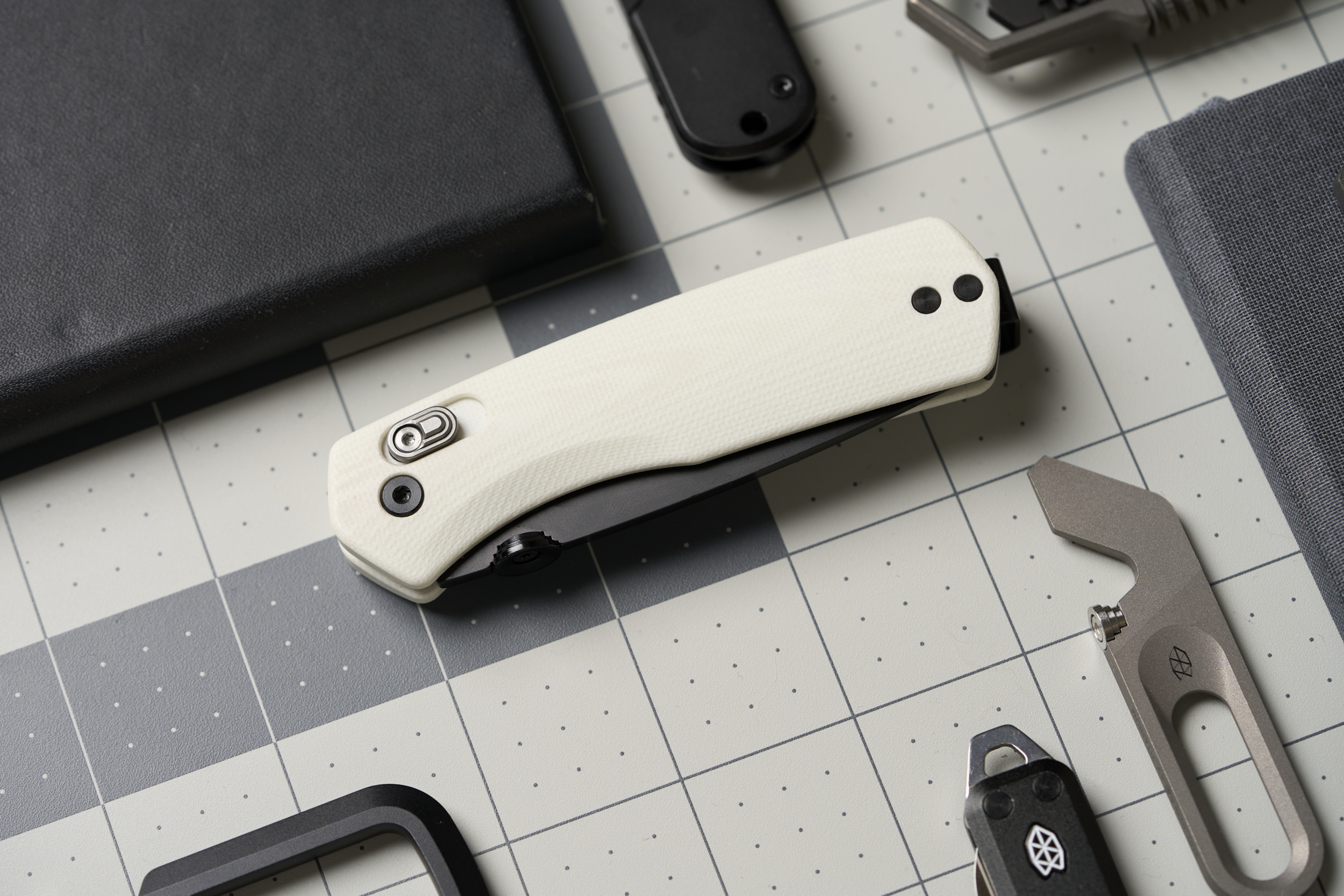 Constructed of corrosion resistant VG-10 steel, the 2.8” drop point blade is opened via their signature ambidextrous disk for ease of use. Meanwhile, the machined Micarta or G10 handle features a naturally grippy texture and contours that fit comfortably in your palm. At 3oz and 6.5” when open, the Carter is big enough to handle all sorts of cutting needs, while also fitting into your pocket without issue.