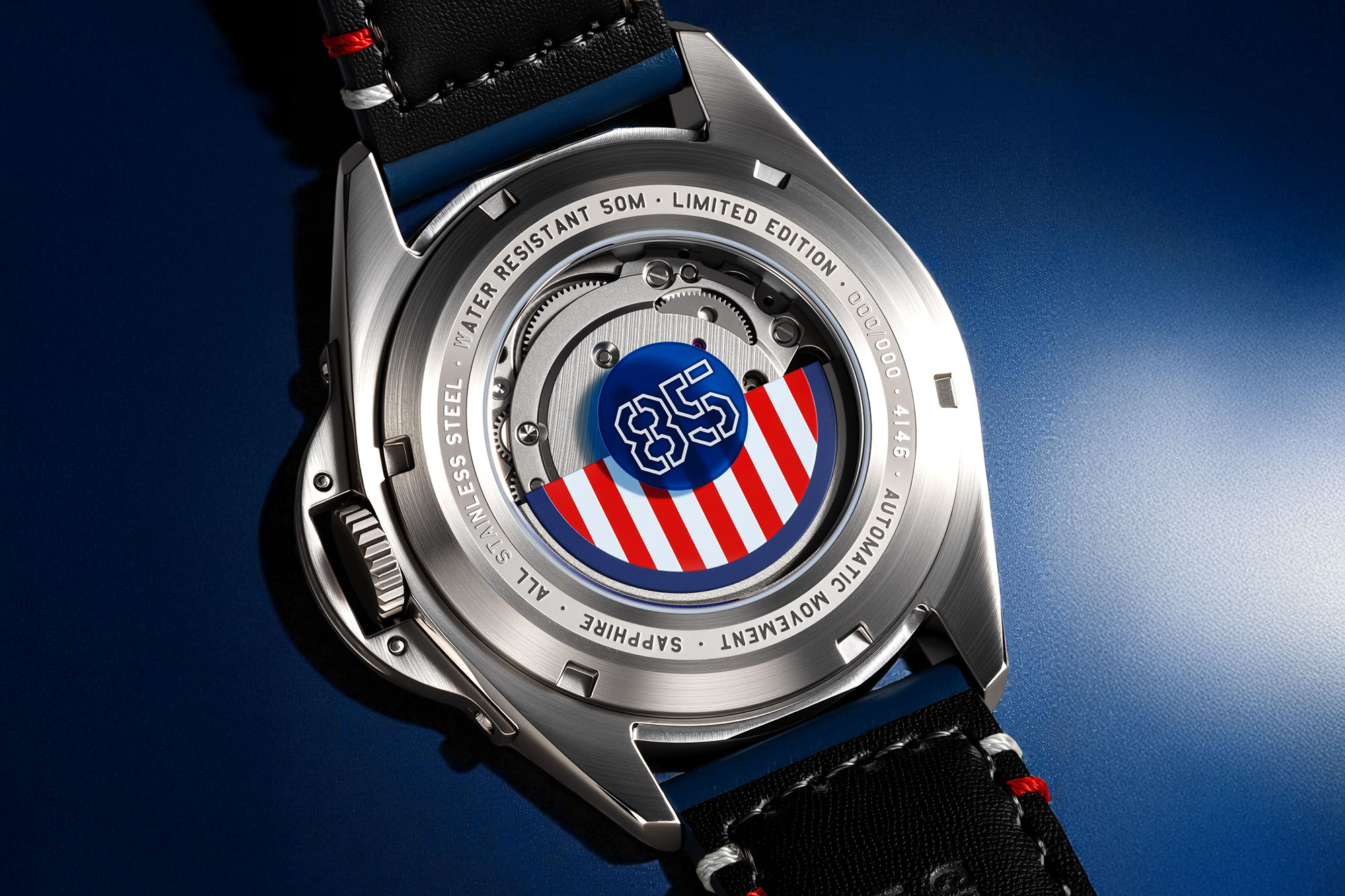 Inside, the Slipstream Silver runs on a Japanese quartz chronograph movement offering reliable timing and date functionality, while the Steel Ascent uses a Japanese automatic movement showcased through both its open-heart aperture and an exhibition caseback featuring a propeller-inspired rotor. Individually numbered, both editions celebrate 85 years of Mustang innovation with aviation-themed artistry and everyday functionality.