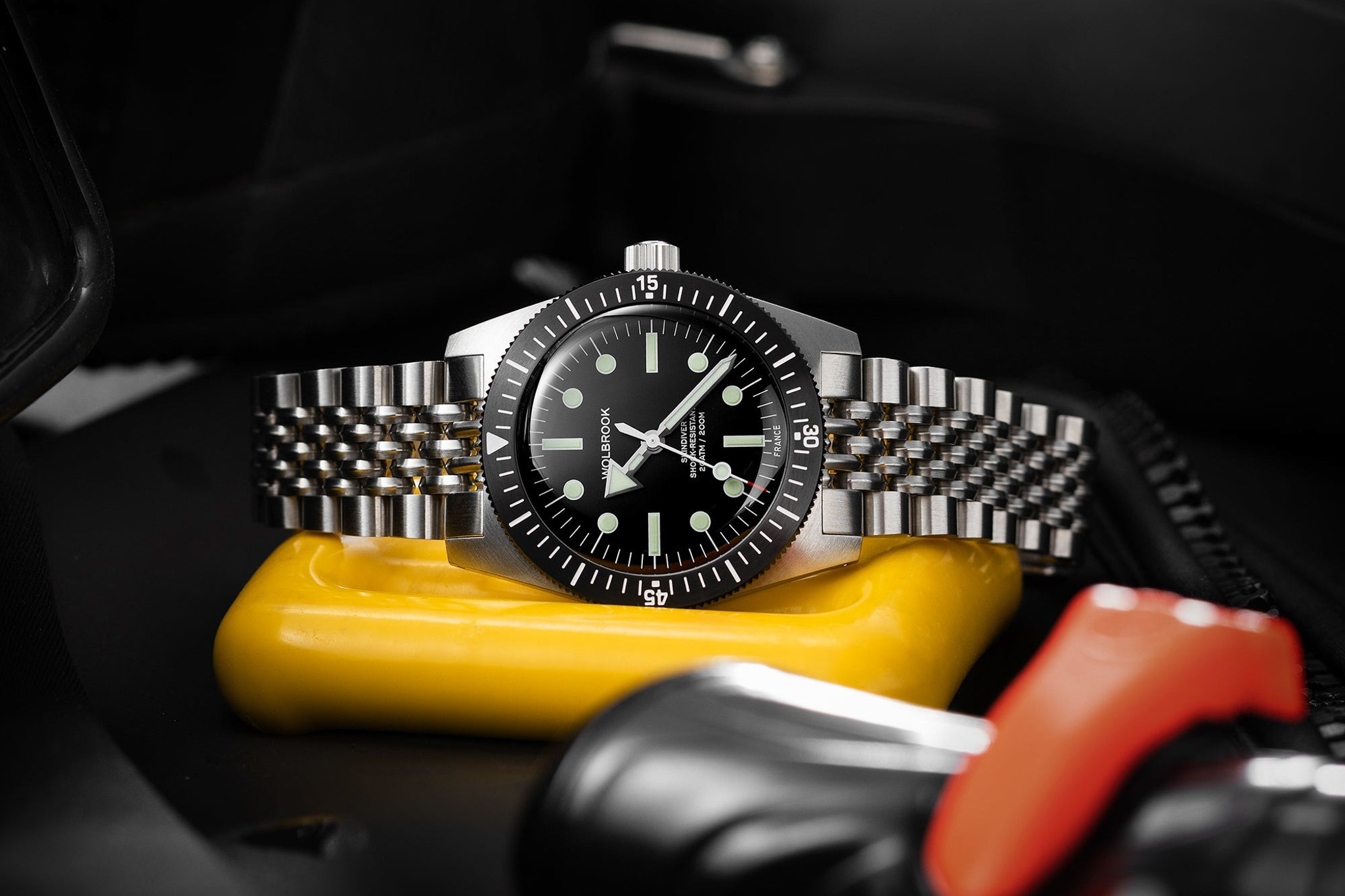 Since 1949, Wolbrook has been engineering mechanical watches and chronographs built for the real world—high-speed flights, deep dives, and everything in between. The iconic Skindiver, a registered trademark since the 1960s, represents the brand's ethos perfectly: durable, approachable tool-watches with legitimate heritage you can actually trace back through decades. After the quartz crisis shuttered operations in the 1970s, Wolbrook slumbered for nearly 50 years until passionate watchmakers resurrected it in 2019—properly, not as some hollow revival. Today's Skindiver collection stays true to those 1960s originals while delivering modern specs: sapphire crystals, Swiss Super-LumiNova, and genuine tool-watch credentials, all assembled in France.