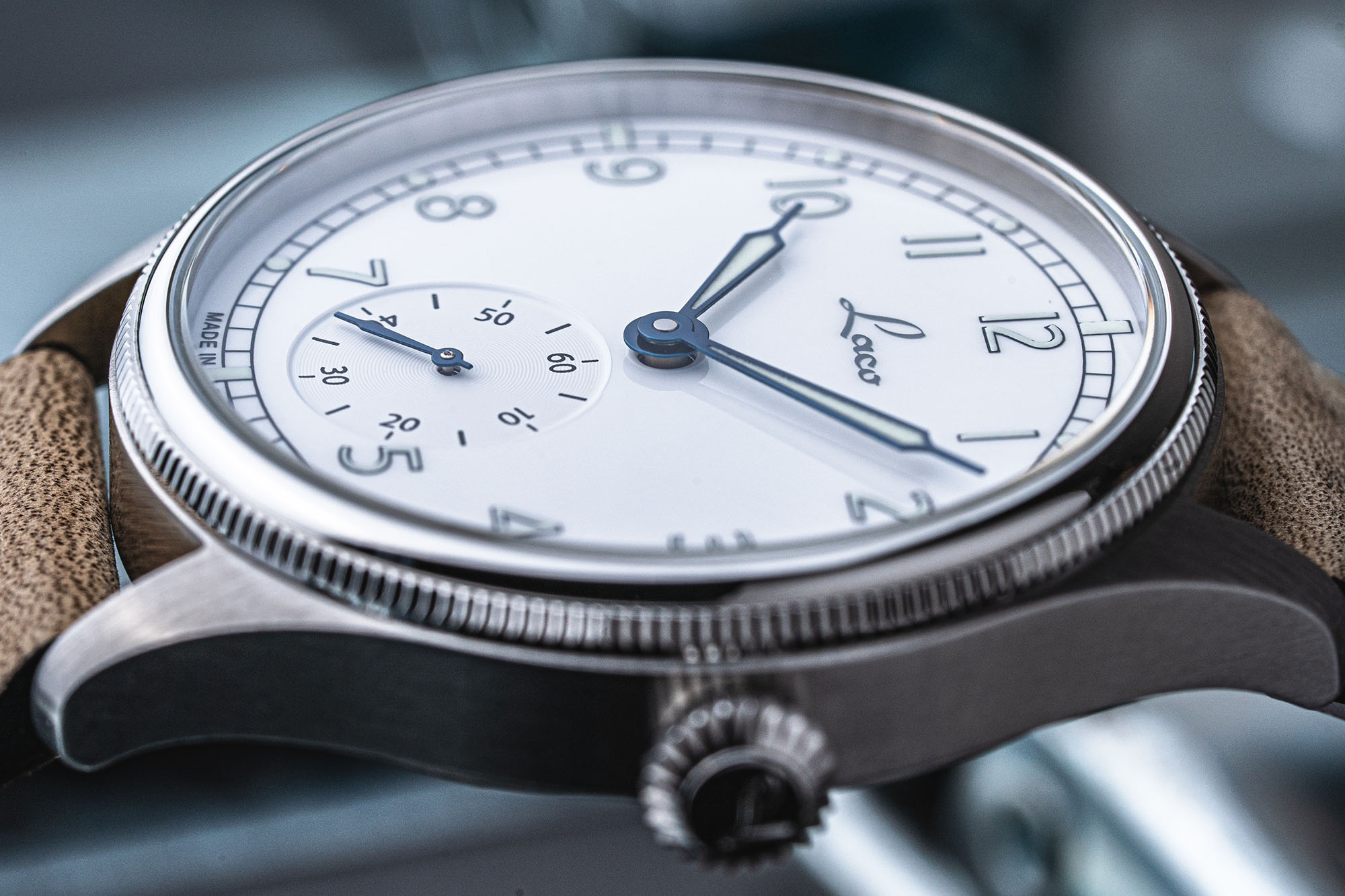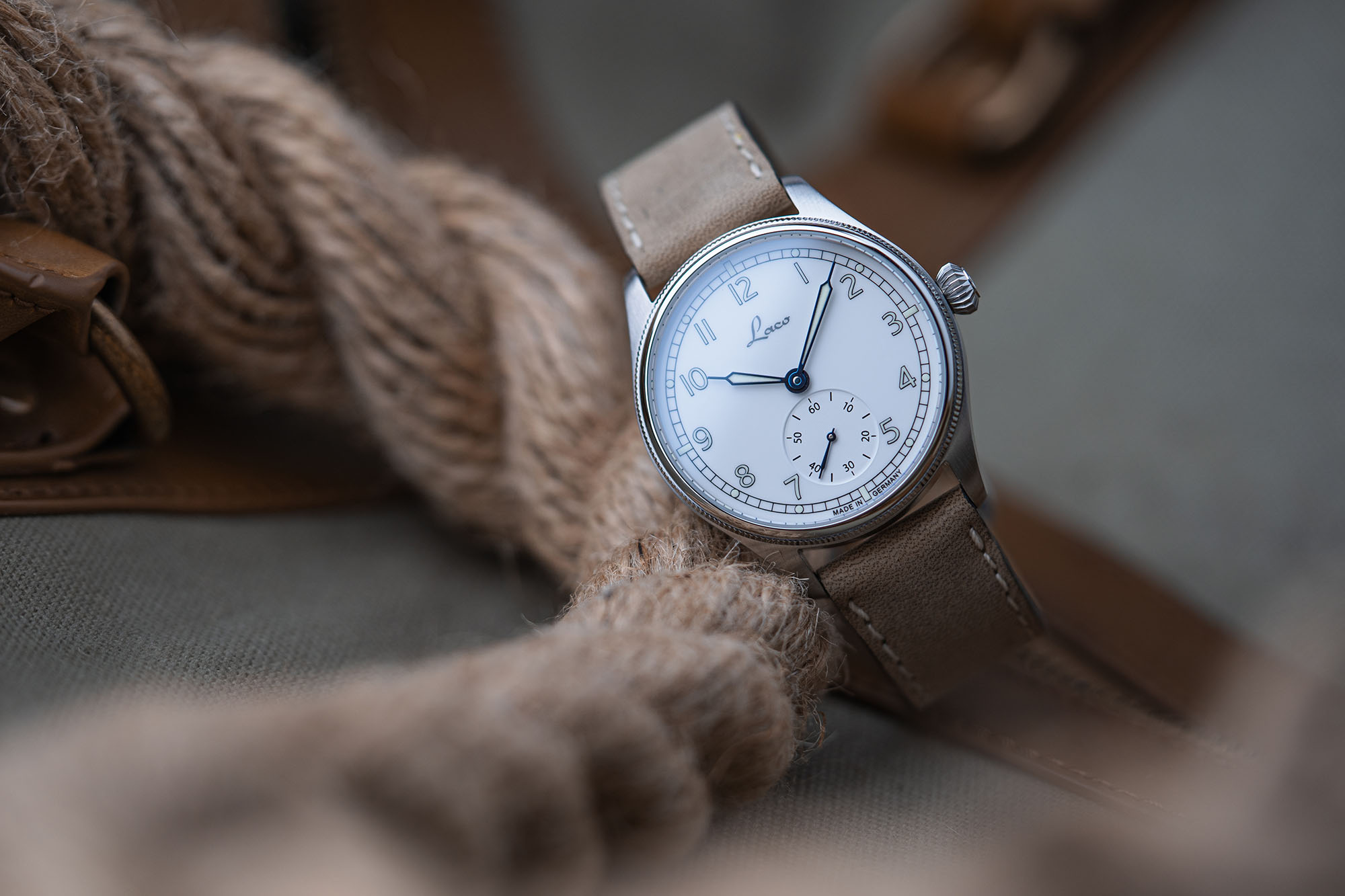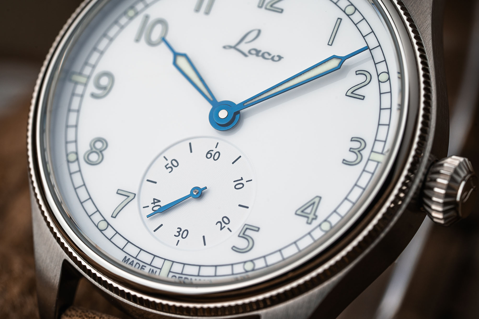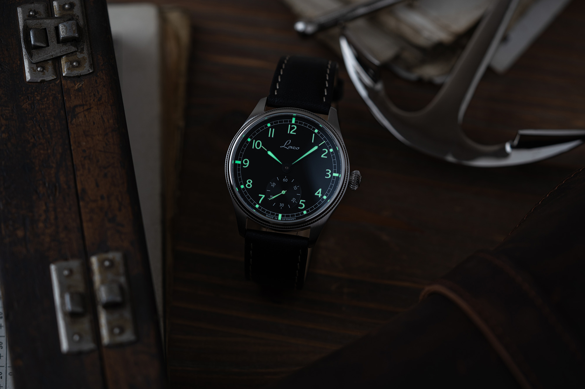 In the 1940's, only a handful of companies were selected to manufacture pilots watches for the German Airforce. Laco was one of these companies, and today they bring that heritage to their watches. You'll notice that their "original" series all feature "FL23883" engraved into the case, on the side opposite from the crown. This number indicates the watch was made to military specification for pilots.