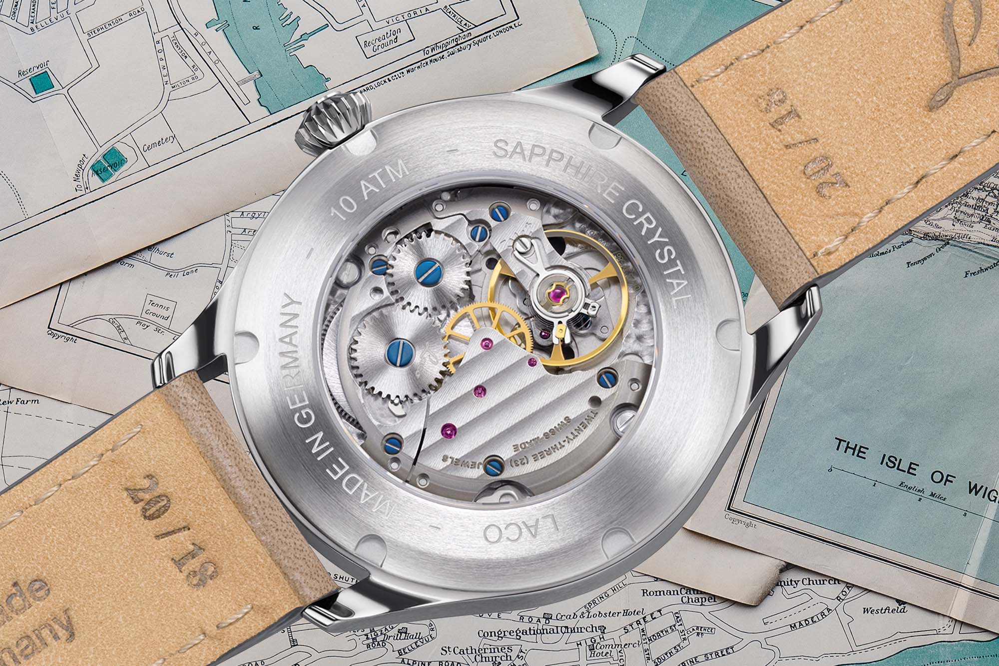 Inside these watches we have a premium hand-wound movement, ensuring ultra-precise timekeeping; the swiss made Laco 261 (Sellita SW261 based). It has a 45 hour power reserve and beats at 28,800 vph. This movement and dial are protected by robust sapphire crystal and offer a large see-through back, giving you a glimpse of the meticulously embellished movement.