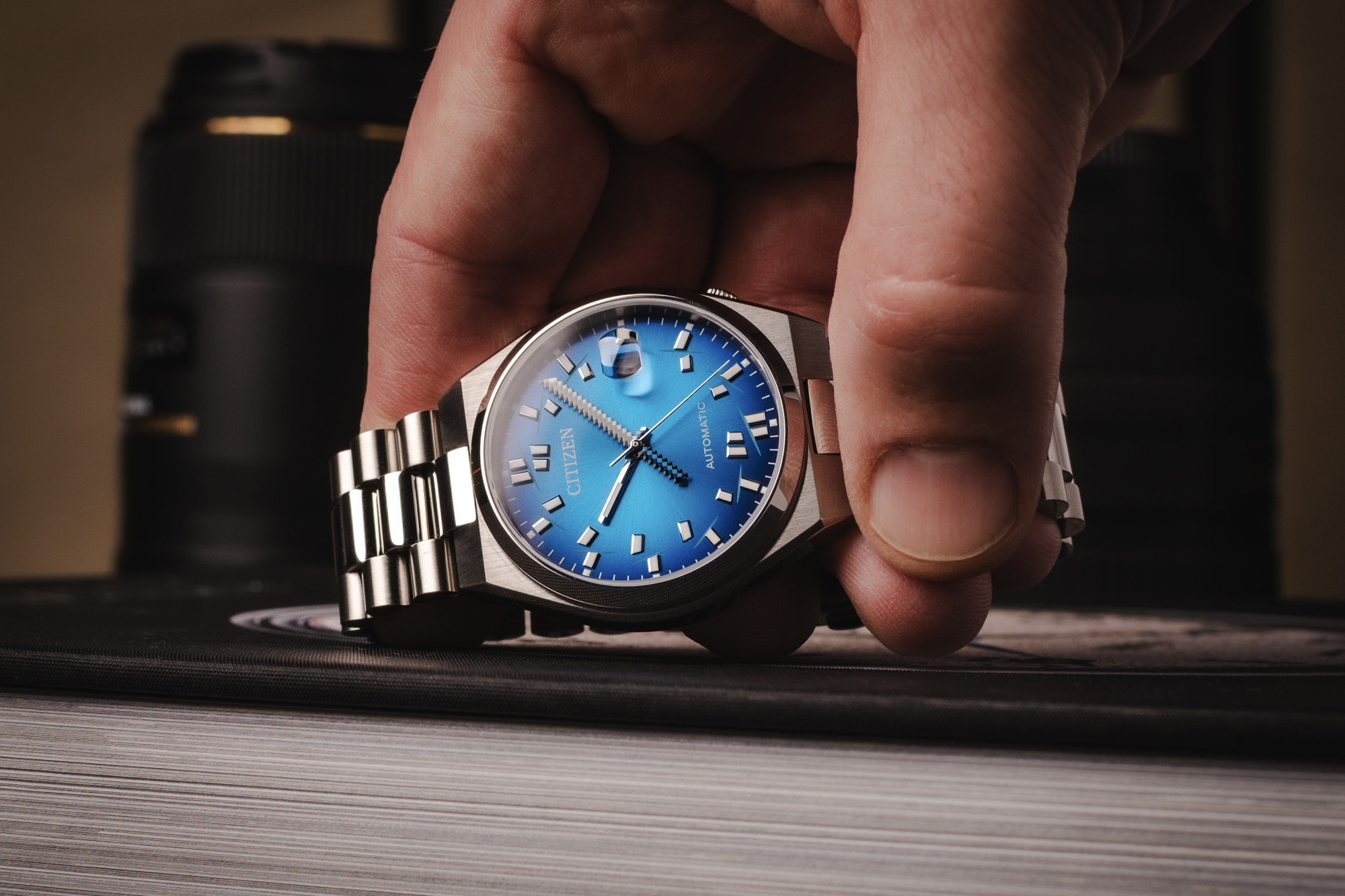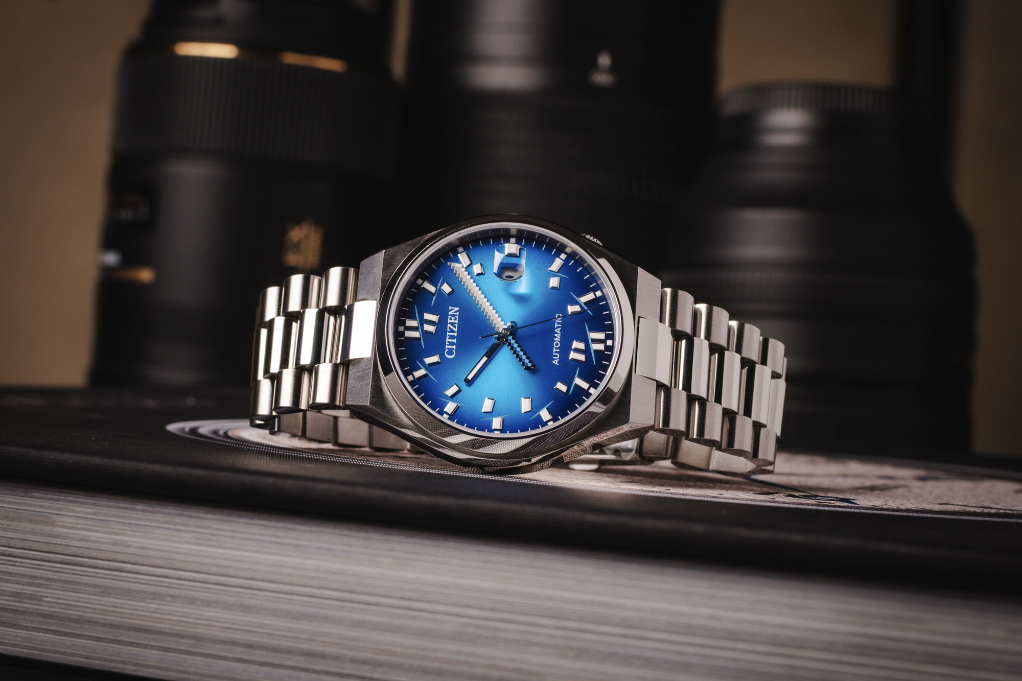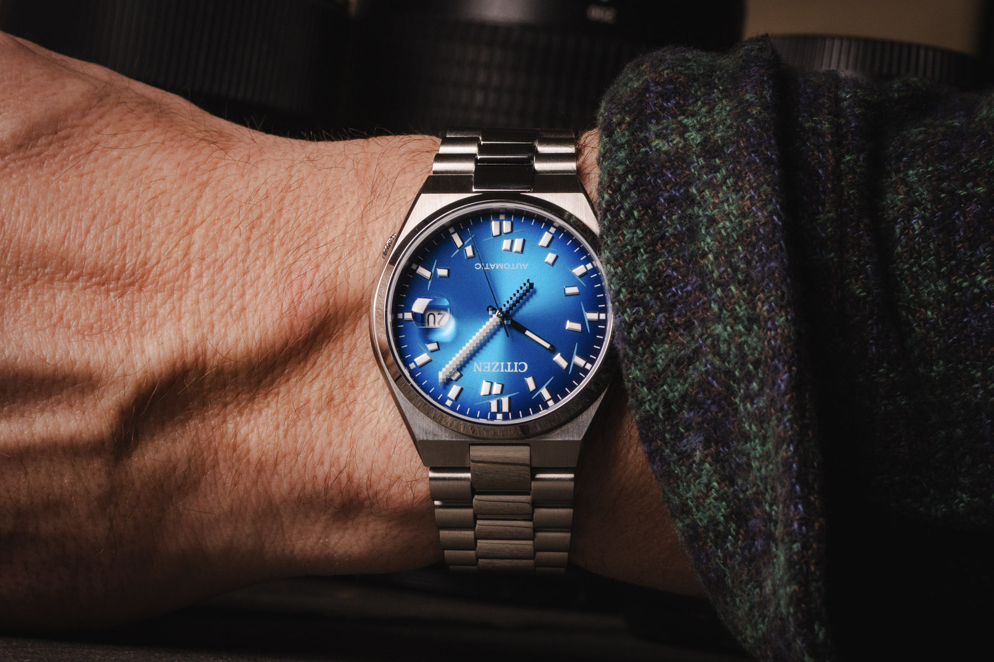 The Citizen Tsuyosa x Seconde/seconde/ Collaboration is a masterclass in horological subversion, blending the sleek, 1970s-inspired silhouette of the Tsuyosa with the sharp wit of Parisian artist Romaric André. The centerpiece of this collaboration is the minutes hand, which has been transformed into a pixelated, blocky katana. This playful "disruption" turns the passage of time into a literal act of slicing through the day, effectively bridging the gap between classic integrated-bracelet aesthetics and modern satirical art.