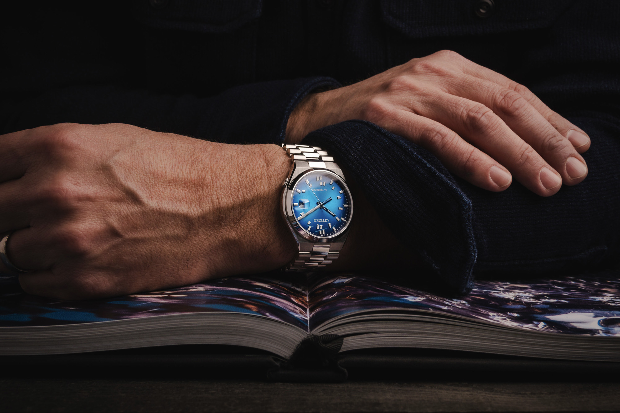 Visible through the exhibition case back is the reliable Citizen Caliber 8210 automatic movement, which provides a 40-hour power reserve. The case back itself serves as a secondary canvas, featuring a custom blue printed block with the cynical yet poetic inscription: "Being smaller has never stopped Minutes from slicing Hours into pieces." Rated for 5 bar (50m) water resistance, this limited-edition collaboration is a definitive choice for collectors who value mechanical integrity paired with a sharp, artistic edge.