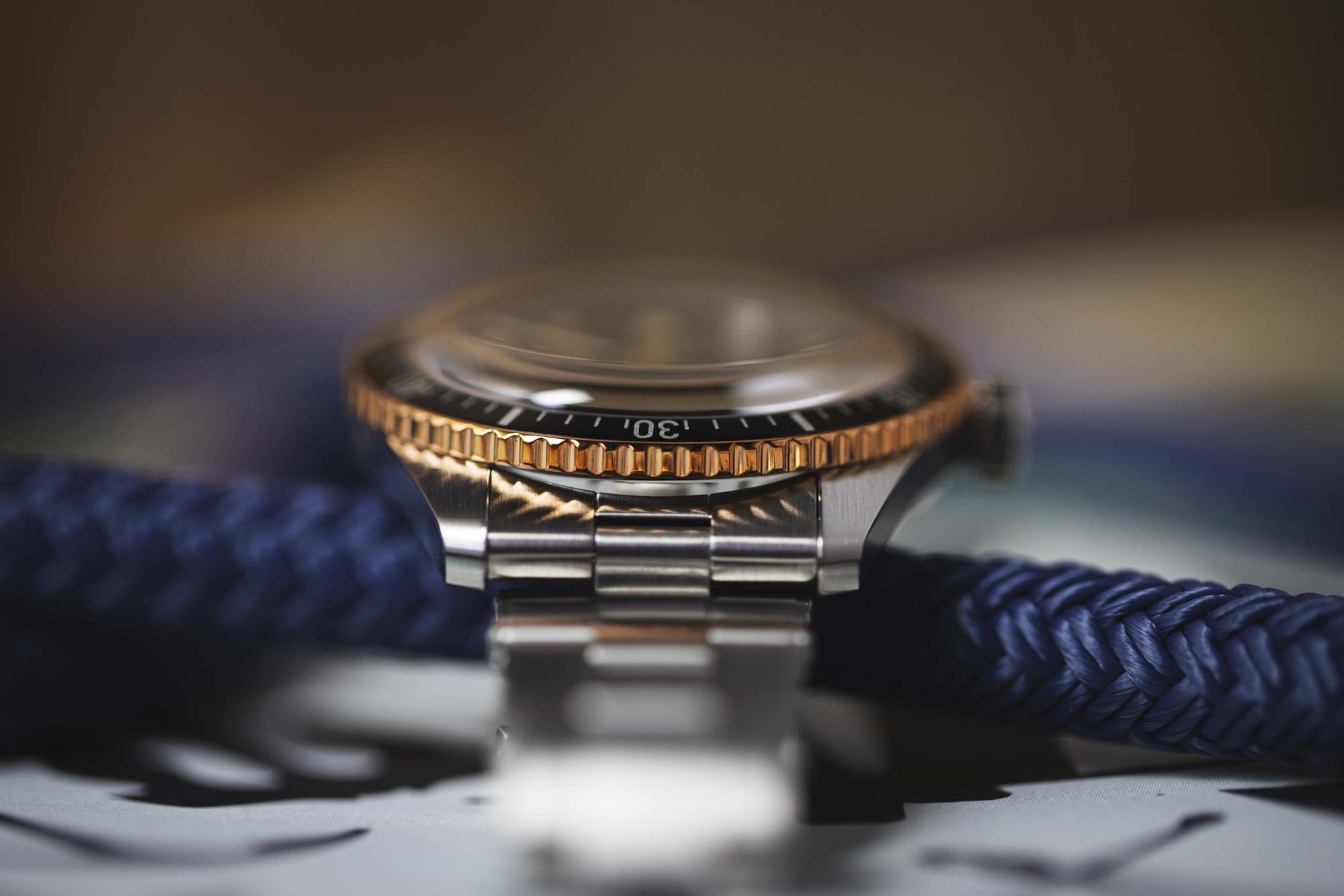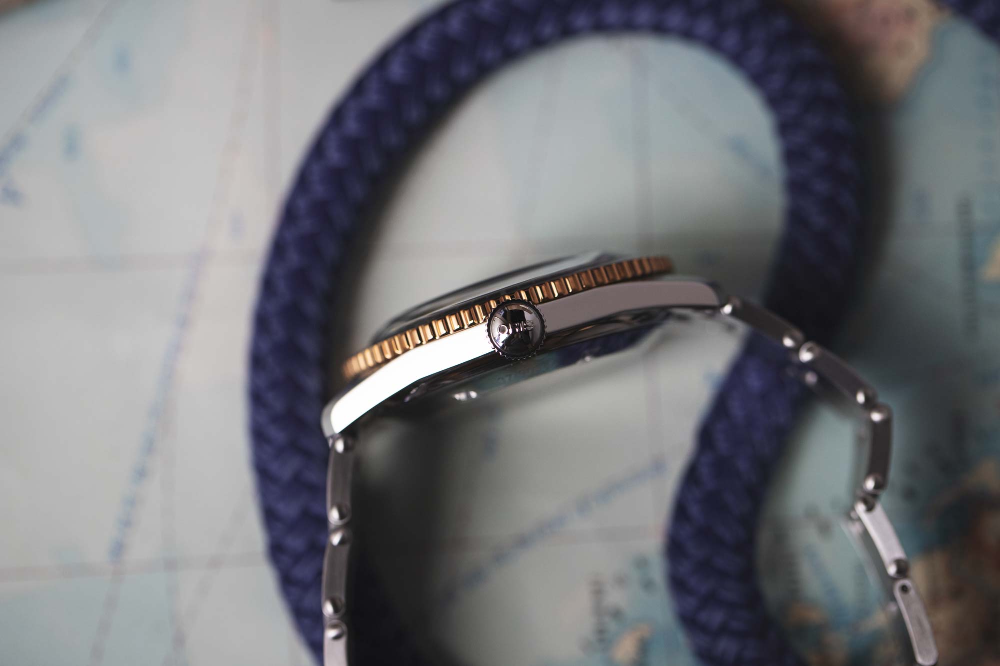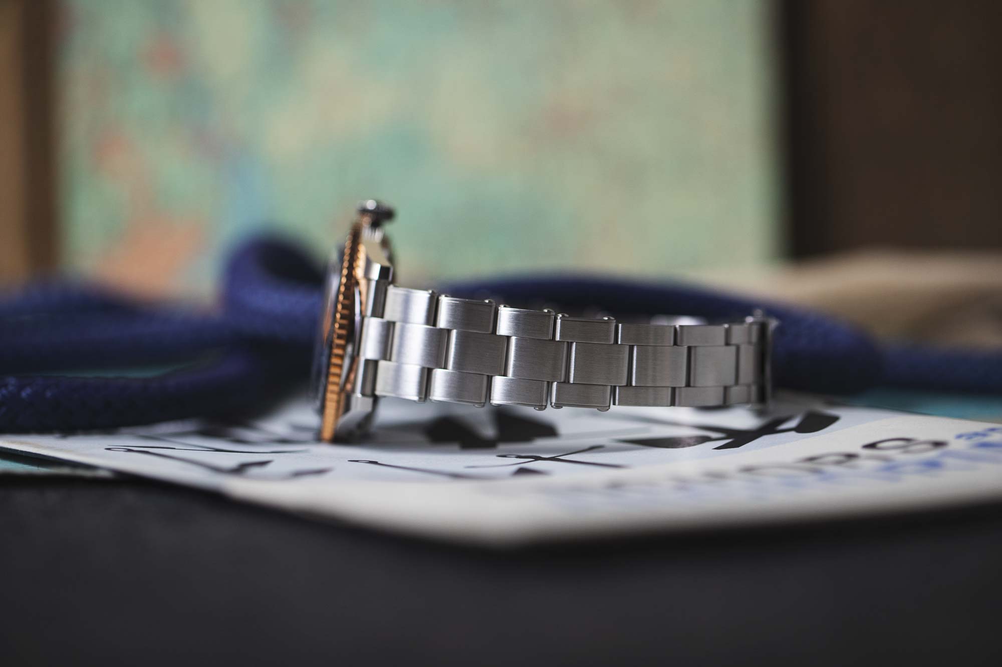 This version of the Divers Sixty-Five features a classic dive dial layout with applied geometric markers for an iconic look, and a solid bronze bezel with aluminum insert. The use of bronze here is unique, adding a touch of warmth to the case. As it ages, the bronze will patina in unique ways. The 40mm case is right in that sweet spot for a dive watch, wearing comfortably, yet looking stylish. The huge domed sapphire crystal and step-tapered rivet bracelet then exude vintage flair. The Divers Sixty-Five will quickly become your go-to everyday watch.