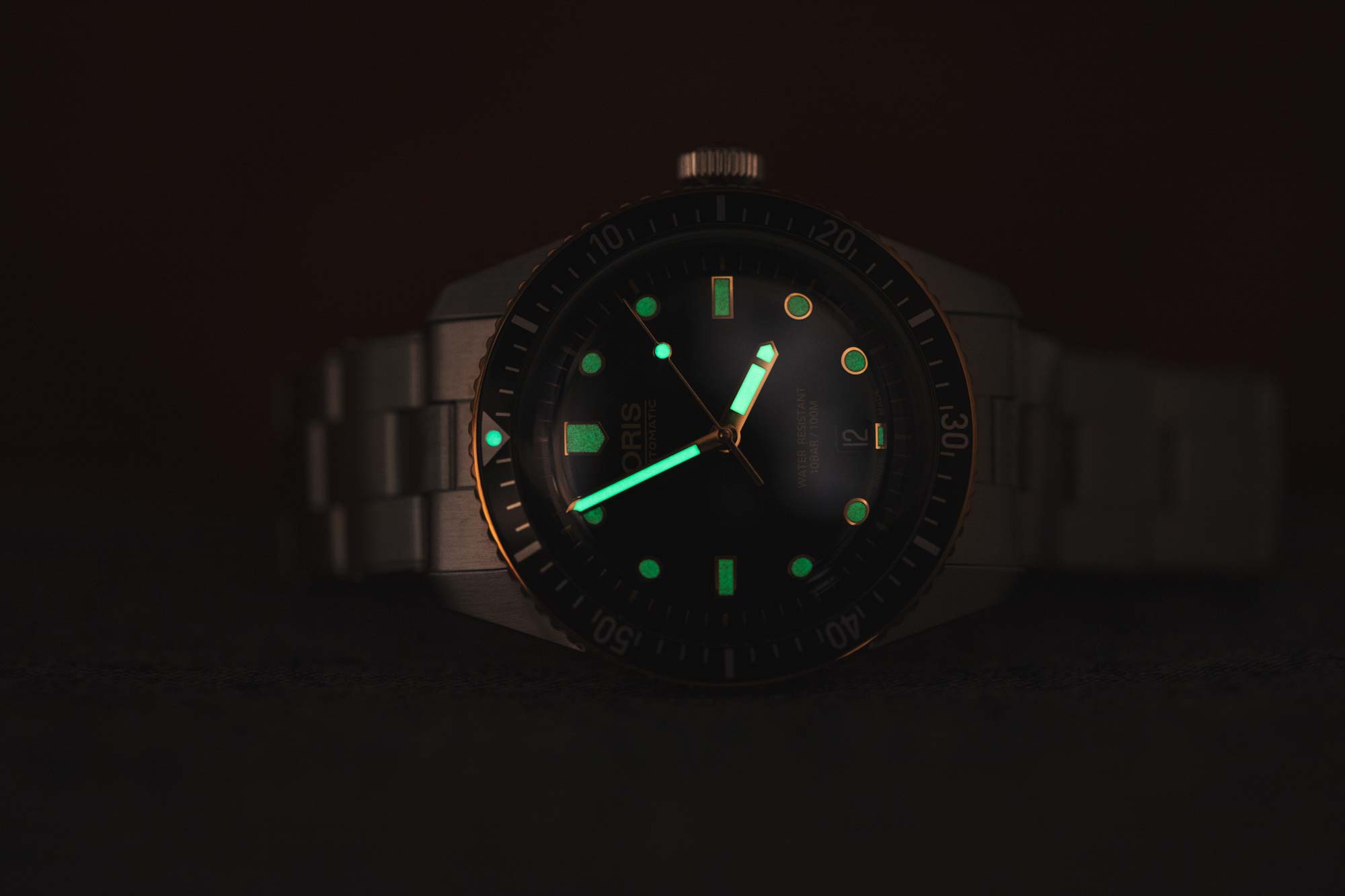 Inside of the Oris Divers Sixty-Five is the Oris 733 / Sellita SW 200 movement. This is a 26-jewel Swiss-made automatic with 38-hour power reserve, hacking seconds and a frequency of 28,800 bph. It’s a very reliable and robust automatic that will keep great time.