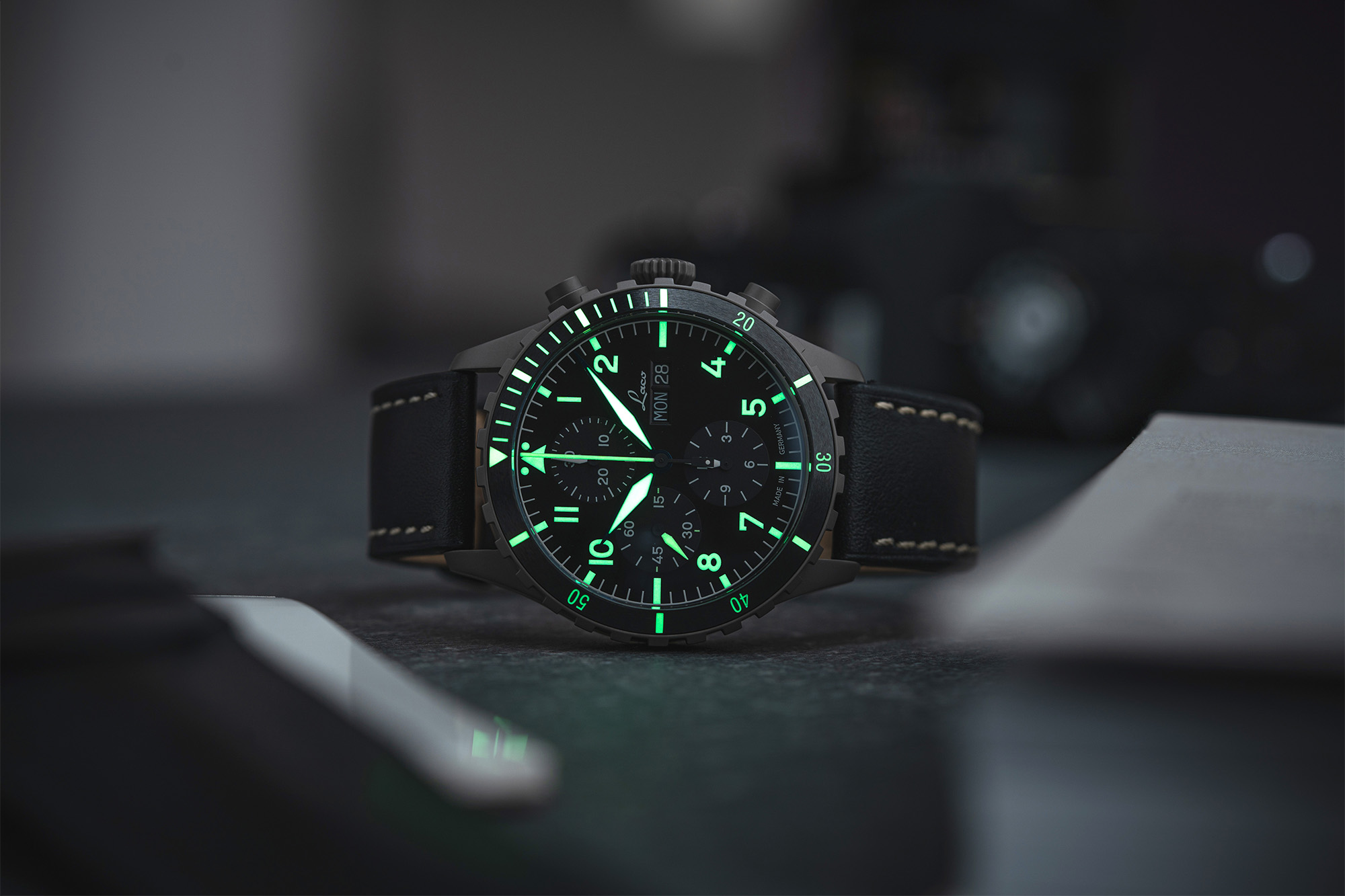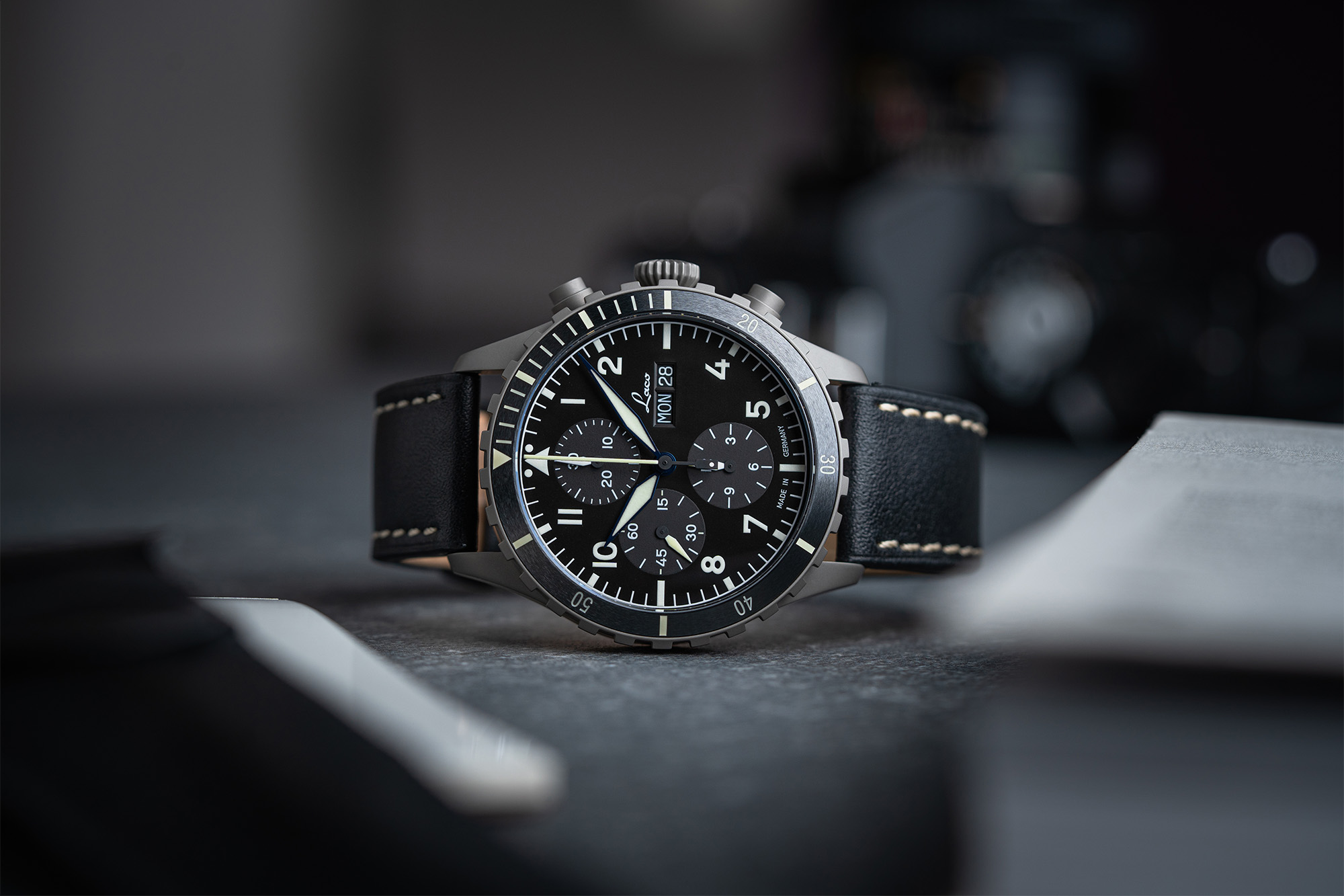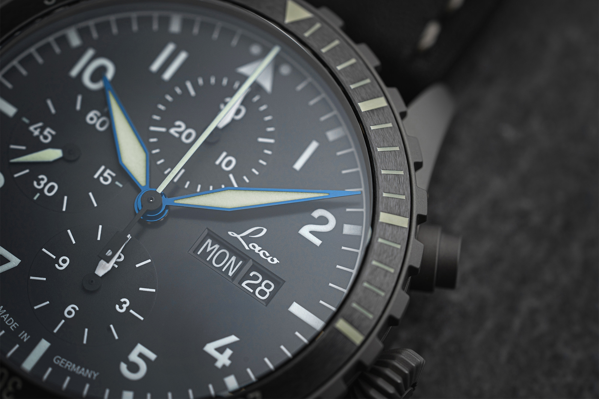 In the 1940's, only a handful of companies were selected to manufacture pilots watches for the German Airforce. Laco was one of these companies, and today they bring that heritage to their watches. You'll notice that their "original" series all feature "FL23883" engraved into the case, on the side opposite from the crown. This number indicates the watch was made to military specification for pilots.