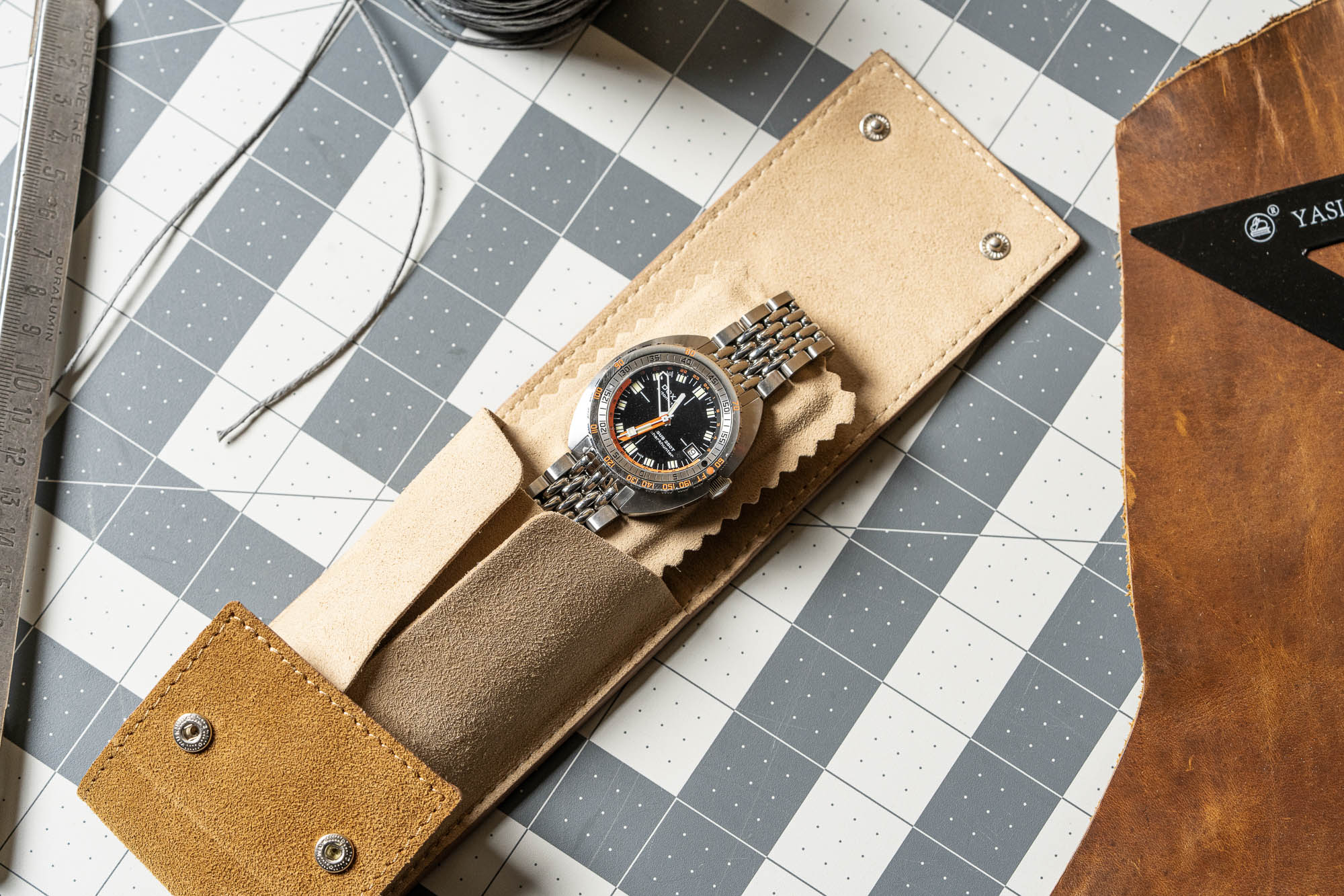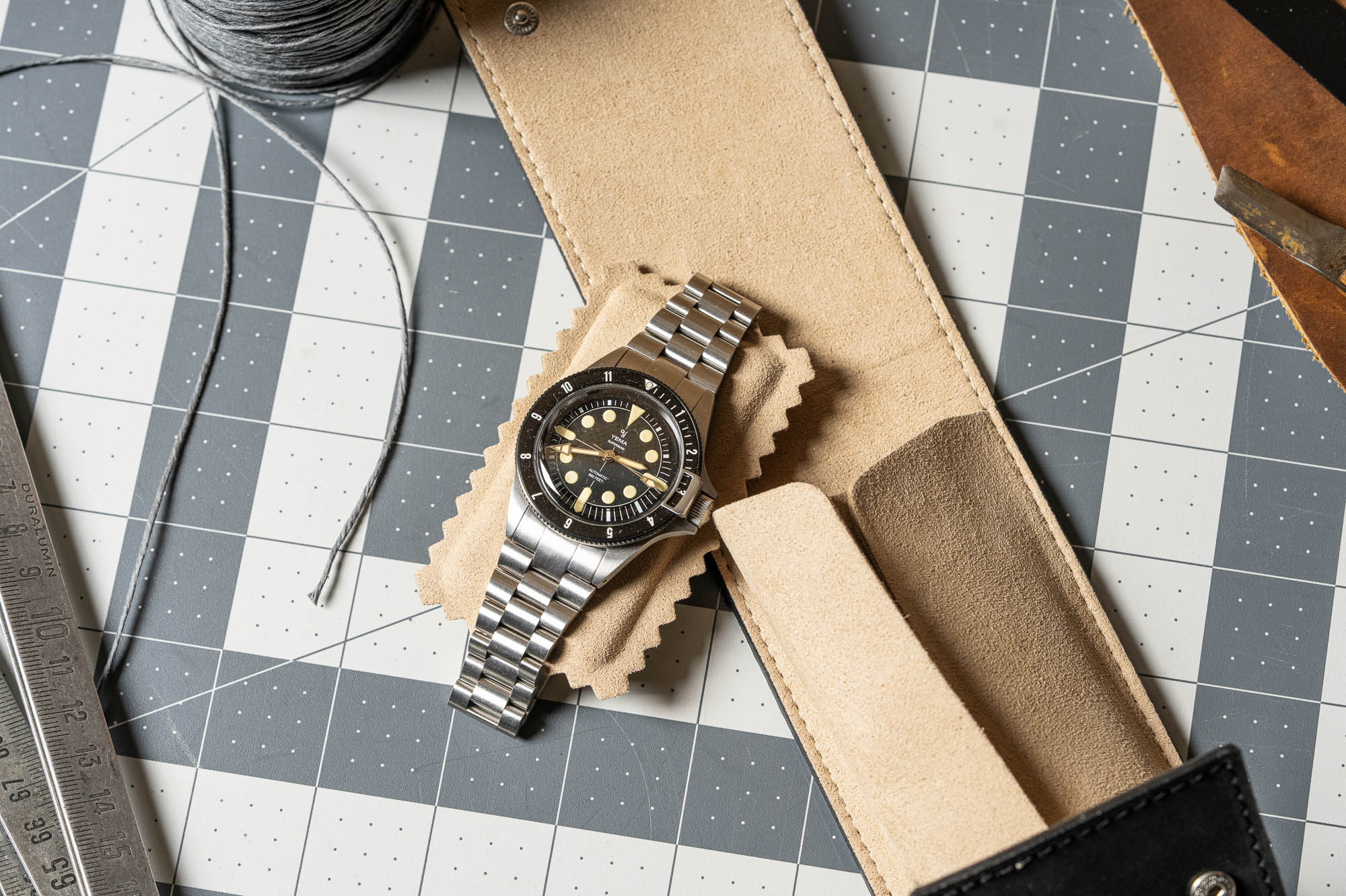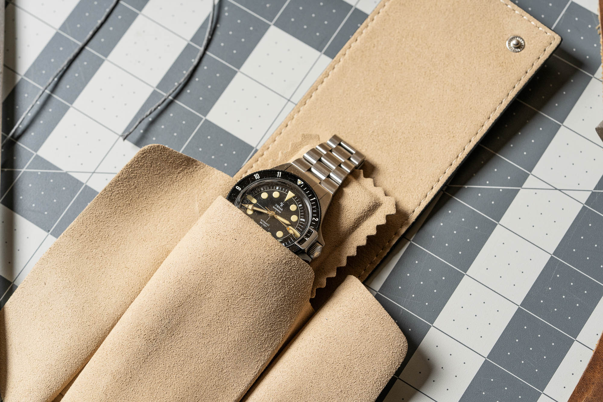 A nice watch needs a nice house. A warm place to live when it’s not on your wrist. There are boxes, rolls, tubes, and other places to keep your timepieces, but sometimes the simplest solution is the best. A pouch. A compact container for your watch that keeps it safe from scratches and dust on your bedside table, in your bag, or wherever else you put your watches.